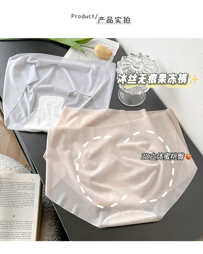 원피스 아이스 실크 원활한 여아 속옷 누드 초박형 복숭아 힙 미드 웨이스트 편안한 통기성 숙녀 브리프