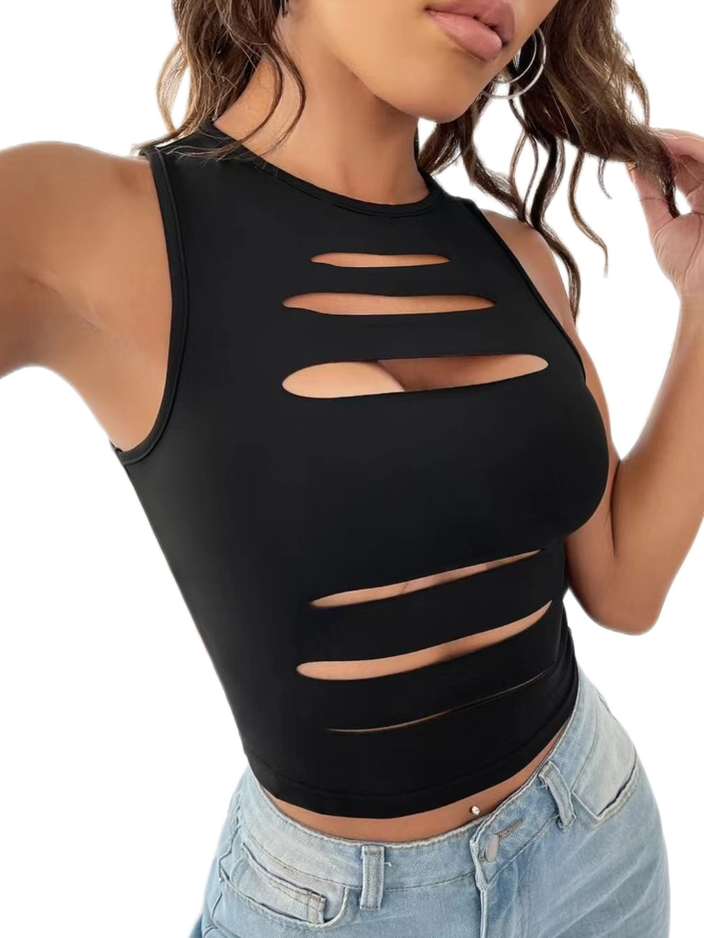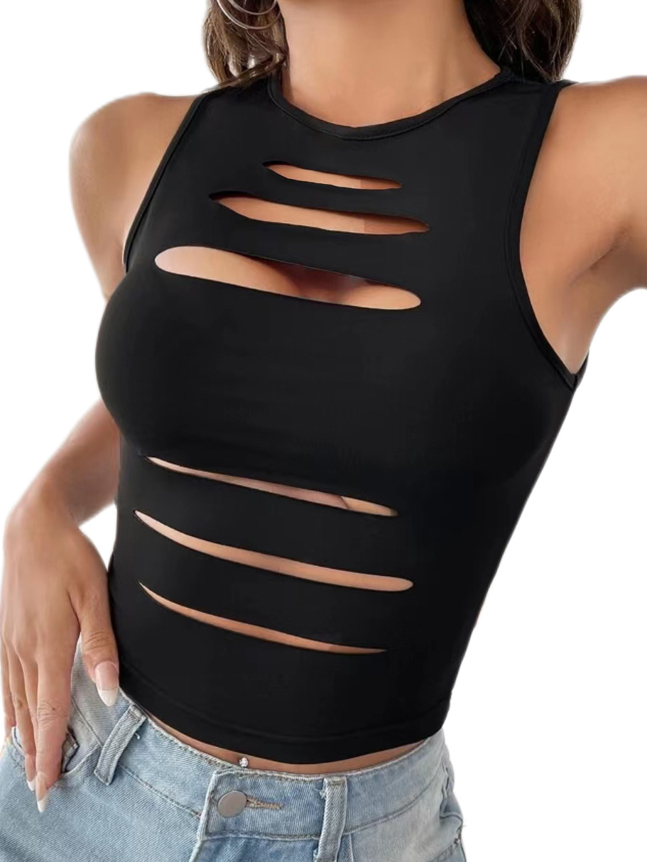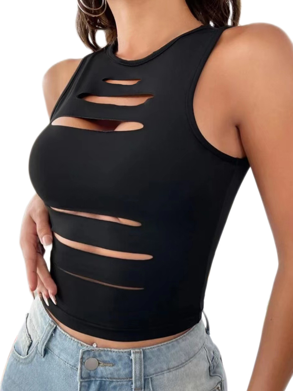 [라벨코드] 속이 빈 찢어진 조끼, 꽉 끼는 내부 배꼽 새는 탑, 여름 민소매 조끼