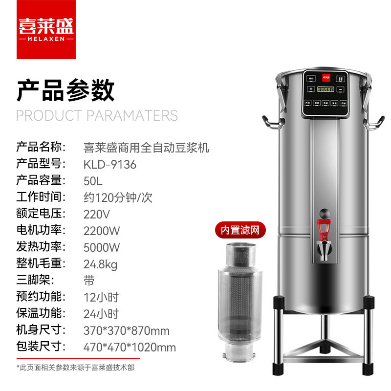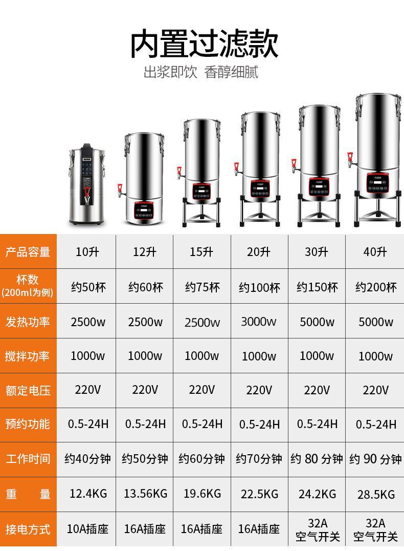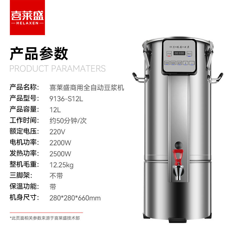 시라이셩 상업용 두유 제조기, 갓 갈아서, 가열 기능, 찌꺼기 없음, 필터 필요 없음, 고속 분쇄기, 곡물 분쇄기, 필터 없이 분쇄