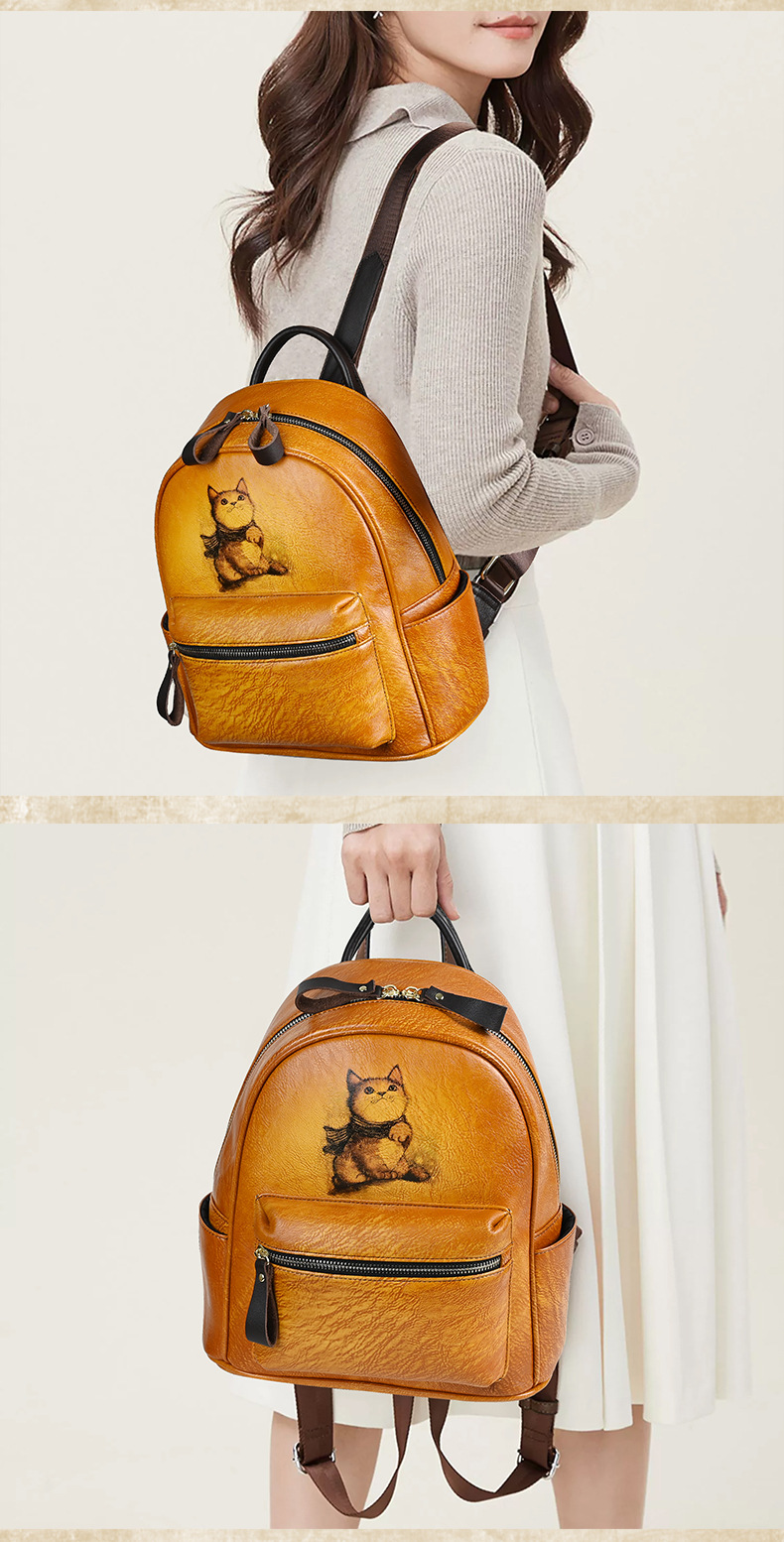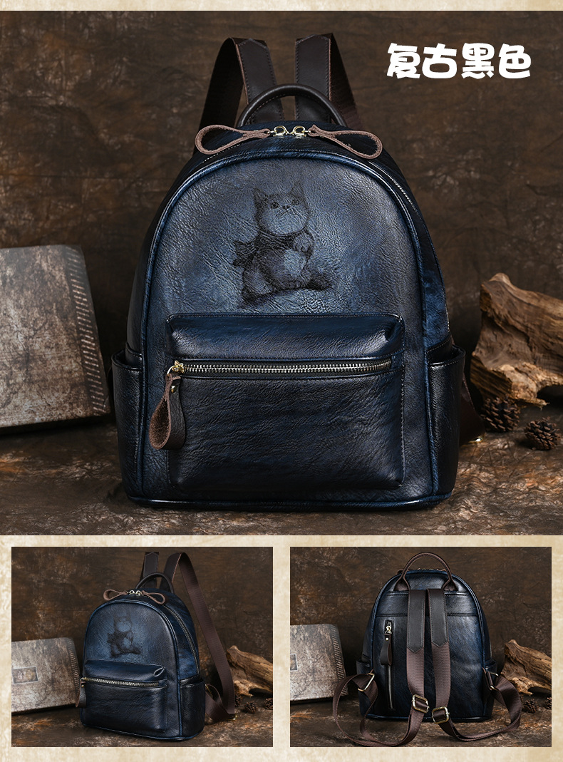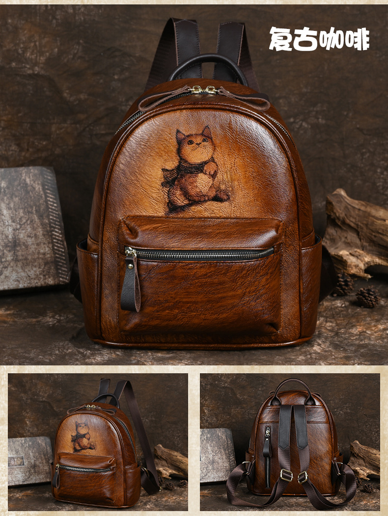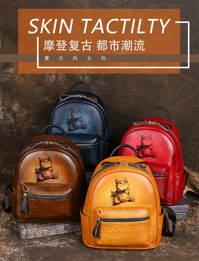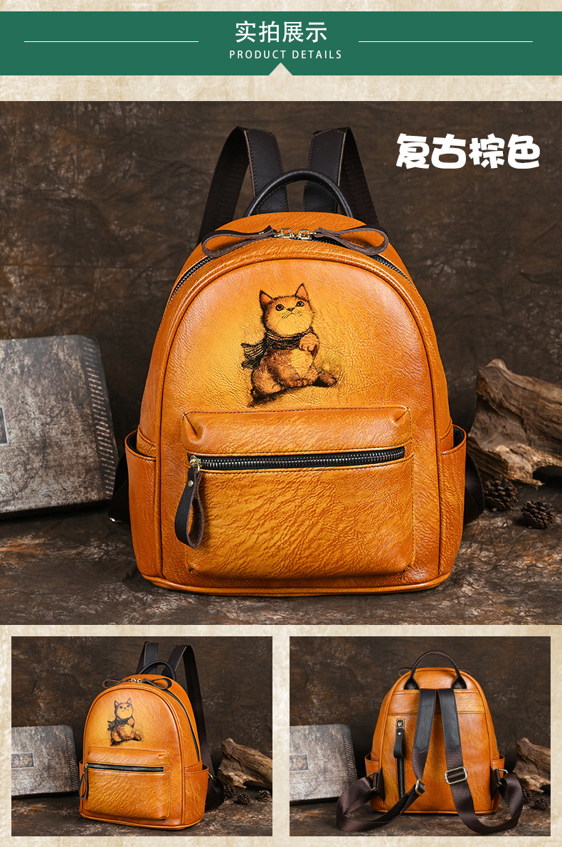 공장 직접 가죽 가방 복고풍 여성 배낭 손으로 그린 여성 캐주얼 배낭 대용량 머리카락