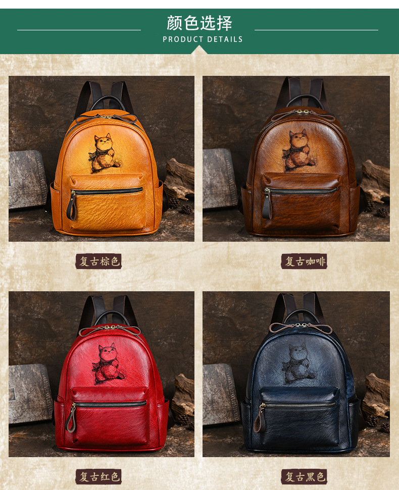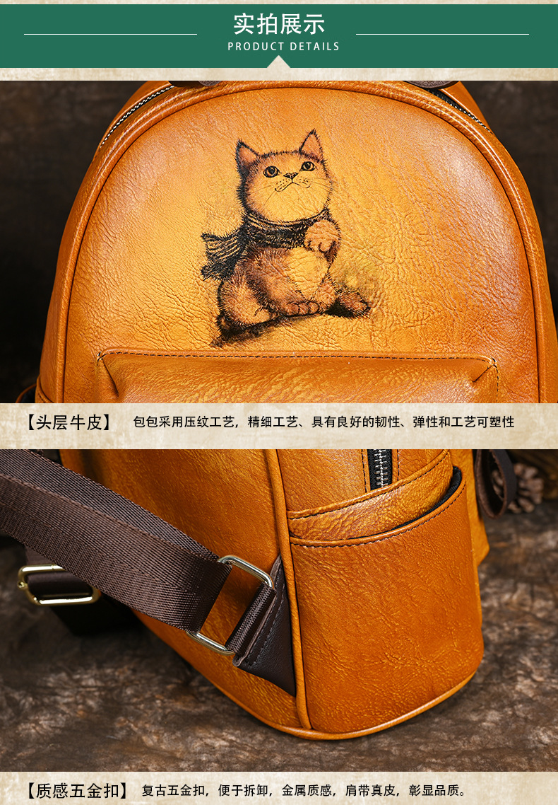 공장 직접 가죽 가방 복고풍 여성 배낭 손으로 그린 여성 캐주얼 배낭 대용량 머리카락스토어 가기