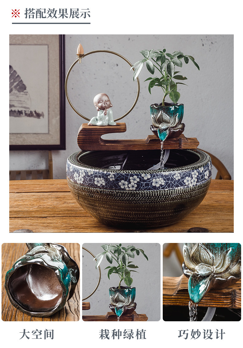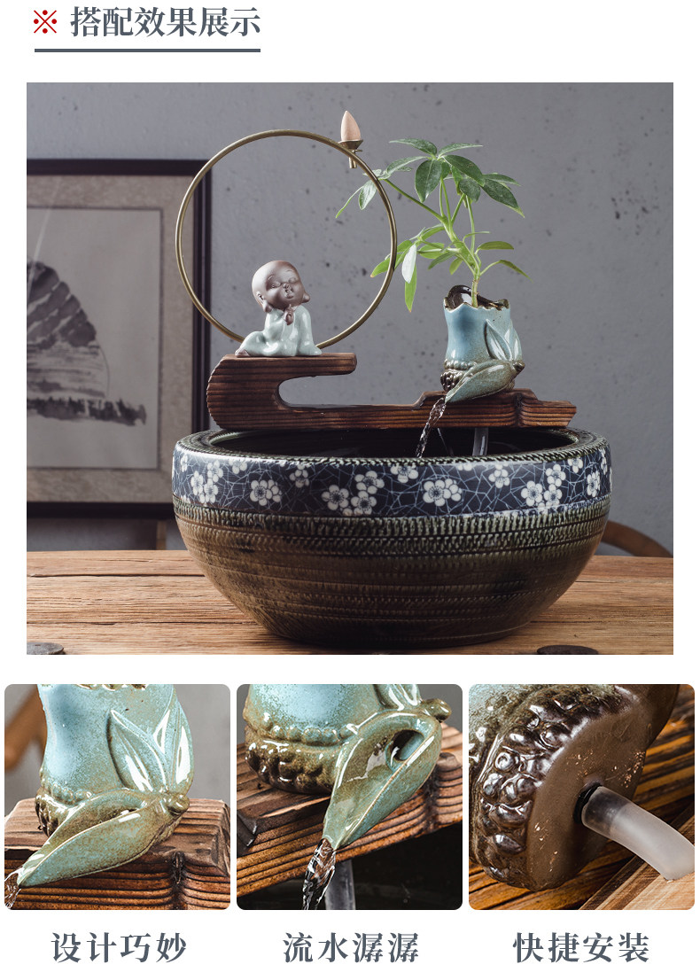 중국식 도자기 어항 순환 스몰 사이즈 자체 제작 분수 콘센트 장식 장식품 흐름 기계 액세서리 rockery 도자기 항아리