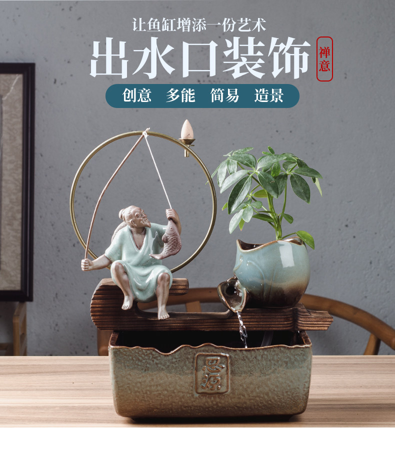 중국식 도자기 어항 순환 스몰 사이즈 자체 제작 분수 콘센트 장식 장식품 흐름 기계 액세서리 rockery 도자기 항아리스토어 가기