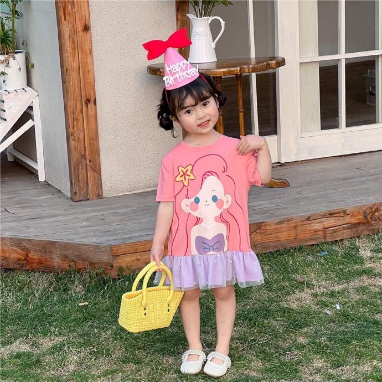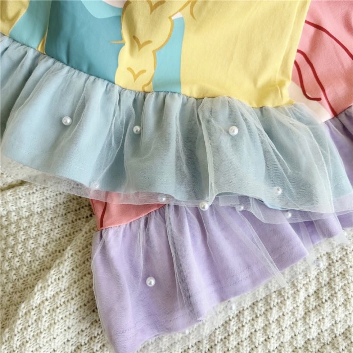 여아용 메쉬 원피스 2025 여름 중간 길이 드레스 한국 스타일 귀여운 만화 공주 시리즈 러플 드레스스토어 가기