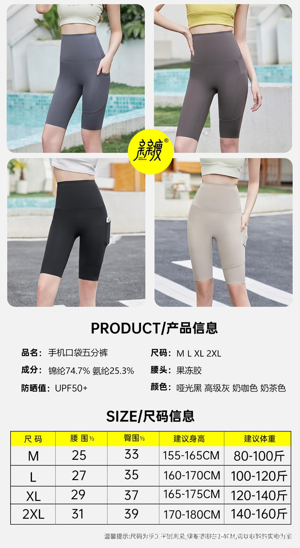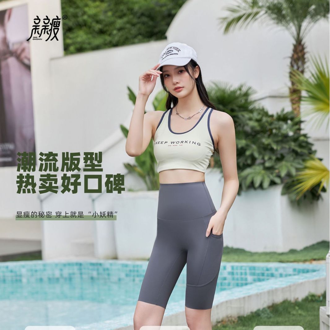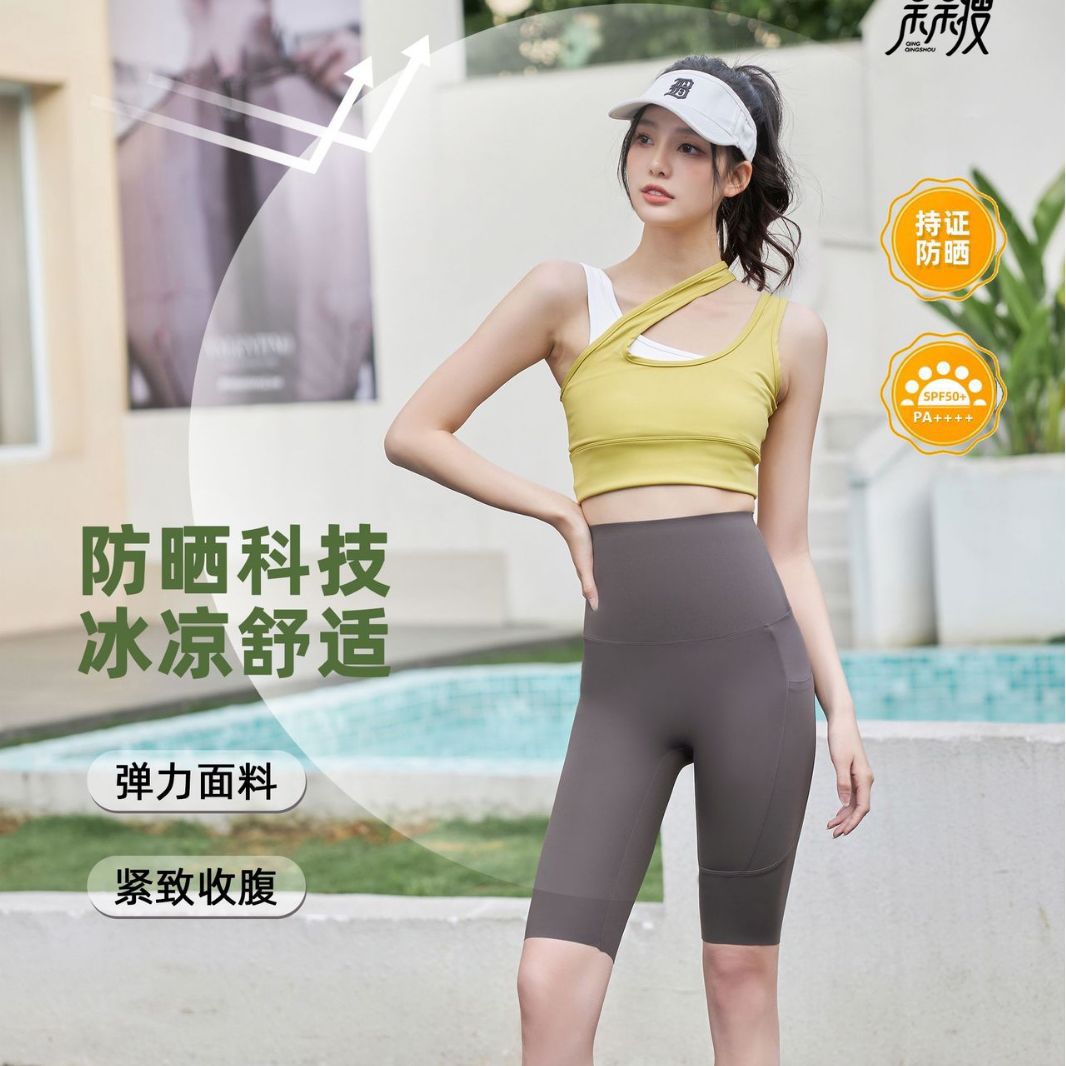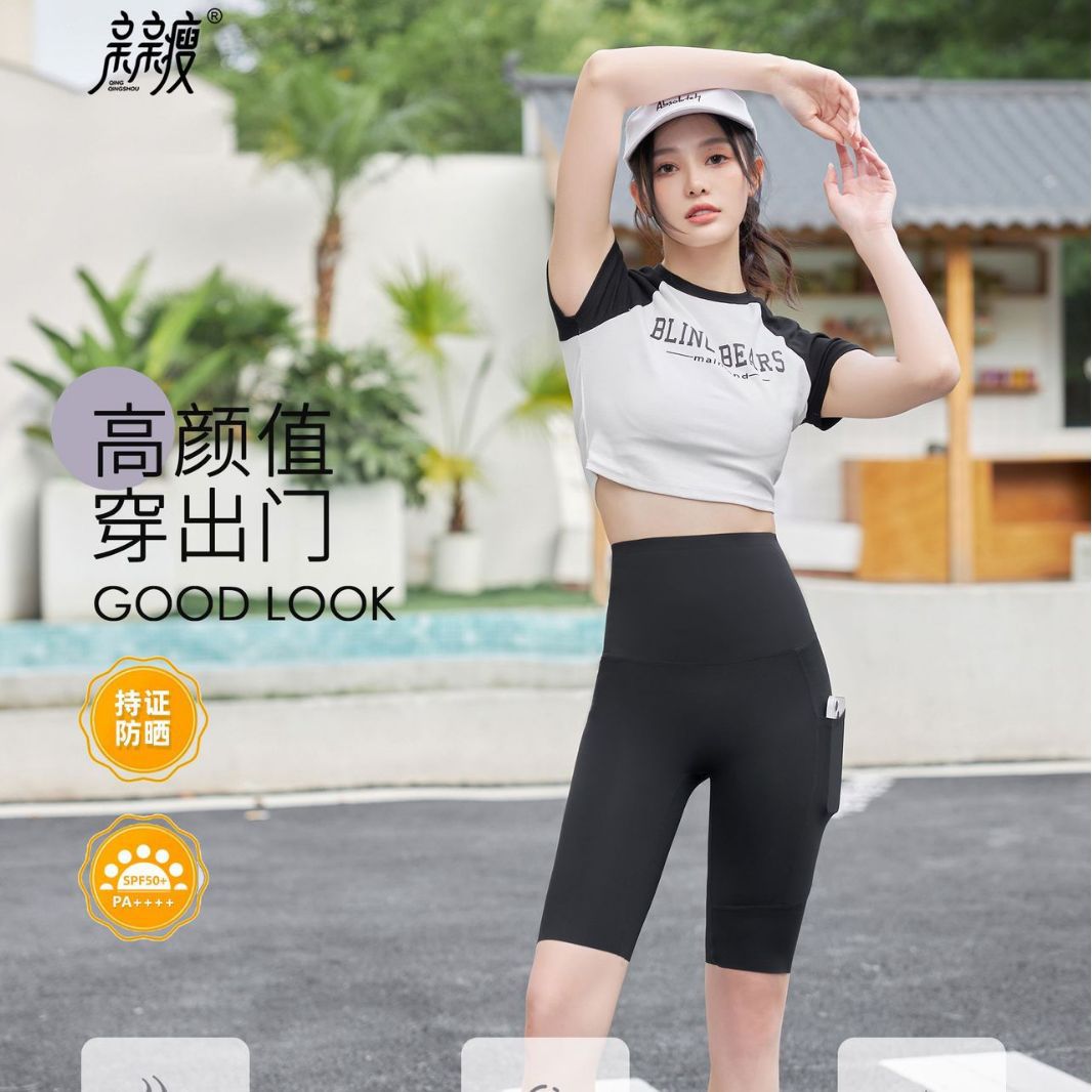 여성용 여름 5부 사이드 포켓 샤크 팬츠, 얇고 통기성 좋은 스포츠 사이클링 바비 팬츠, 라인이 번지지 않아 당당한 느낌을 주는 디자인