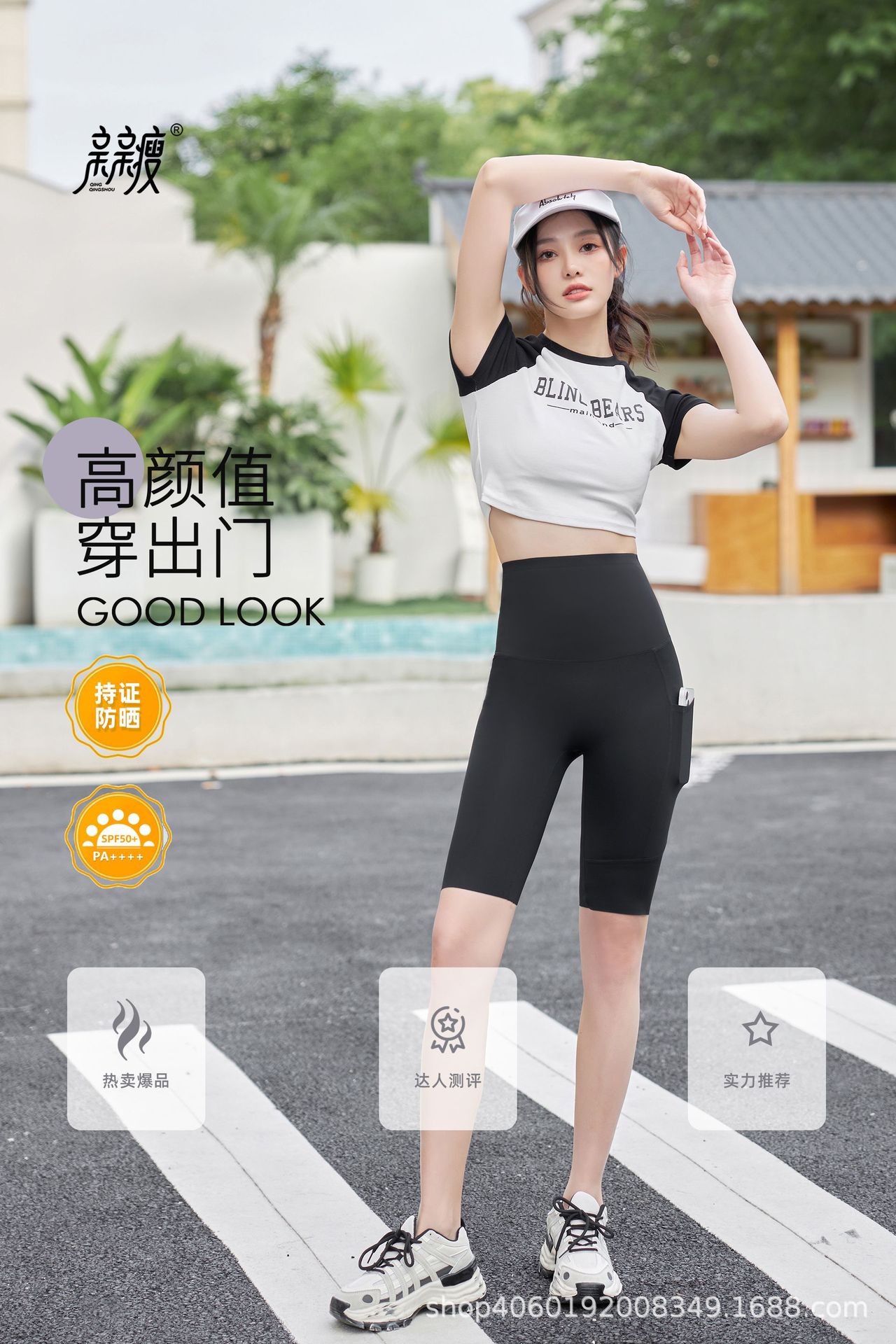 여성용 여름 5부 사이드 포켓 샤크 팬츠, 얇고 통기성 좋은 스포츠 사이클링 바비 팬츠, 라인이 번지지 않아 당당한 느낌을 주는 디자인스토어 가기
