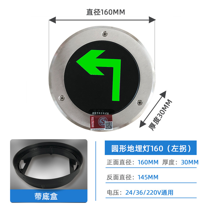 • Φ160mm 유리 표면 매립형 램프 [우회전] + 하단 상자