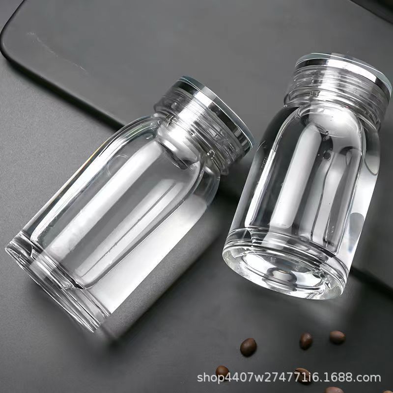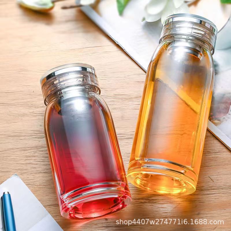 이중 층 유리 차 컵 고온 저항 물 컵 두꺼운 단열 컵 붕규산염 인쇄 로고 여성 휴대용 물 컵스토어 가기