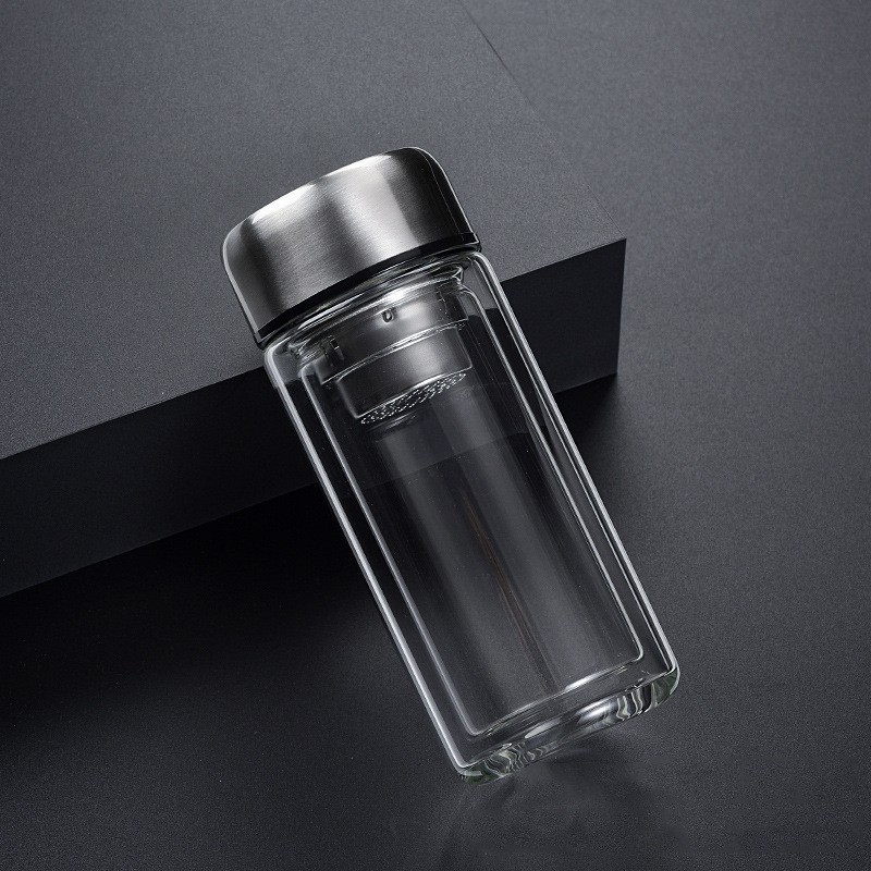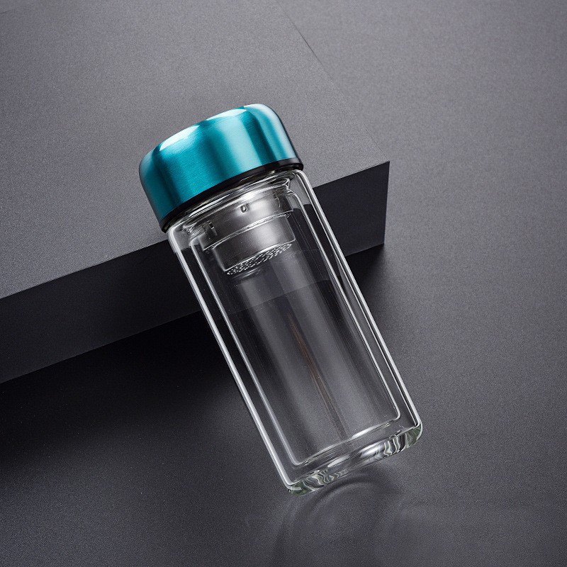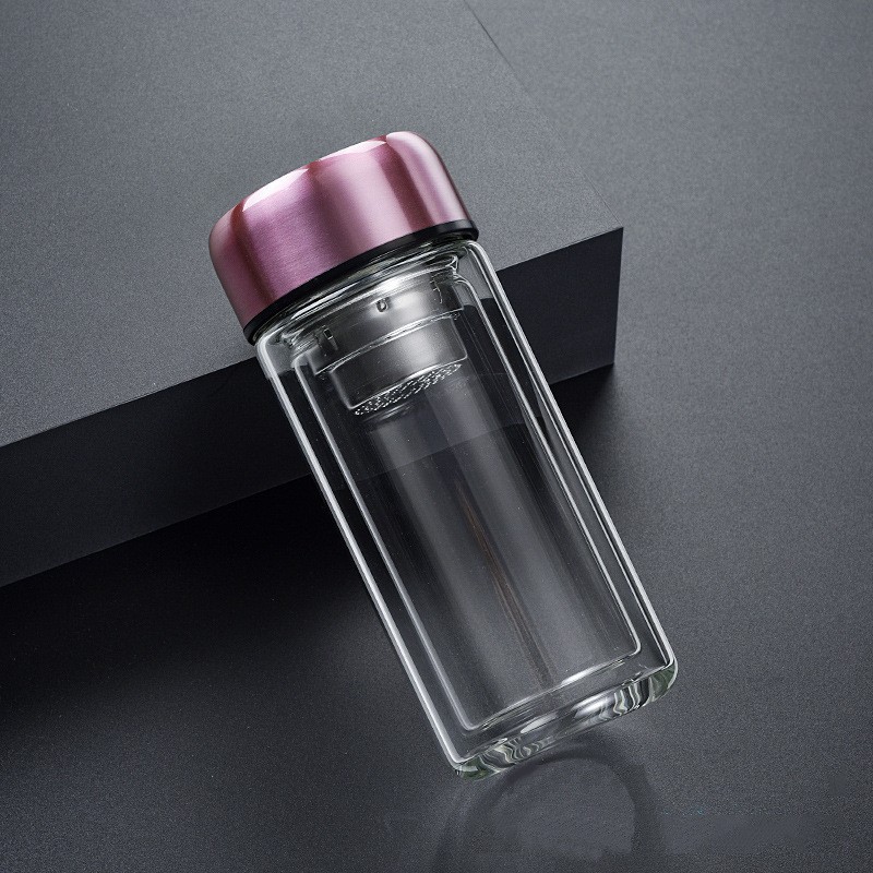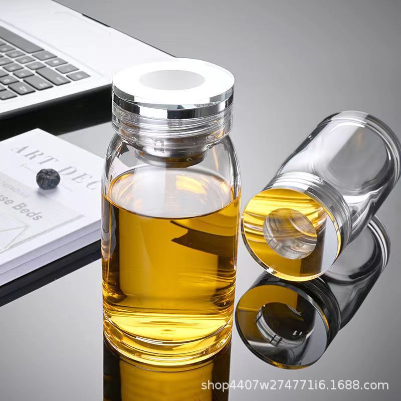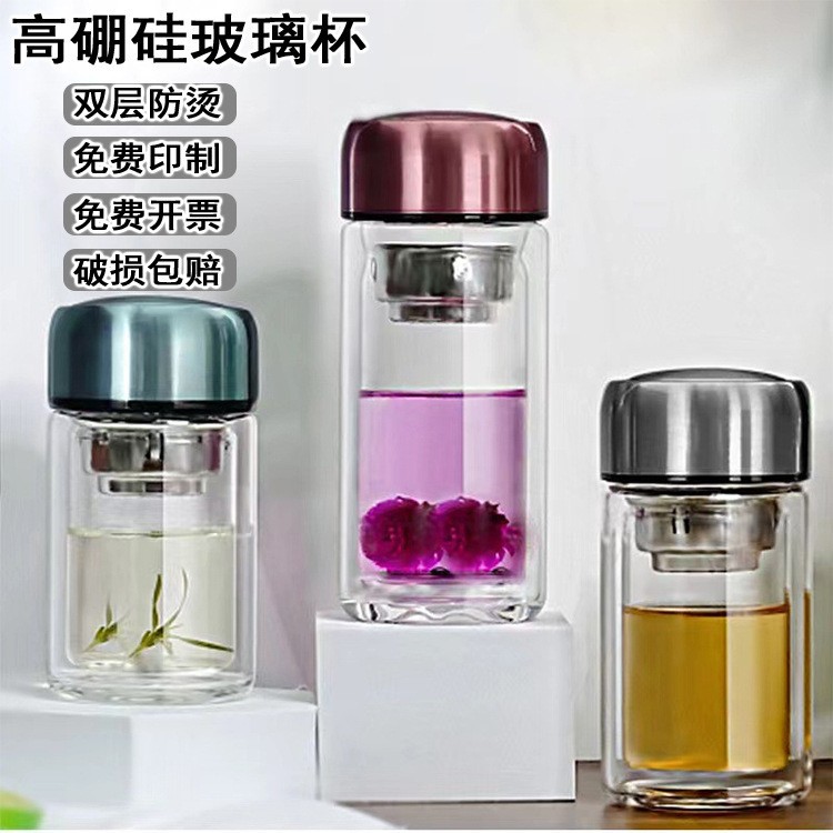 이중 층 유리 차 컵 고온 저항 물 컵 두꺼운 단열 컵 붕규산염 인쇄 로고 여성 휴대용 물 컵