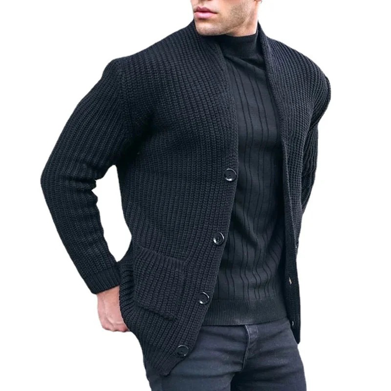 유럽과 미국 패션 캐주얼 남성 카디건 긴 소매 느슨한 단색 포켓 버튼 슬림핏 남성 가을과 겨울 새 스웨터