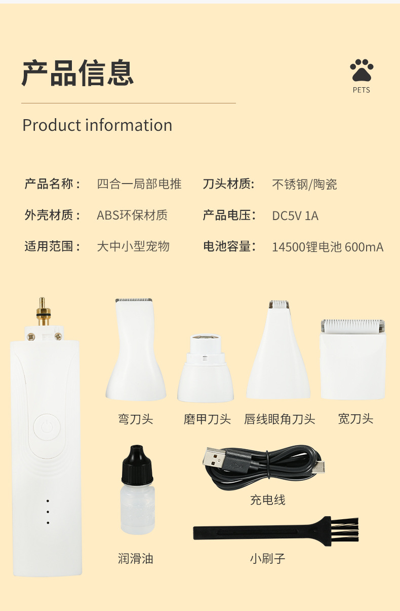 털 애완동물 면도 장치 애완 동물 발 면도 장치 개 멀티 헤드 전기 이발기 다기능 면도 포 인원