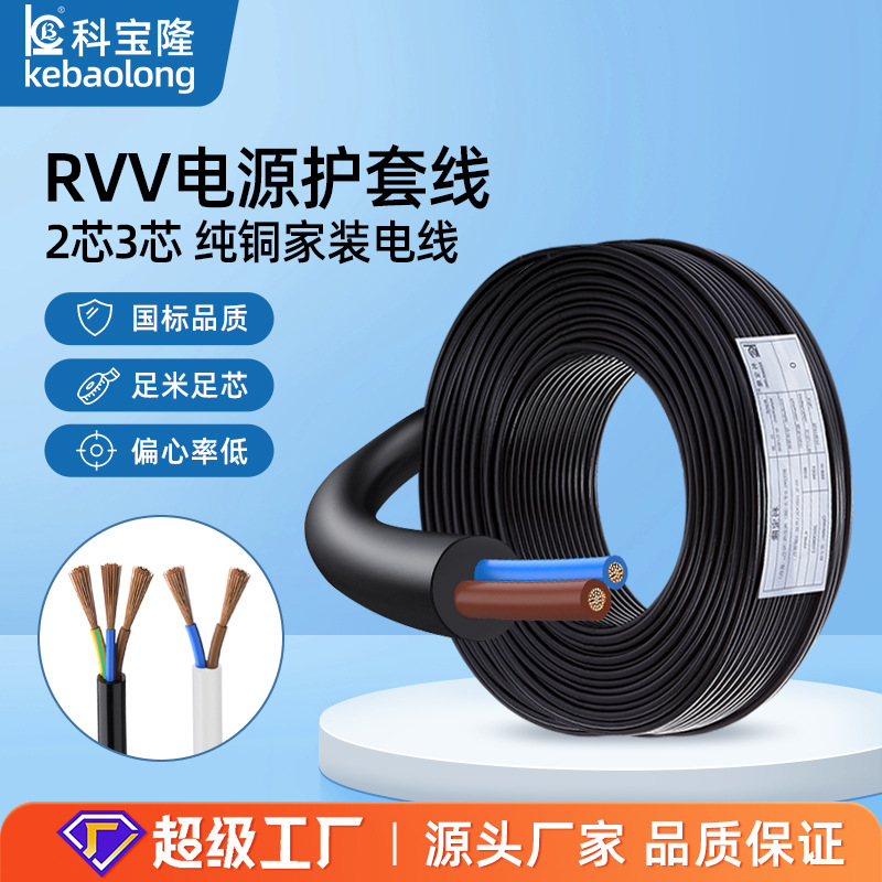 RVV 전원 코드 국가 표준 구리 코어 0.5 0.7 1 1.5 평방 2 코어 3 코어 가정 장식 와이어 및 케이블 피복 와이어스토어 가기