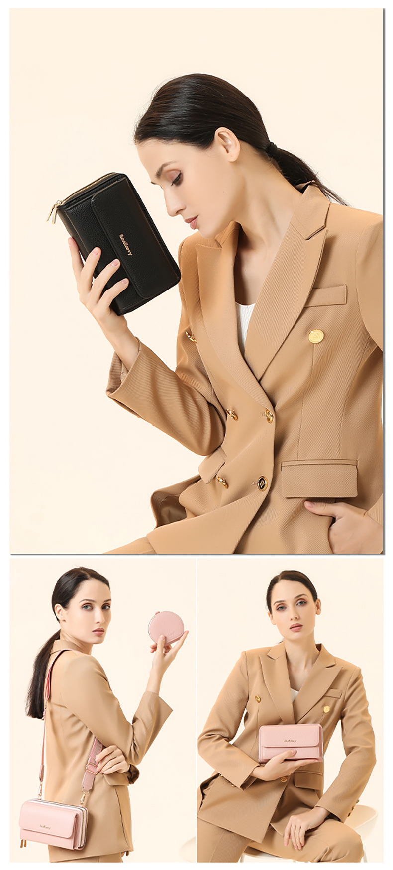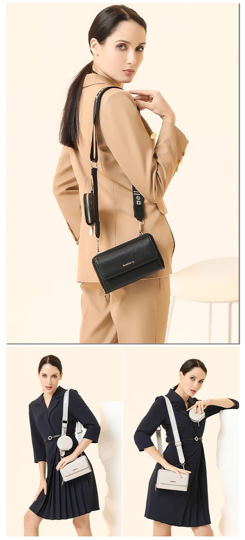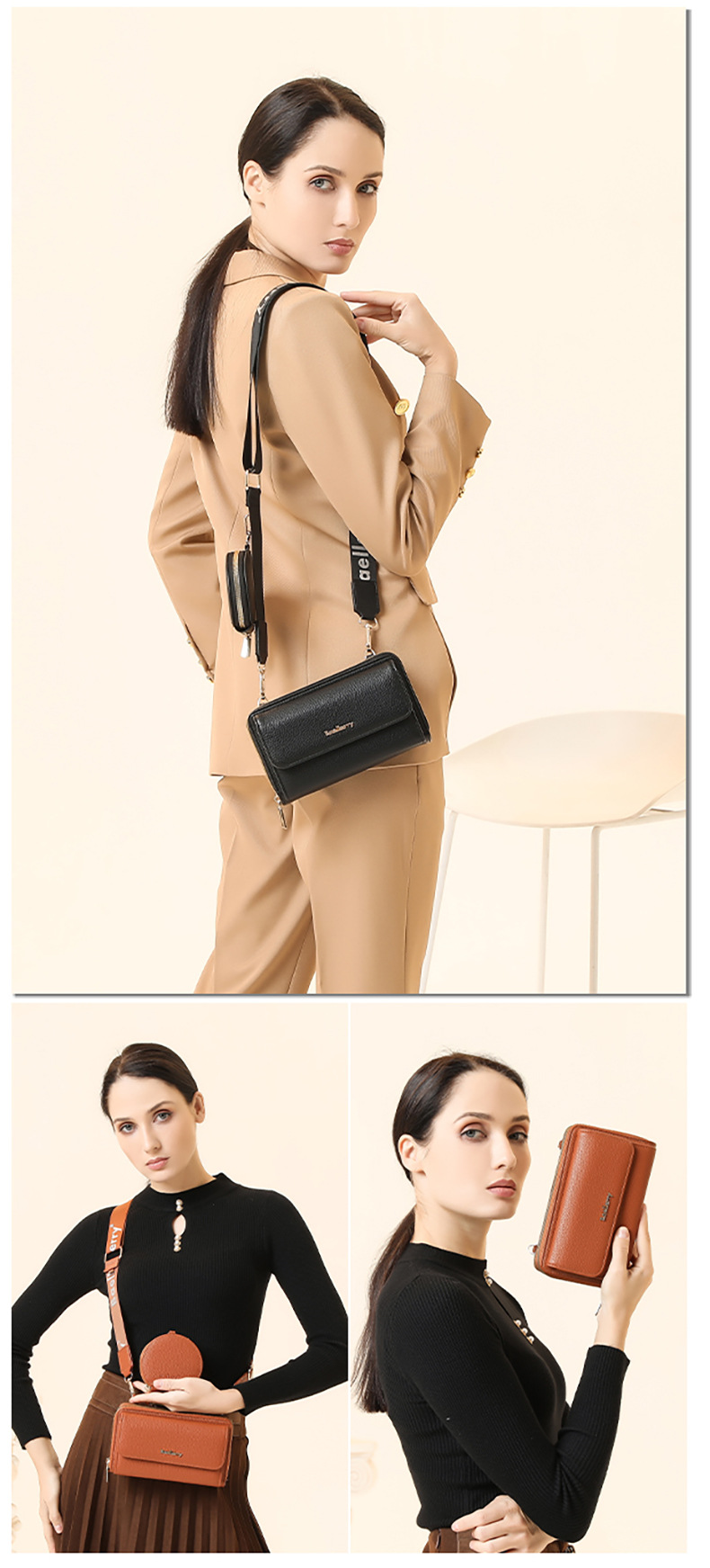 새로운 휴대폰 가방 미니 숄더백 여성용 휴대폰 가방 고급스러운 패션 PU 크로스백 여성용 리그레인 이중 가방스토어 가기