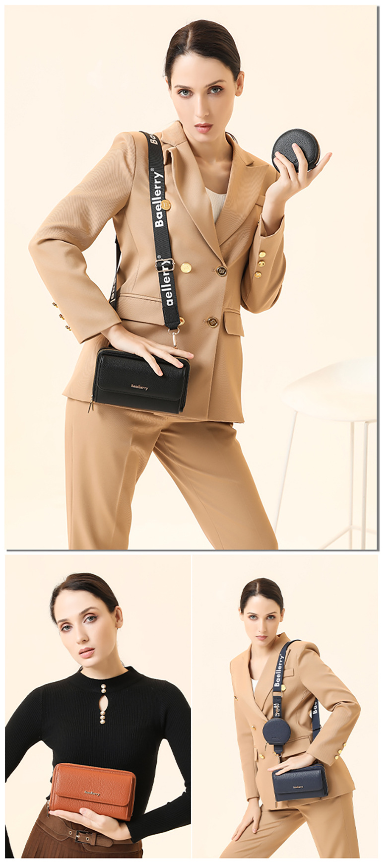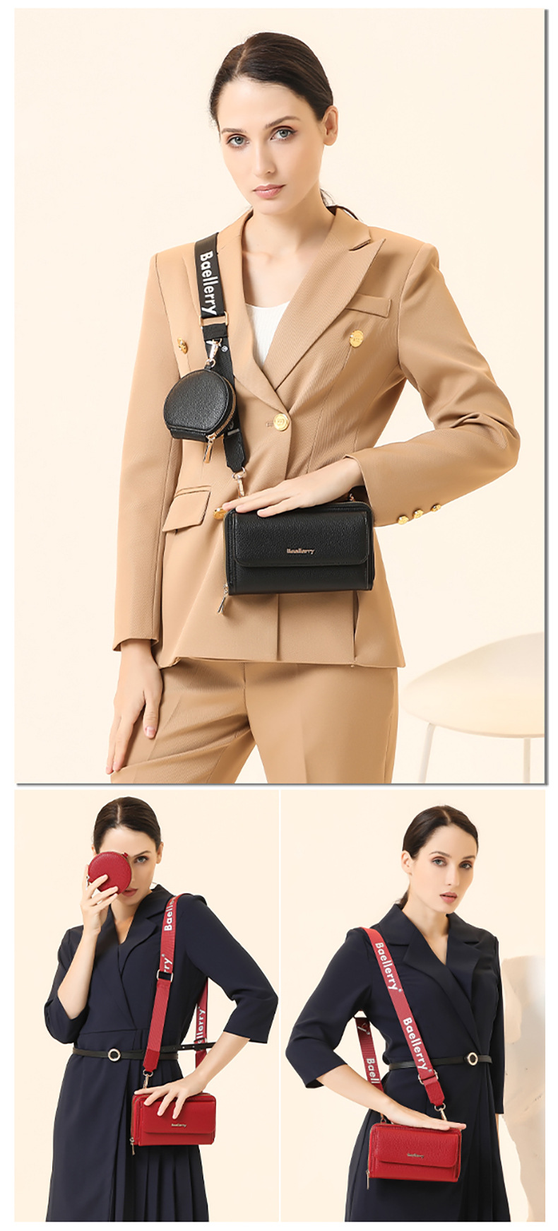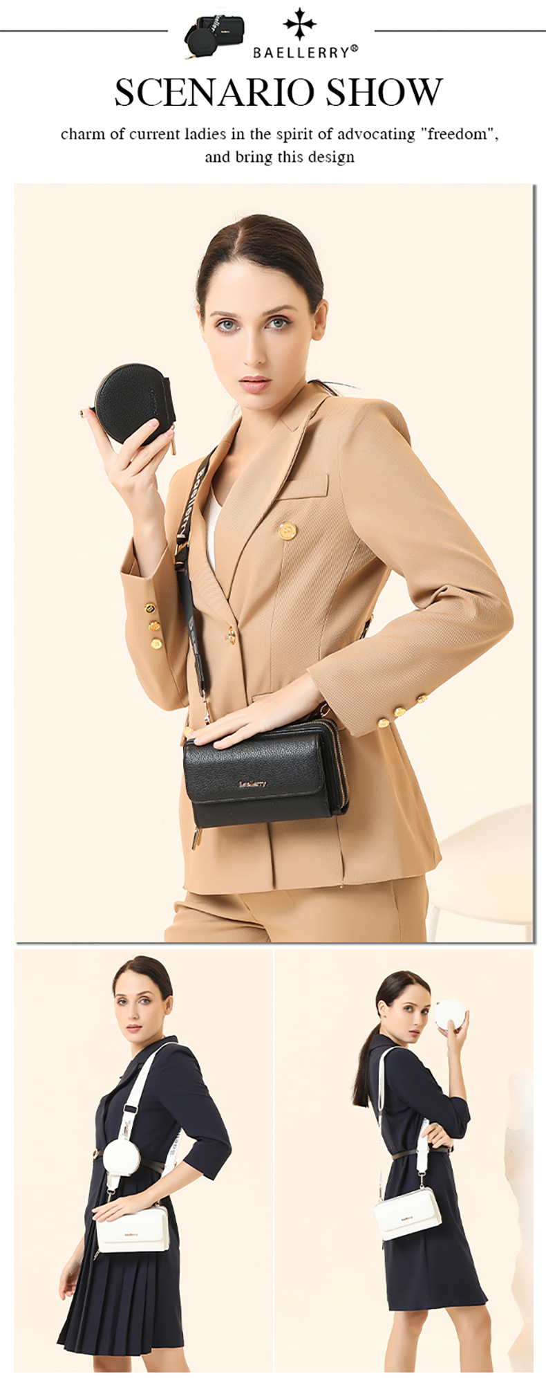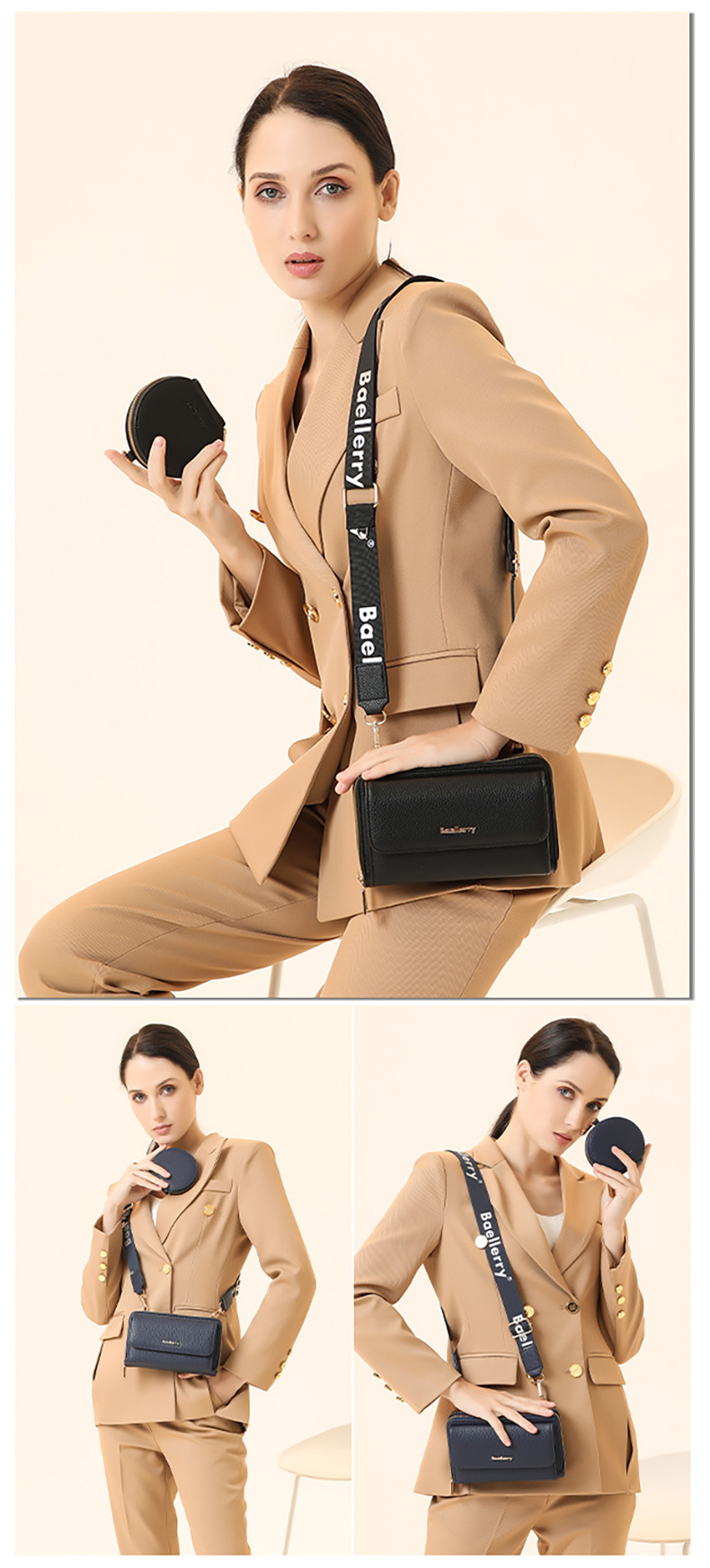 새로운 휴대폰 가방 미니 숄더백 여성용 휴대폰 가방 고급스러운 패션 PU 크로스백 여성용 리그레인 이중 가방스토어 가기