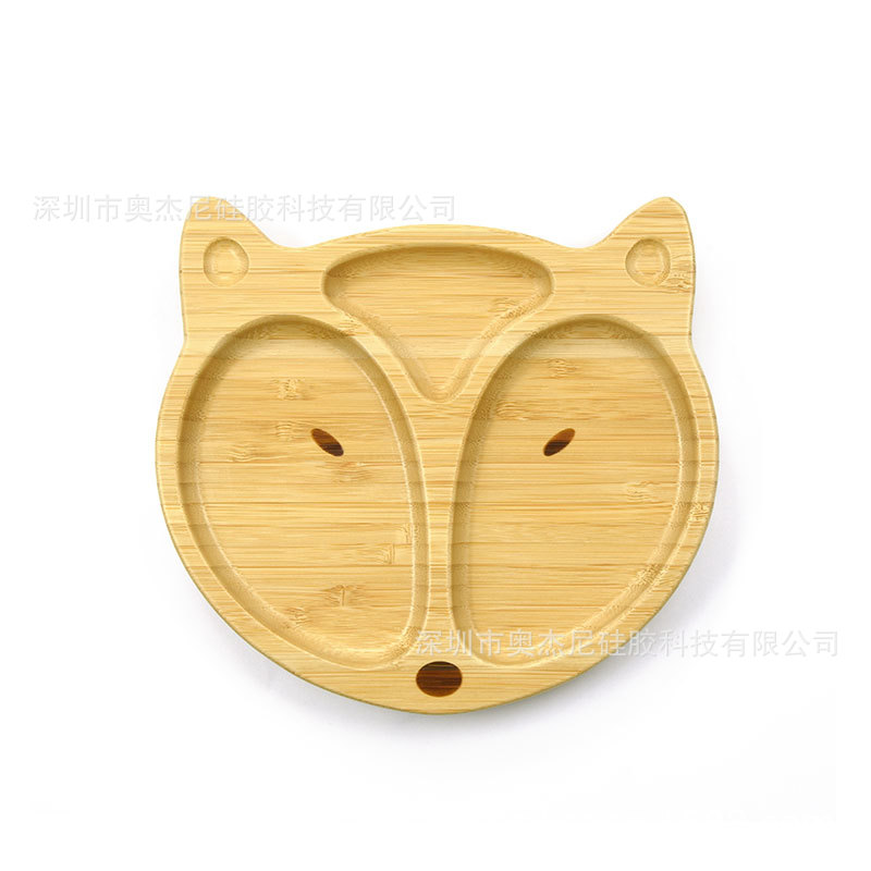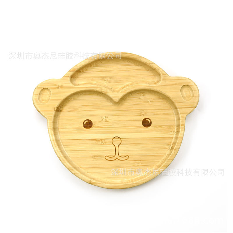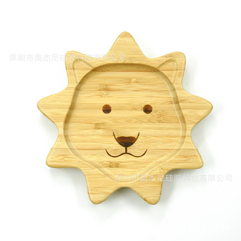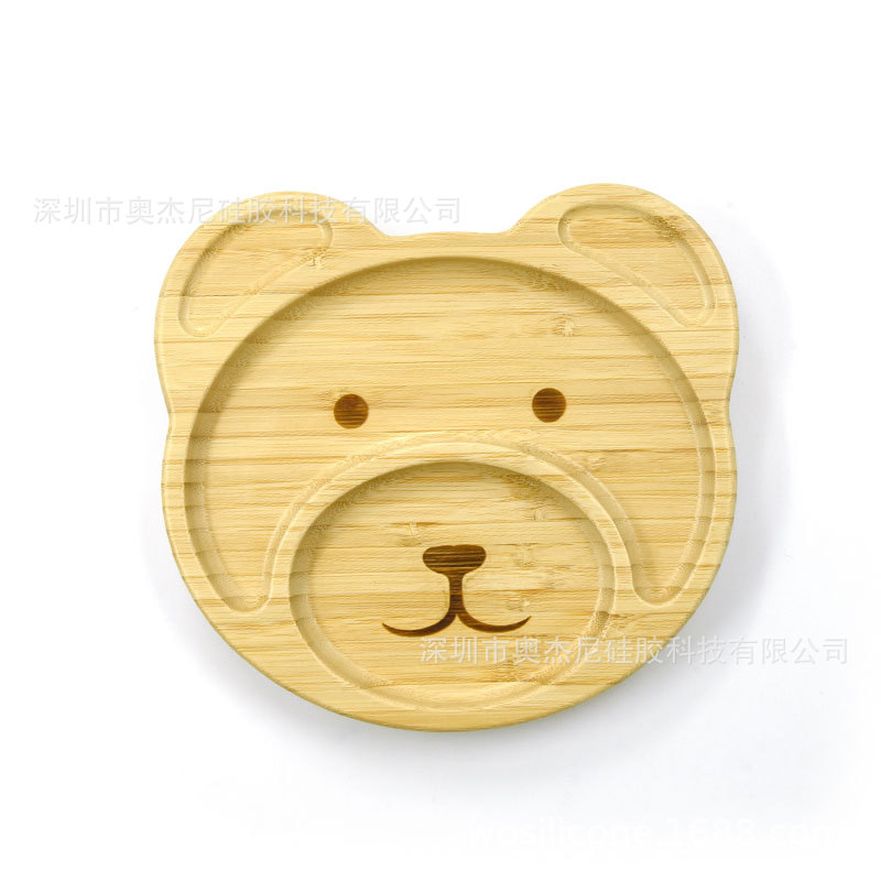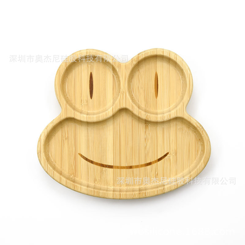국경 공장 도매 고급 나무 접시 어린이 식품 보충 트레이 아기 접시 만화 동물 대나무 접시