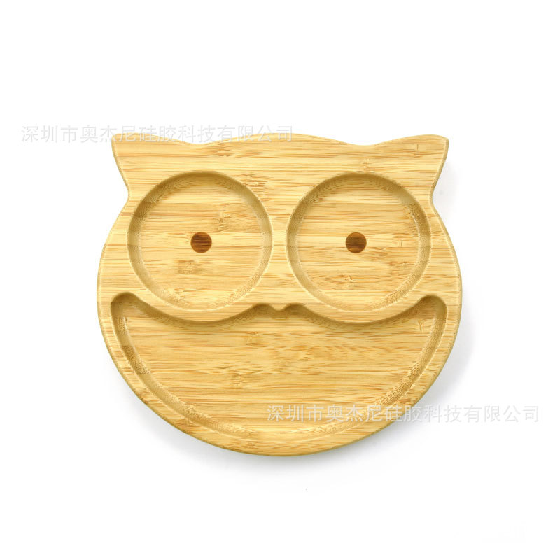 • 베이스 흡입 컵 올빼미 대나무 접시