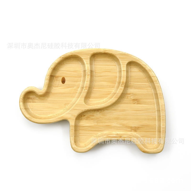 • 베이스 흡입 컵 코끼리 대나무 접시