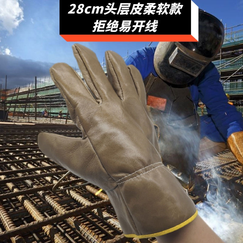 드라이버 용접 장갑 내구성 단열 용접공 용접 밝은 색상 보호 장갑 두꺼운 내구성 짧은 소 가죽 장갑스토어 가기