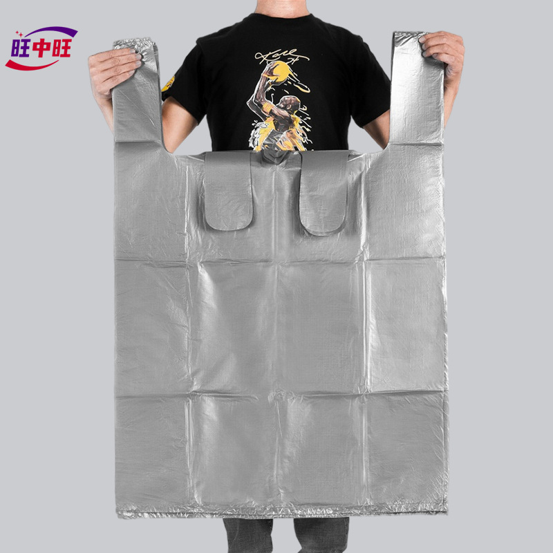실버 회색 비닐 봉투 대형 두꺼운 핸드백 이동 가방 조끼 조끼 대형 편리한 비닐 가방스토어 가기