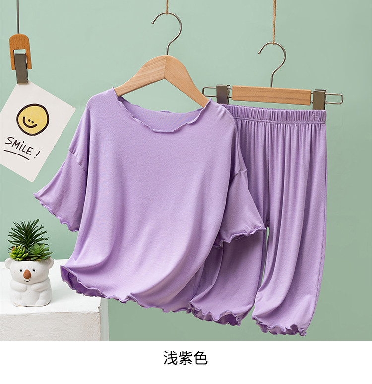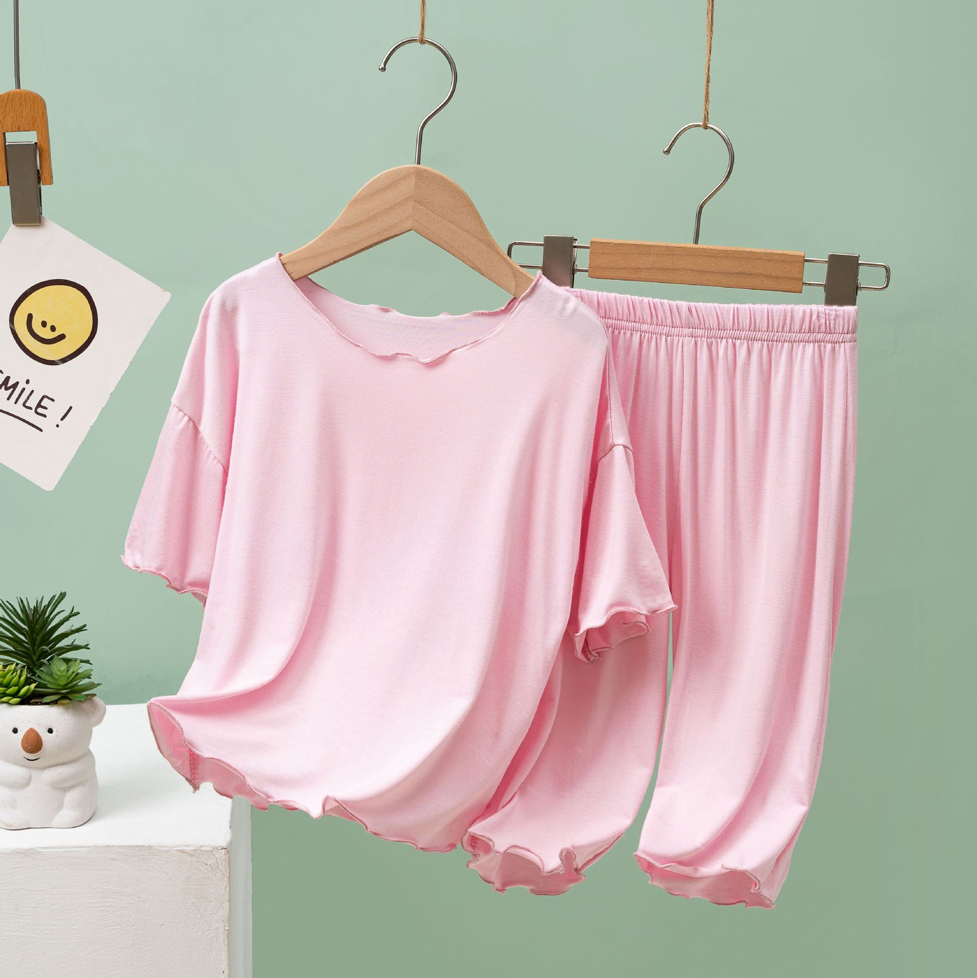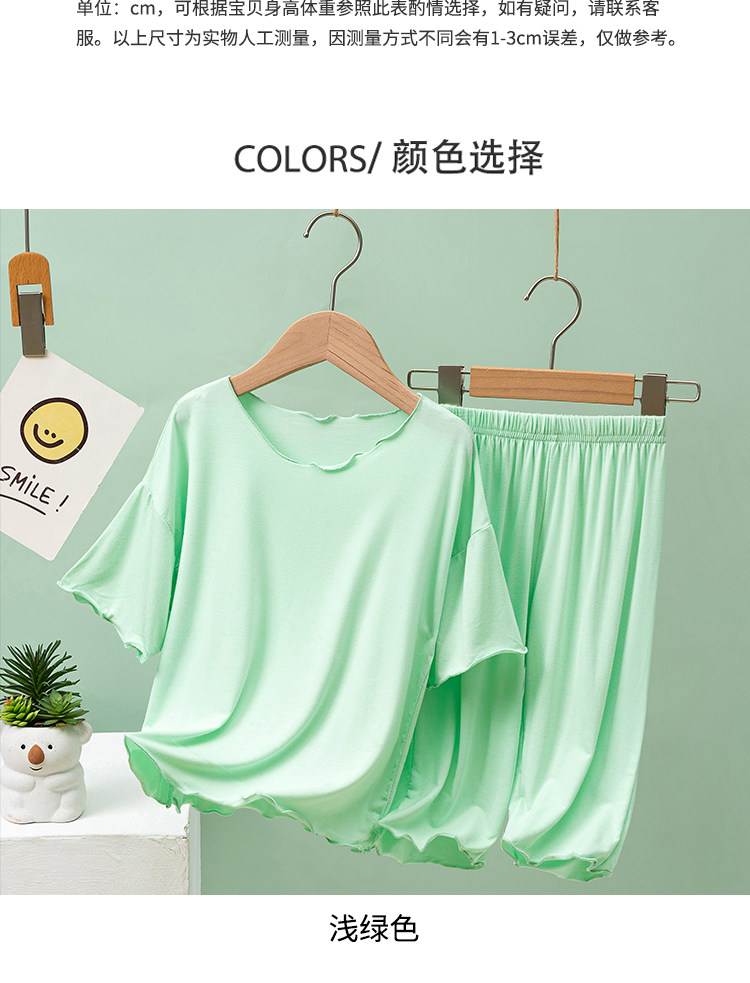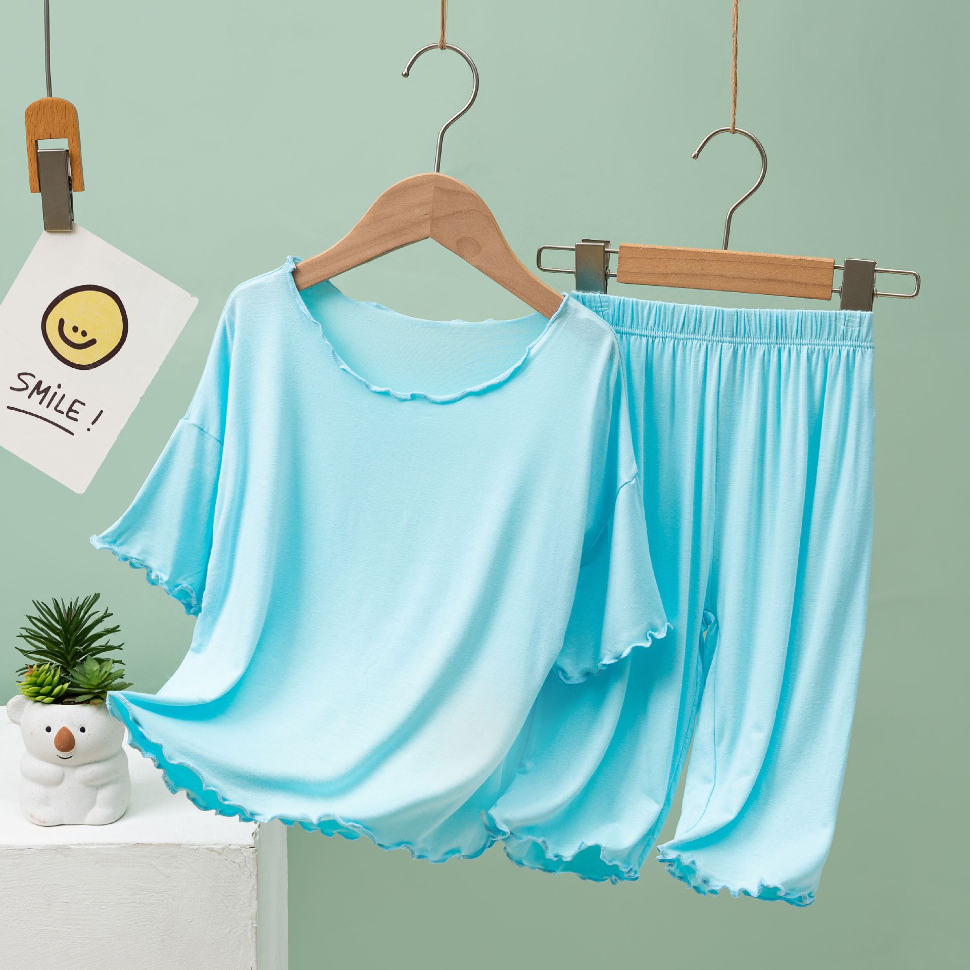 여아 반팔 반바지 잠옷 여름 모달 얇은 귀테 가정복 어린이 아이스 실크 에어컨 옷 세트