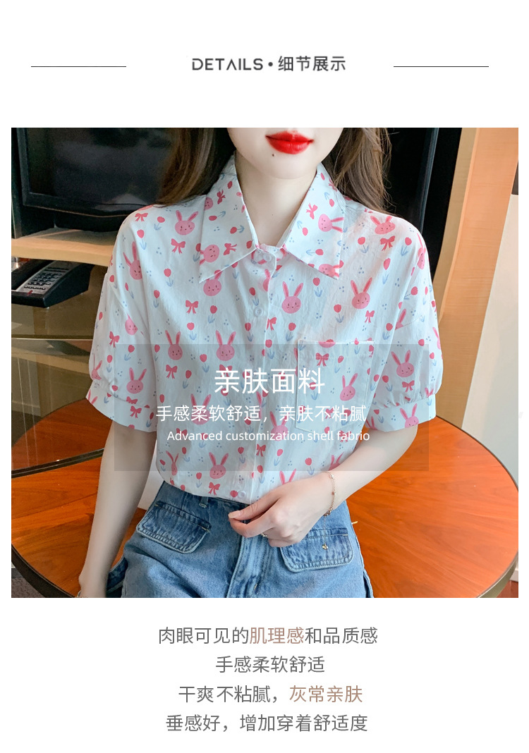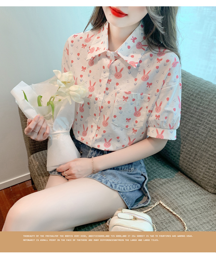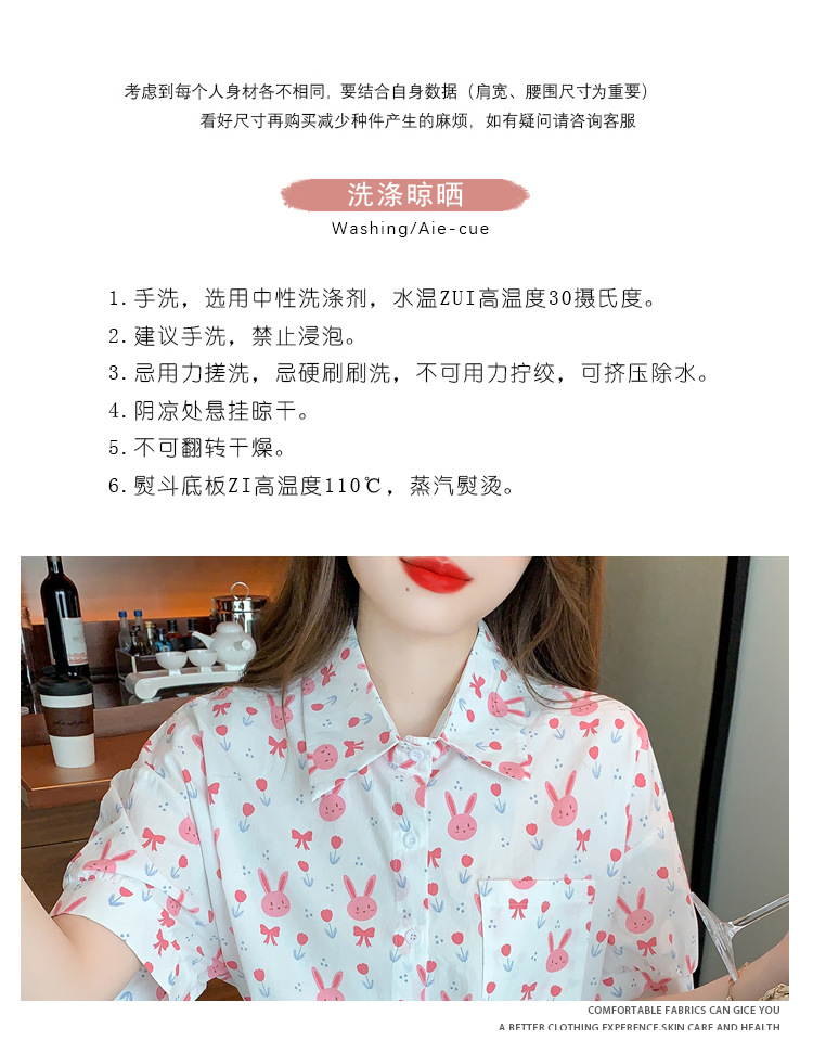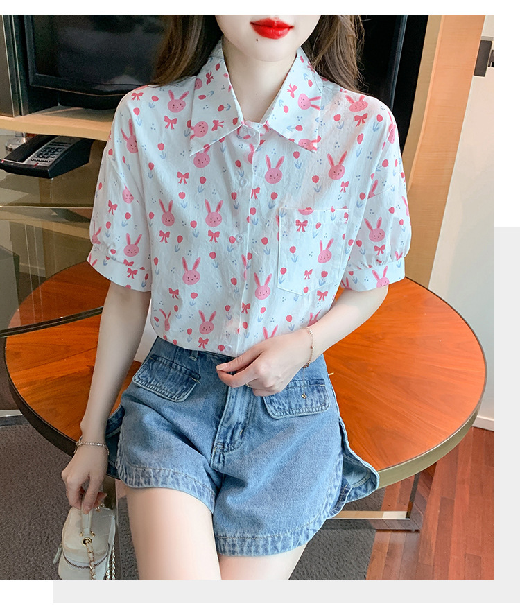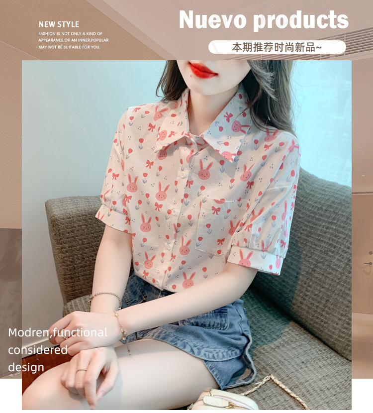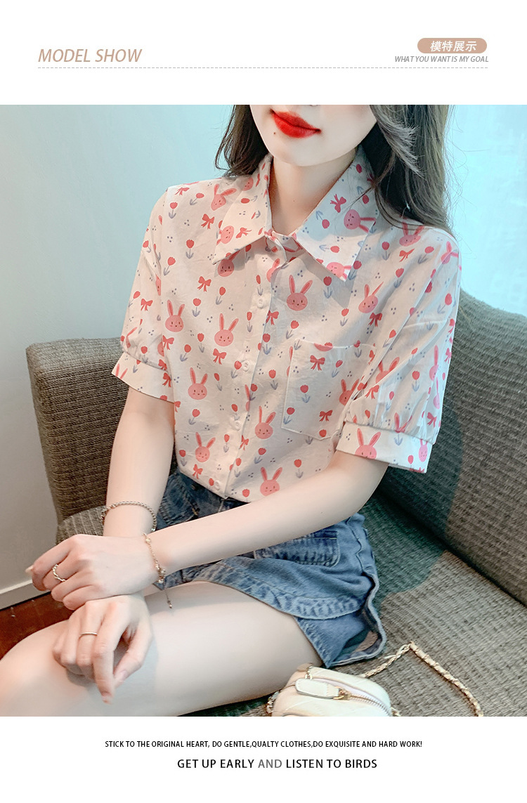 리얼 샷 2024 여름 새로운 한국 스타일 느슨한 디자인 센스 틈새 달콤한 만화 인쇄 올매치 반팔 셔츠스토어 가기
