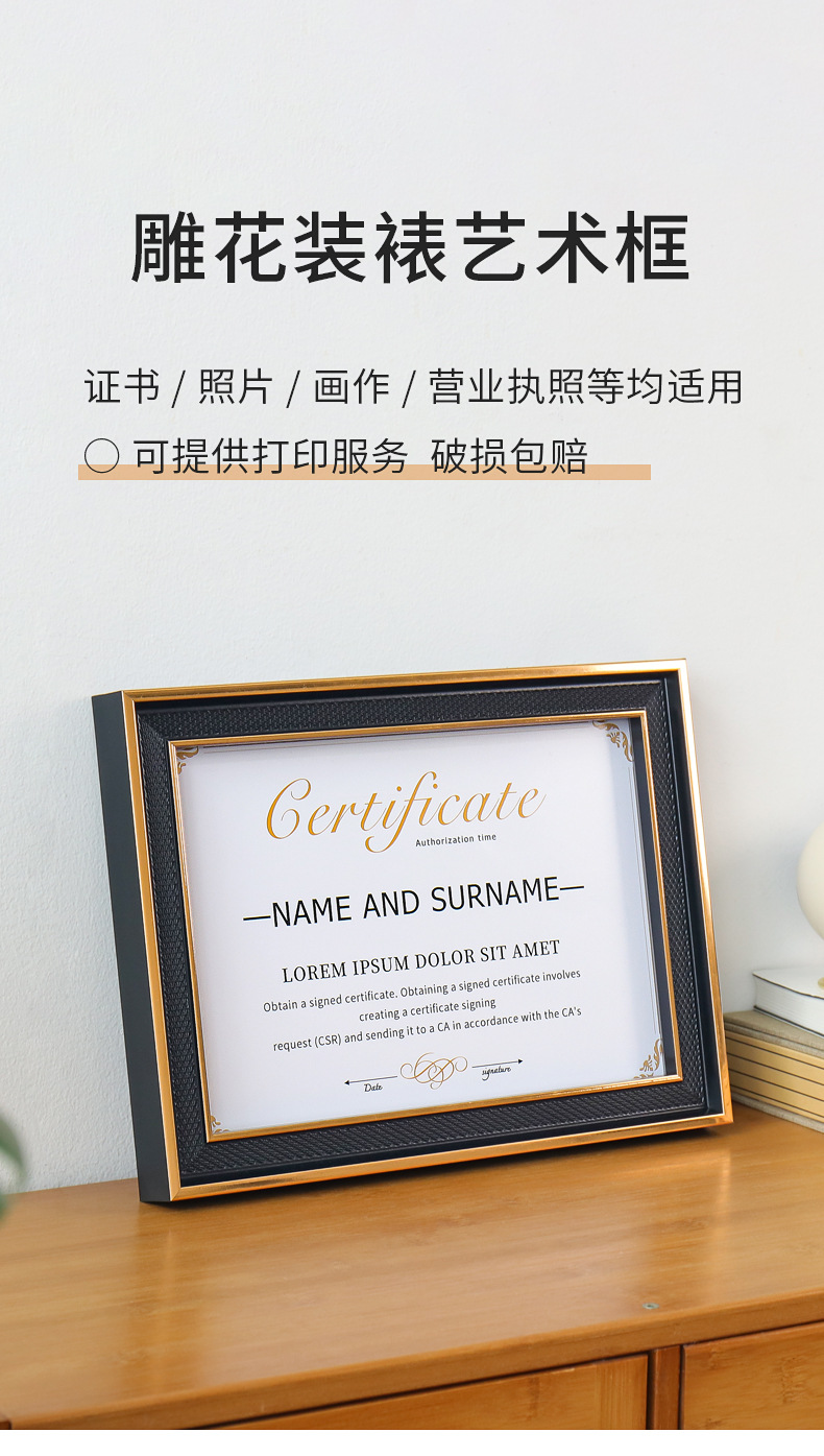 고급 사진 프레임 장식 명예 인증서 디스플레이 프레임 a4 16 인치 승인 편지 특허 인증서 사진 프레임 도매 교수형