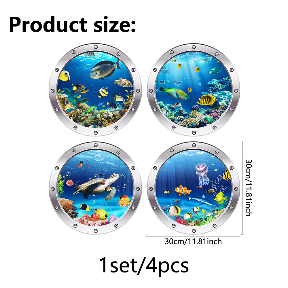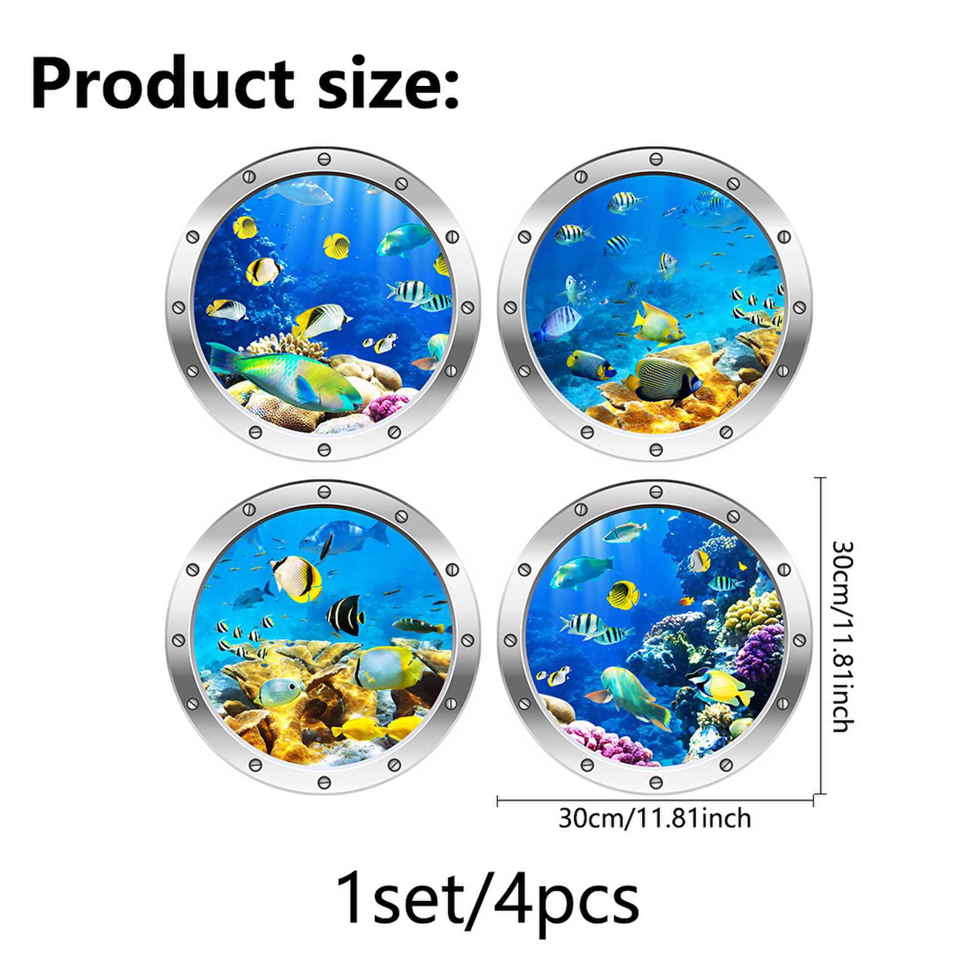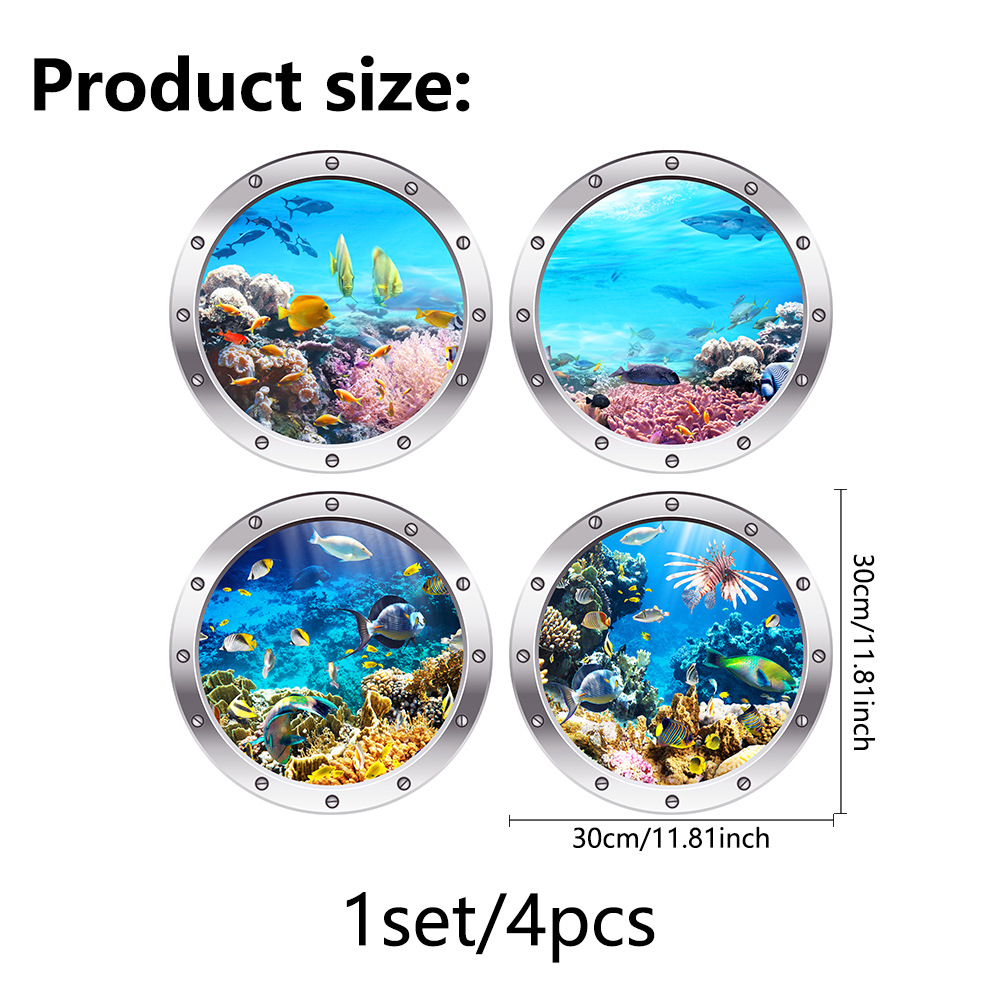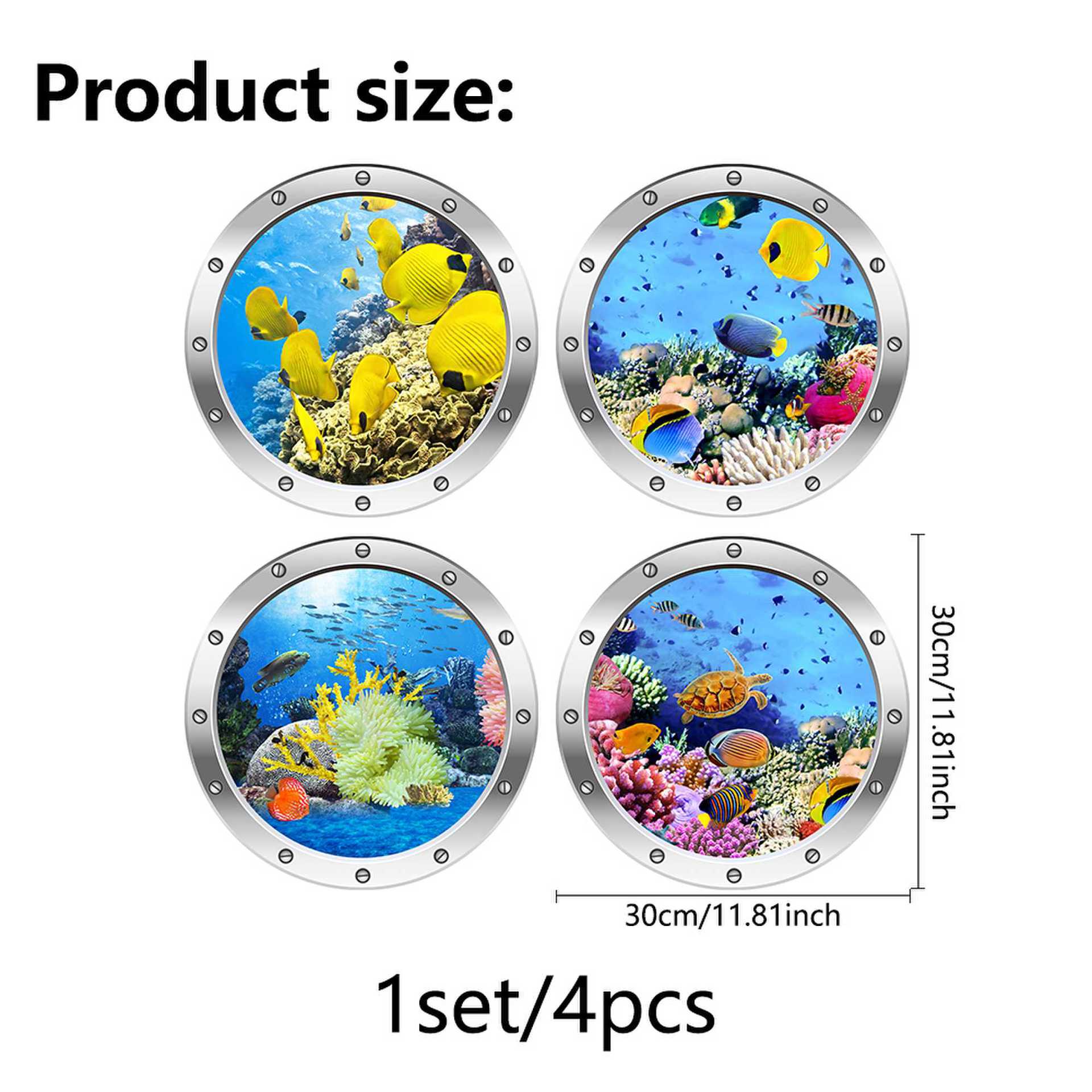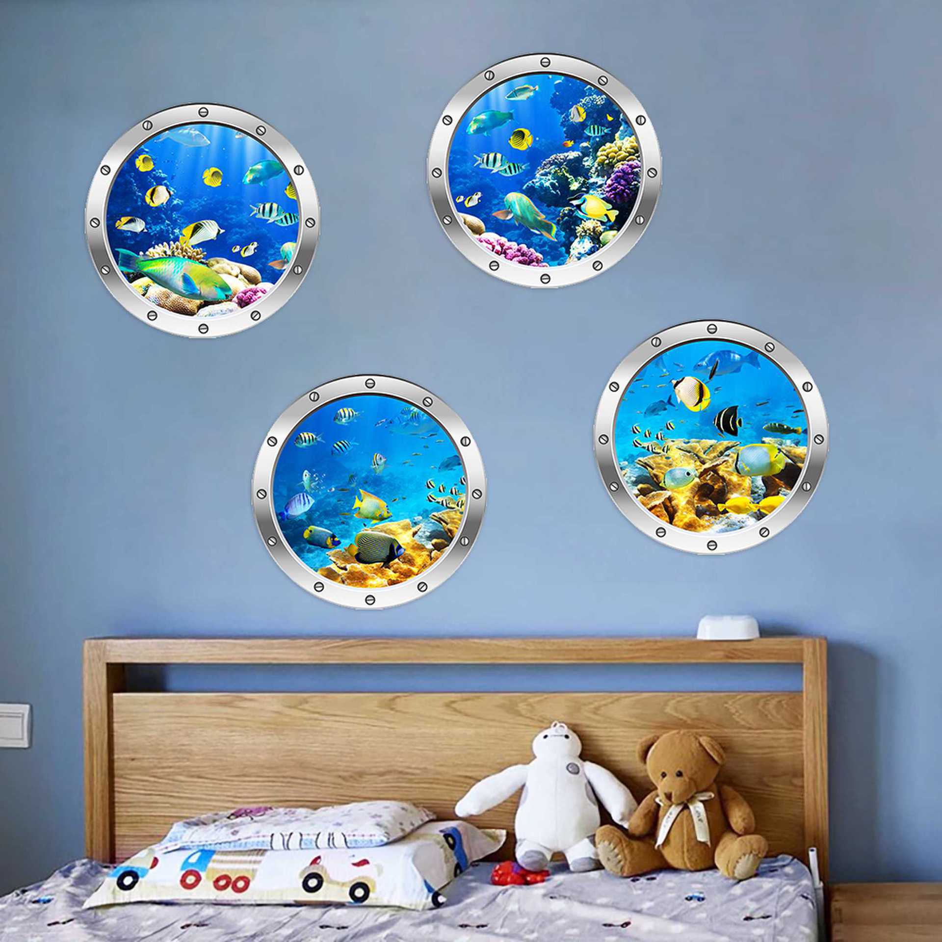 4 조각 수중 세계 잠수함 가짜 창 스티커 침실 침대 옆 어린이 방 크리스탈 하드 조각 장식 벽 스티커스토어 가기