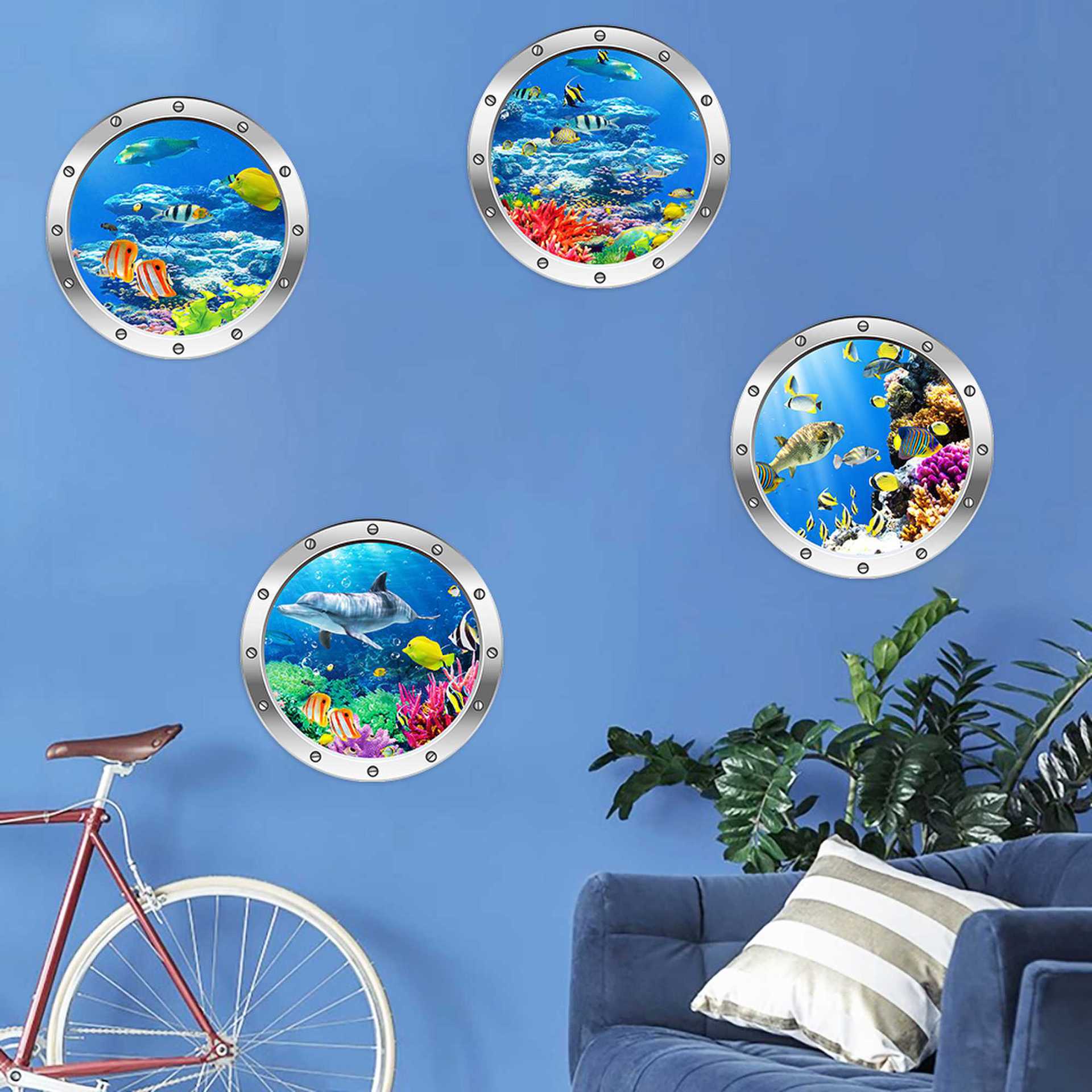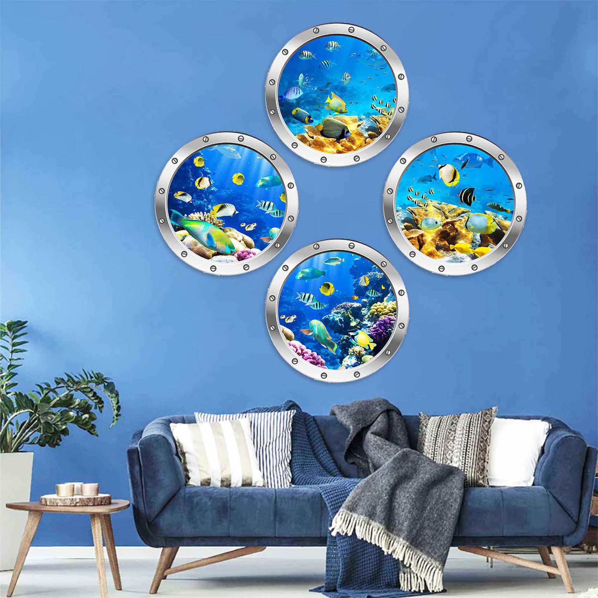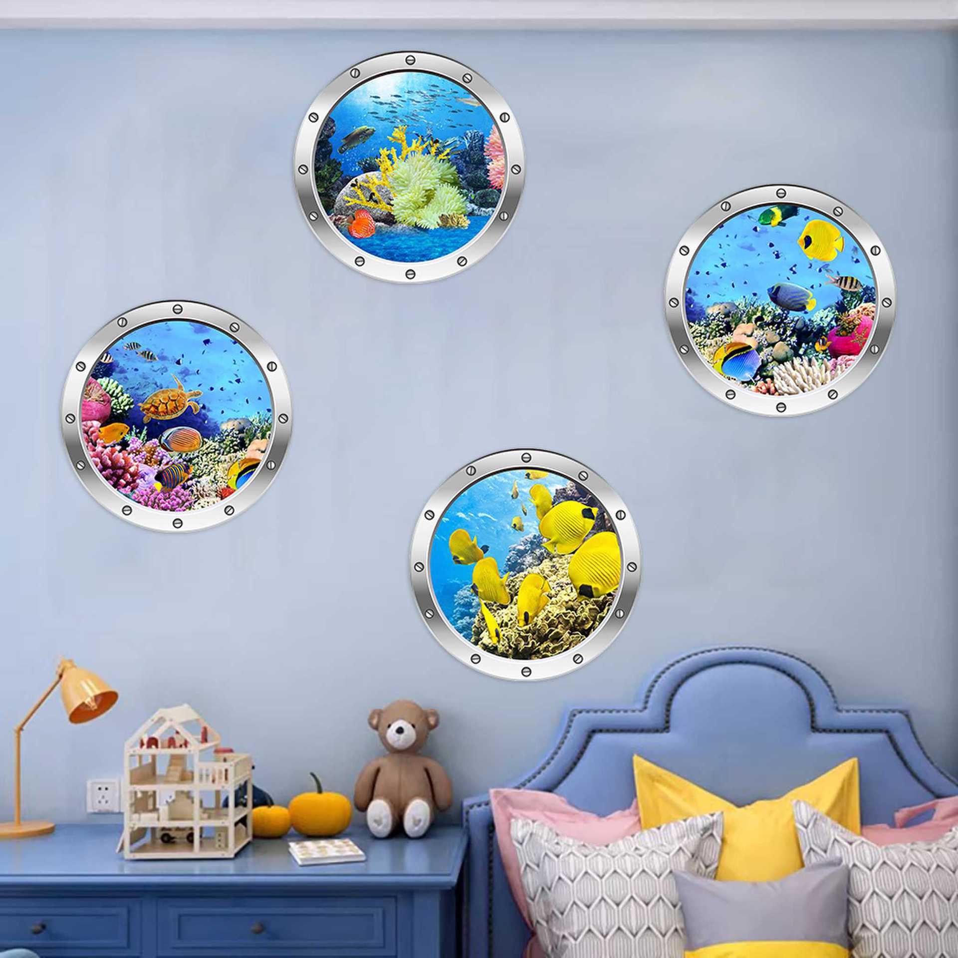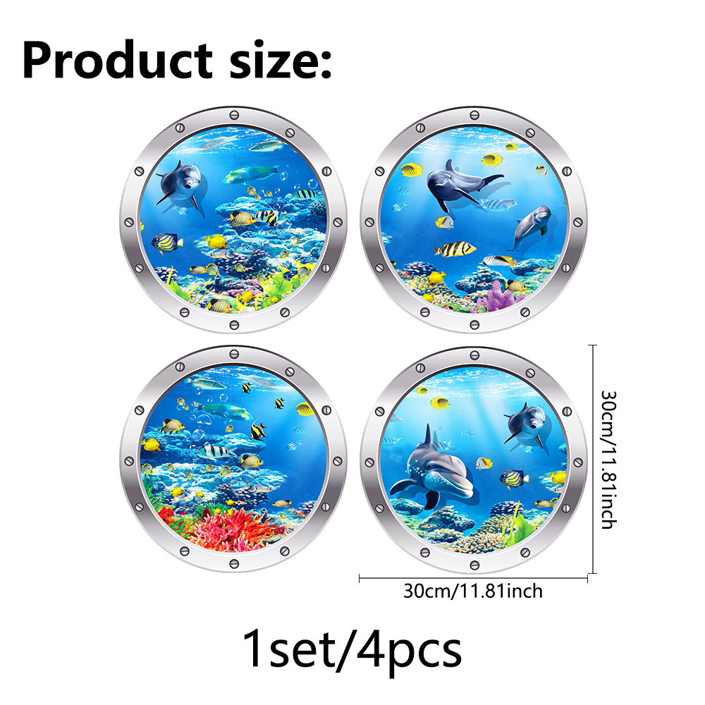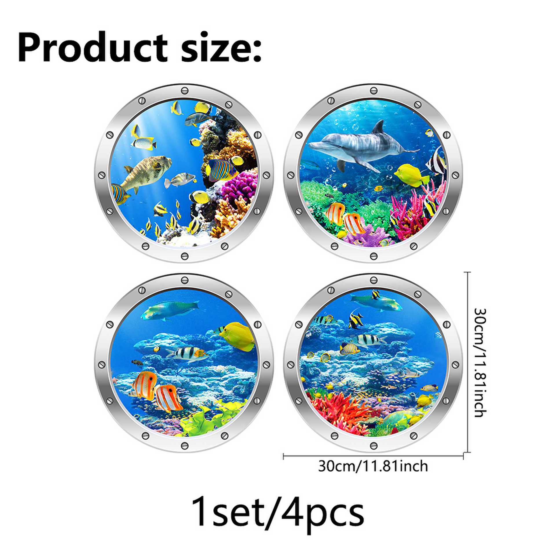 4 조각 수중 세계 잠수함 가짜 창 스티커 침실 침대 옆 어린이 방 크리스탈 하드 조각 장식 벽 스티커스토어 가기