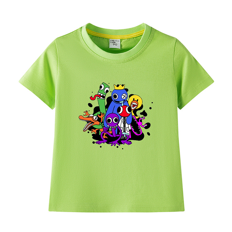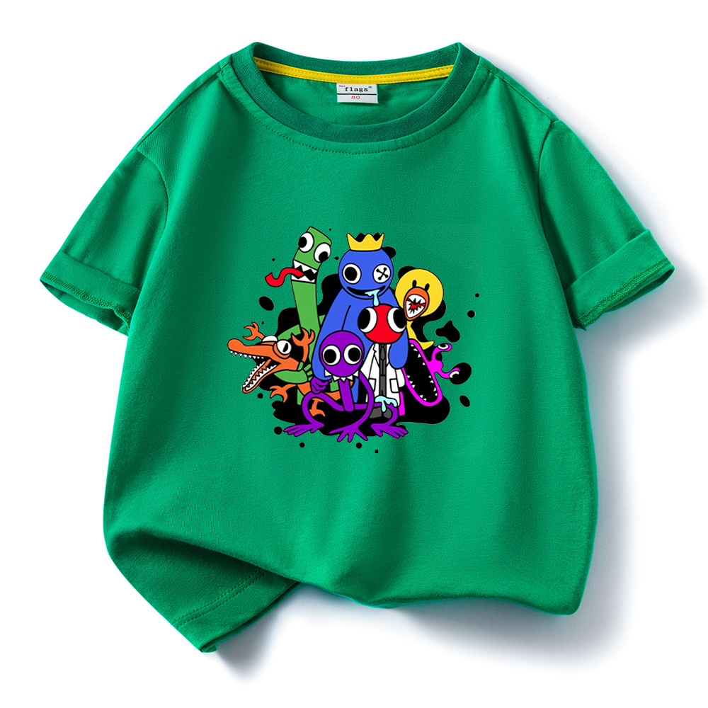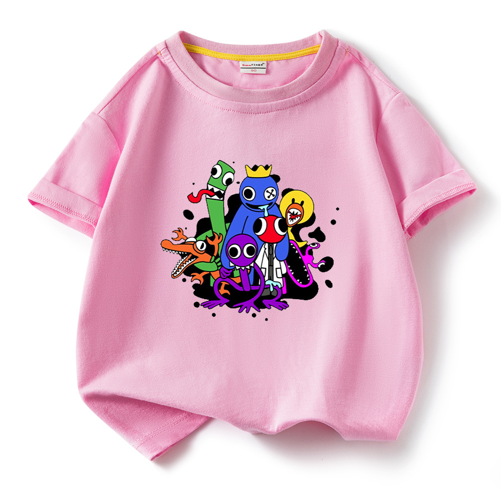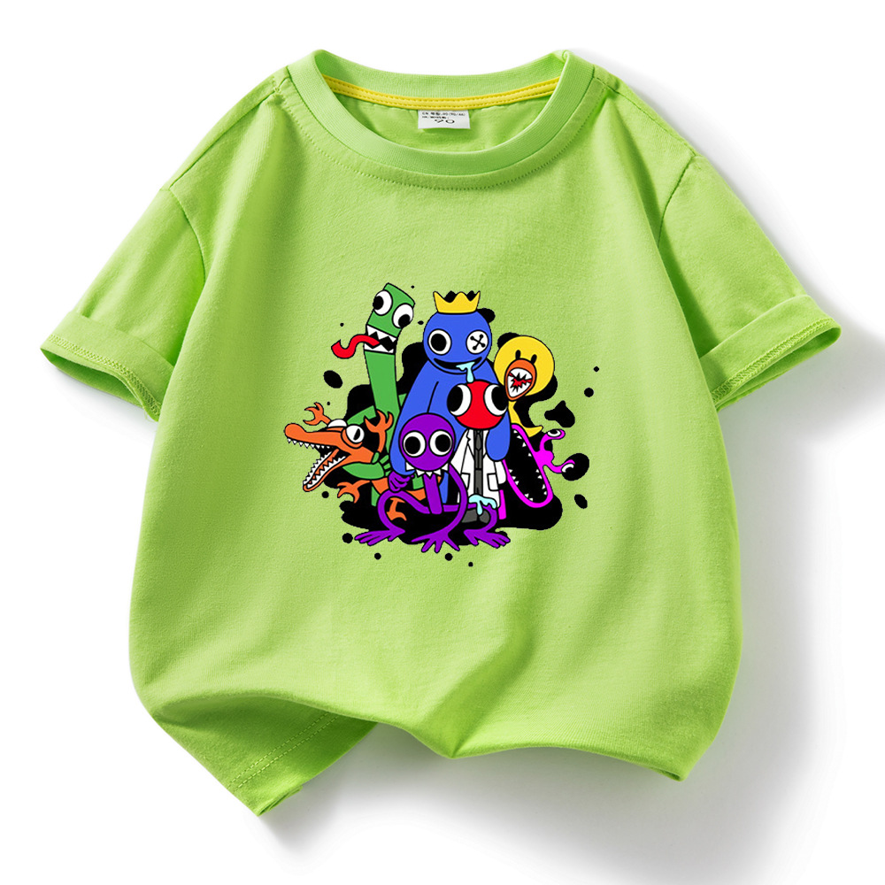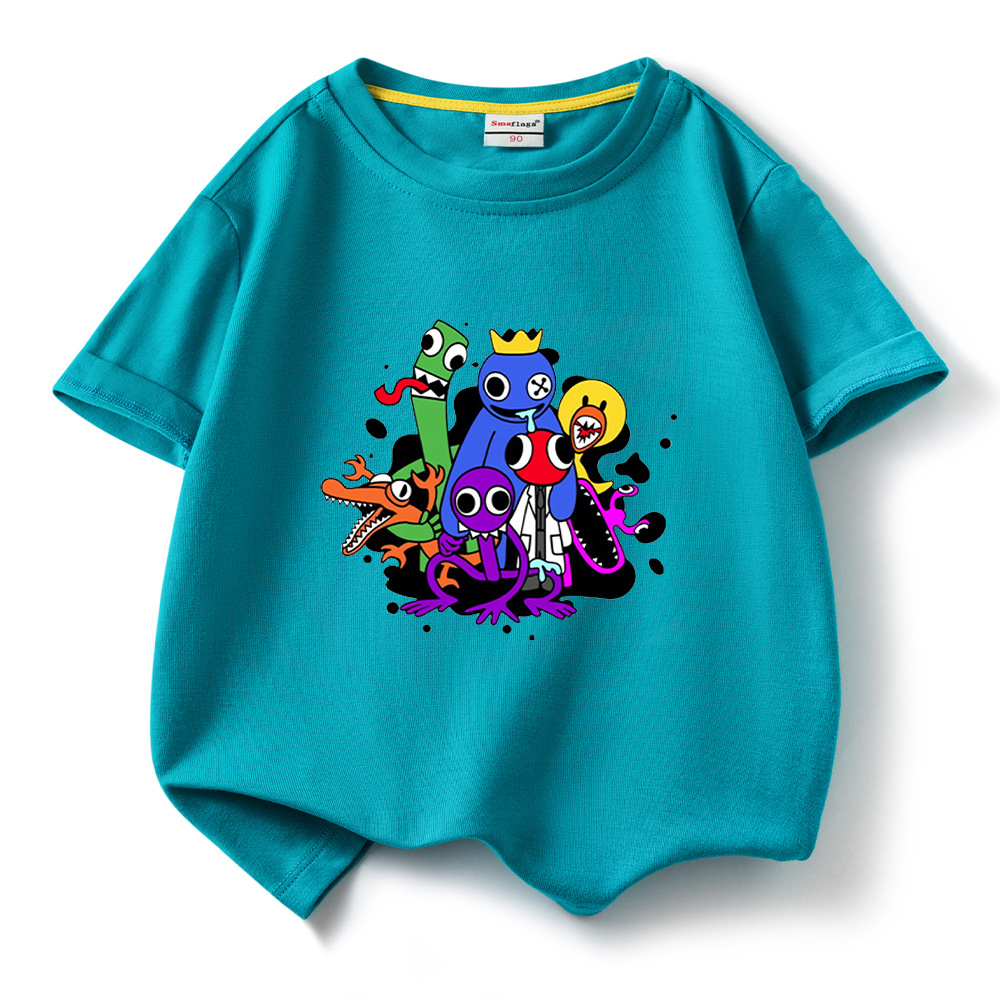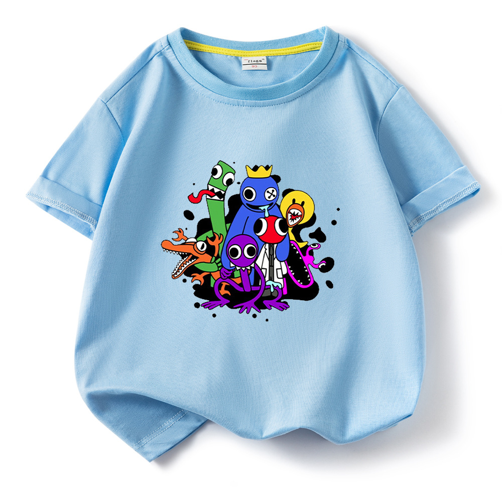 레인보우 프렌즈 만화 아동복 반팔 티셔츠 소년 소녀 순면 여름 새 어린이 느슨한 통기성 티셔츠