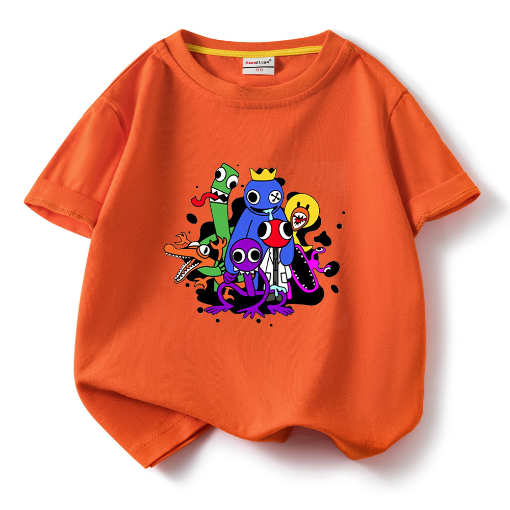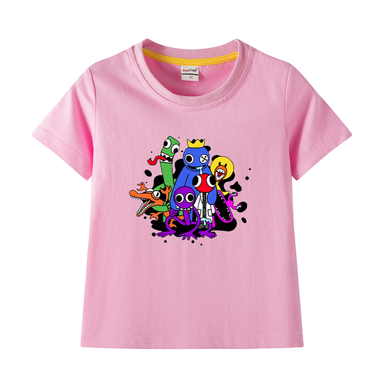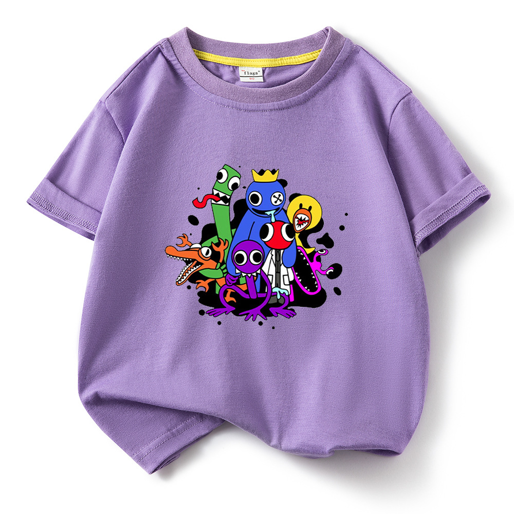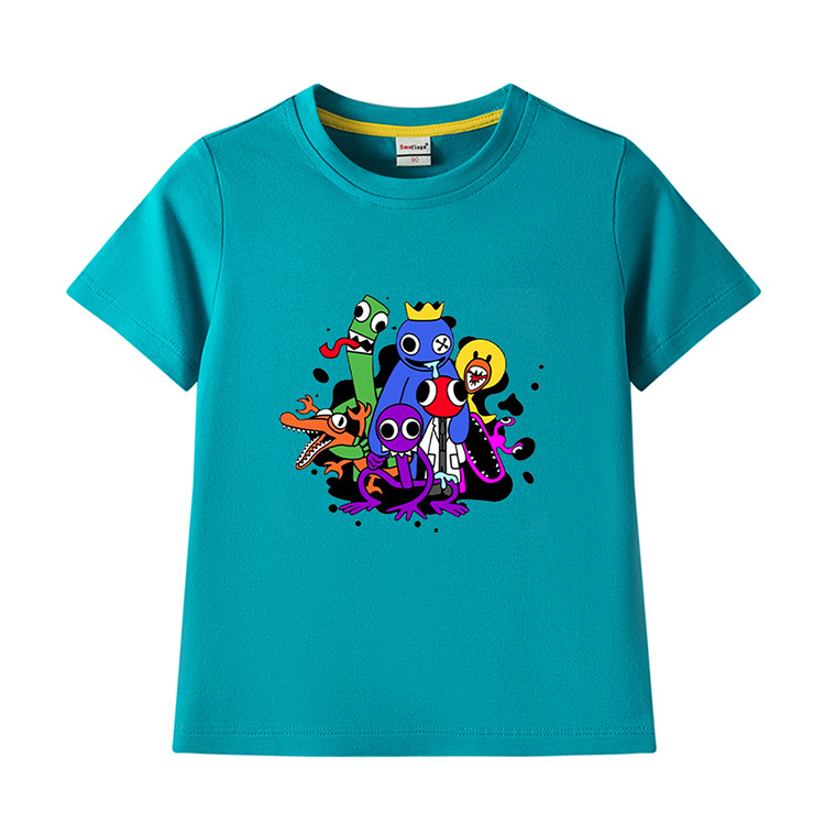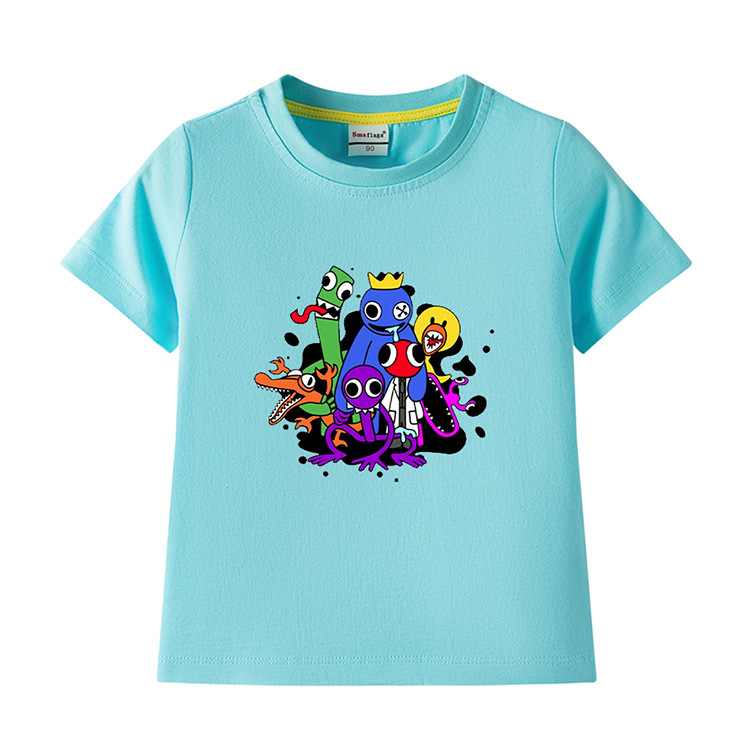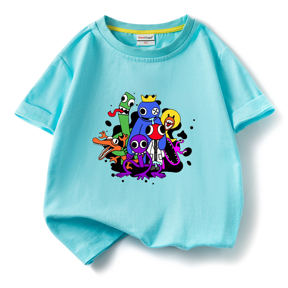 레인보우 프렌즈 만화 아동복 반팔 티셔츠 소년 소녀 순면 여름 새 어린이 느슨한 통기성 티셔츠