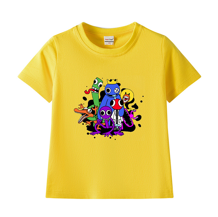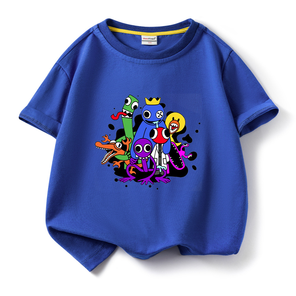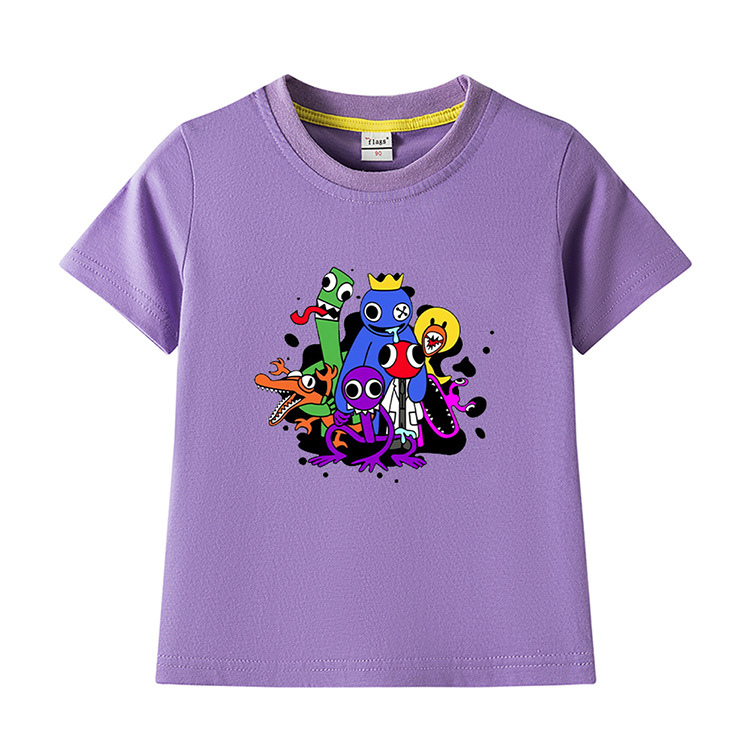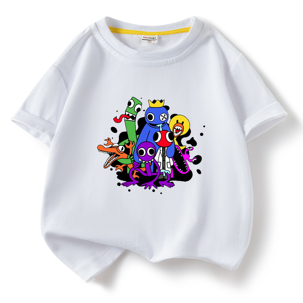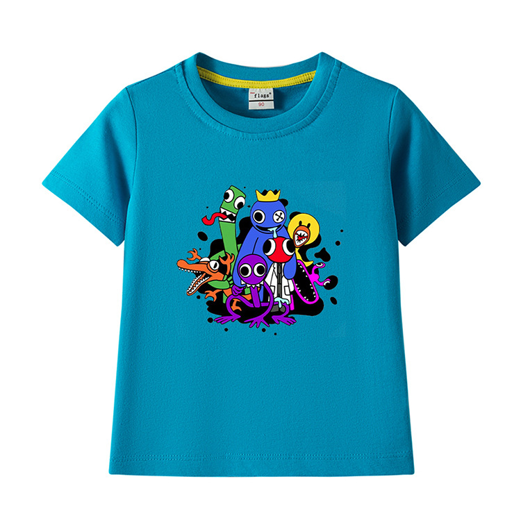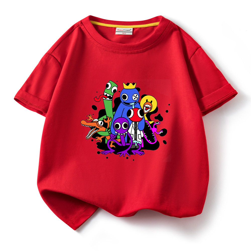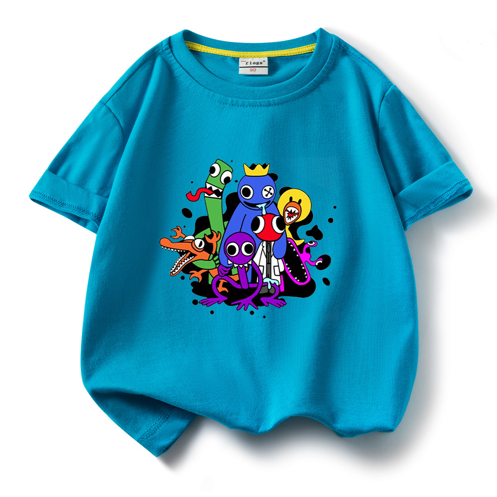 레인보우 프렌즈 만화 아동복 반팔 티셔츠 소년 소녀 순면 여름 새 어린이 느슨한 통기성 티셔츠