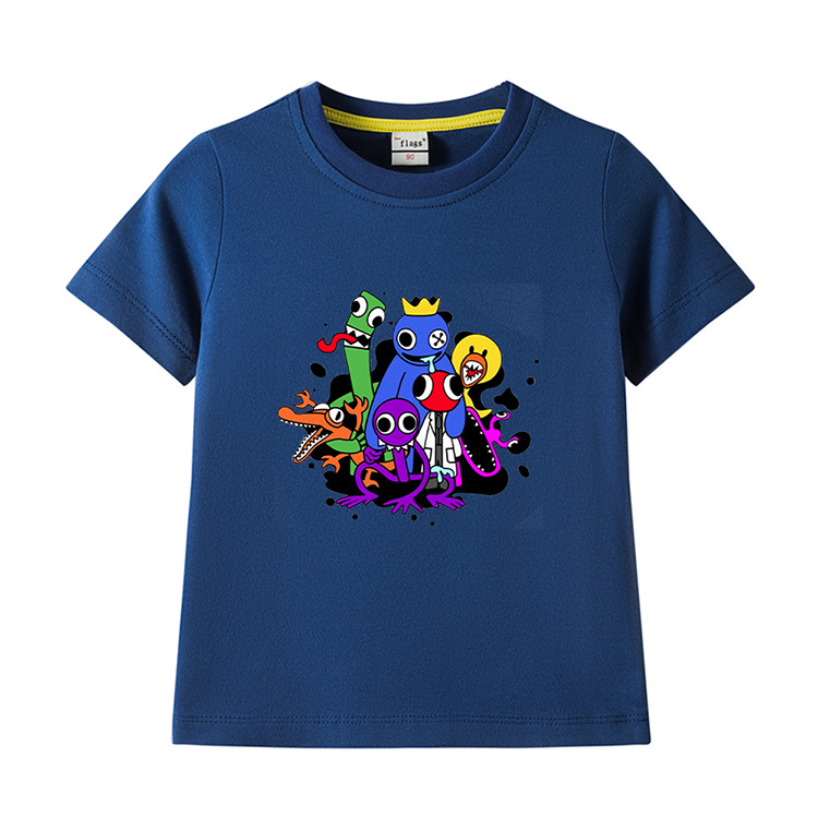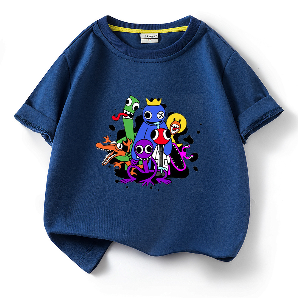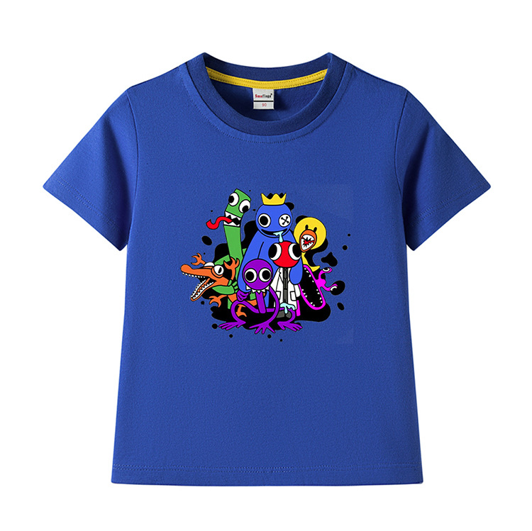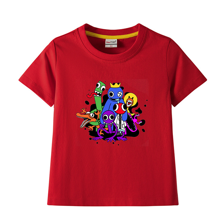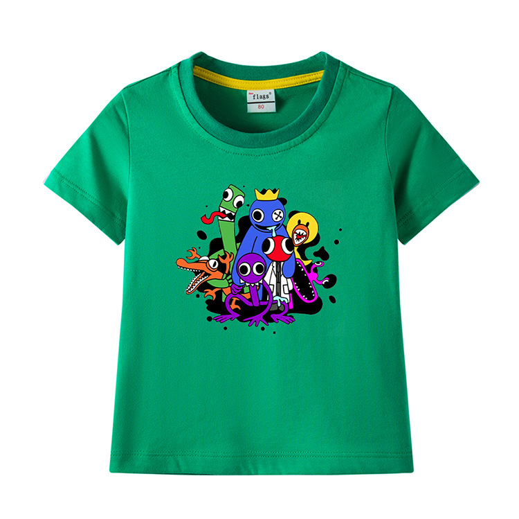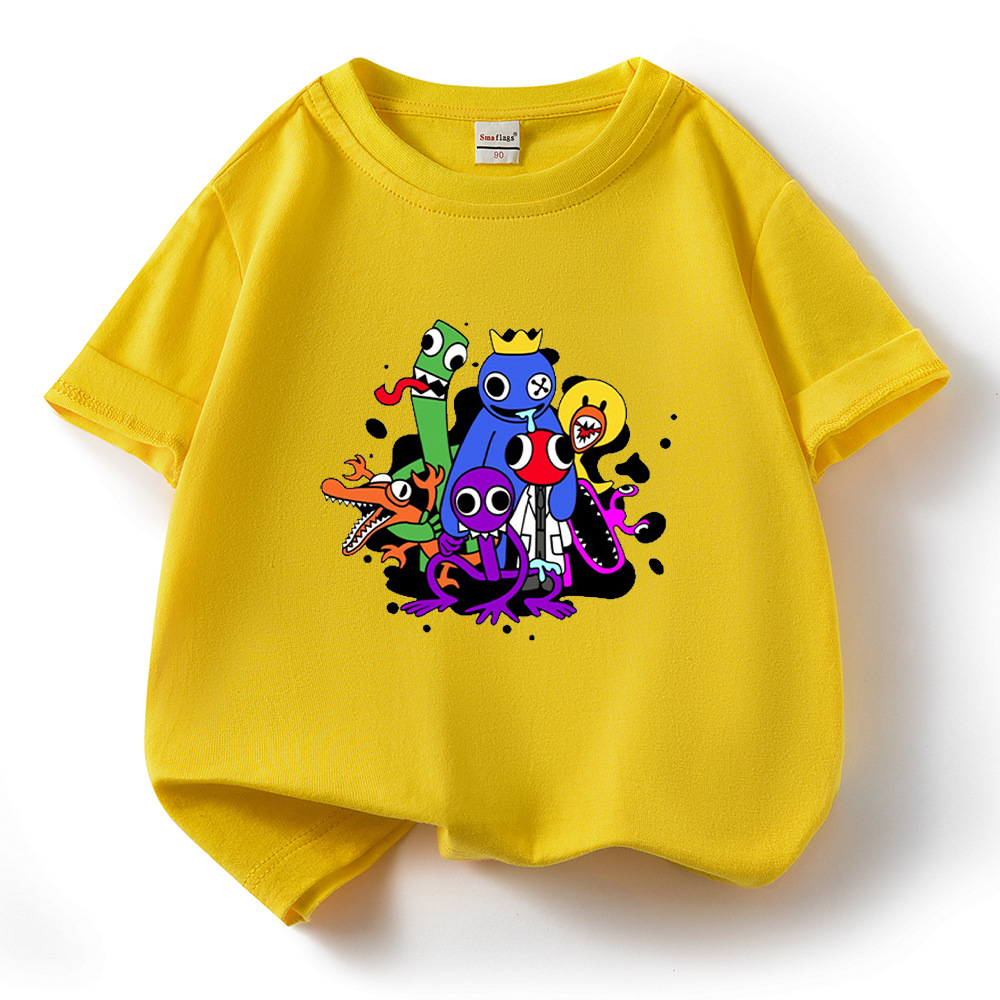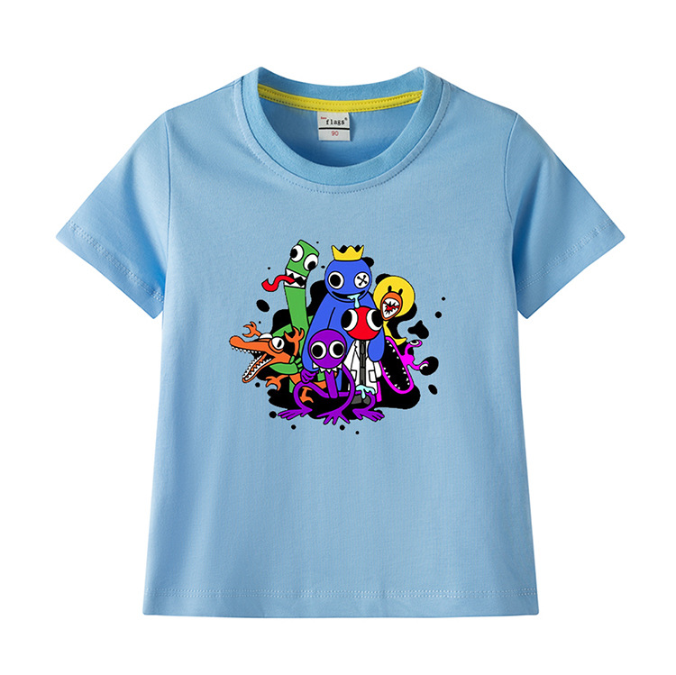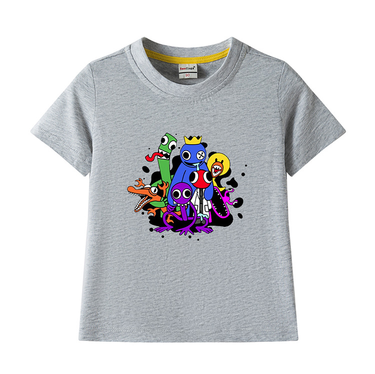 레인보우 프렌즈 만화 아동복 반팔 티셔츠 소년 소녀 순면 여름 새 어린이 느슨한 통기성 티셔츠