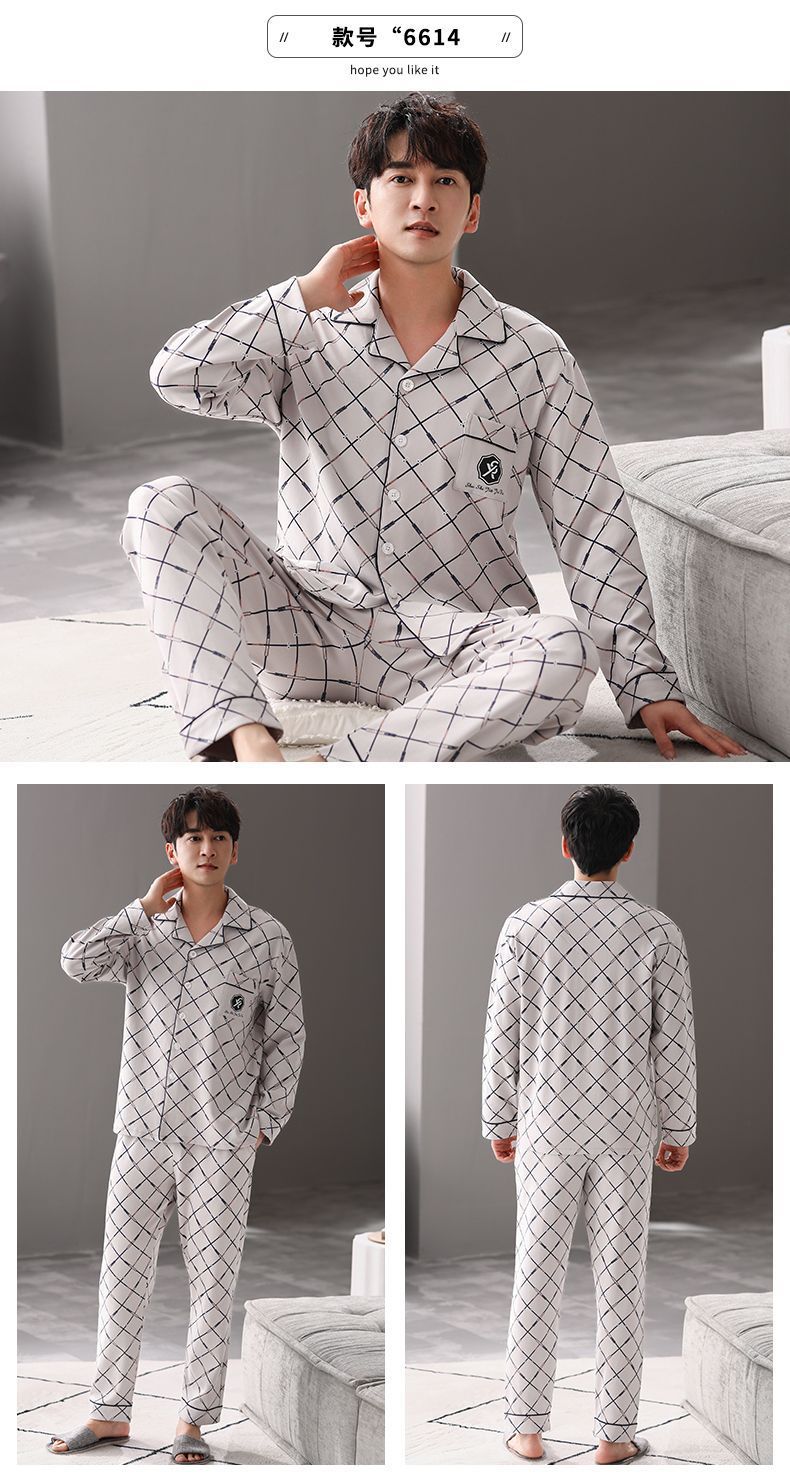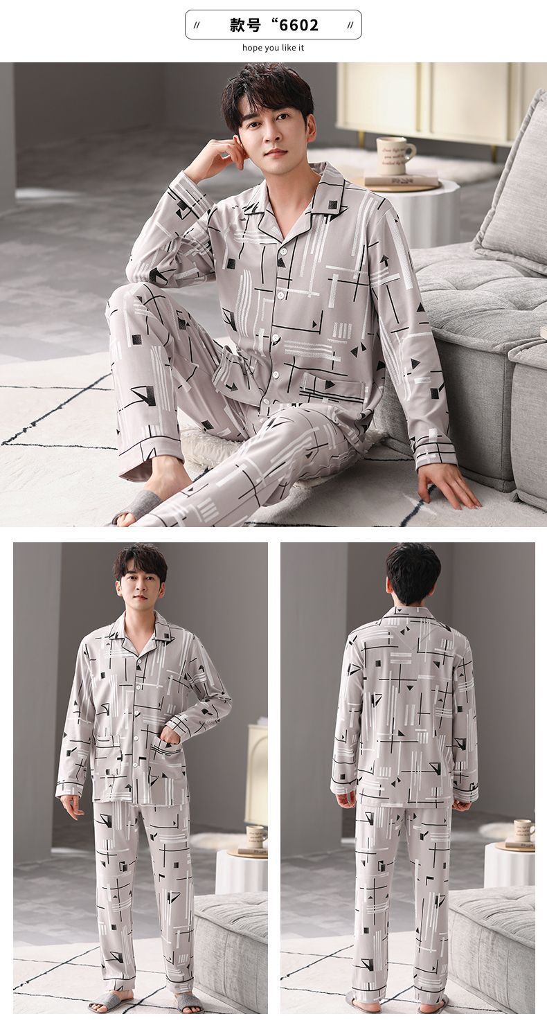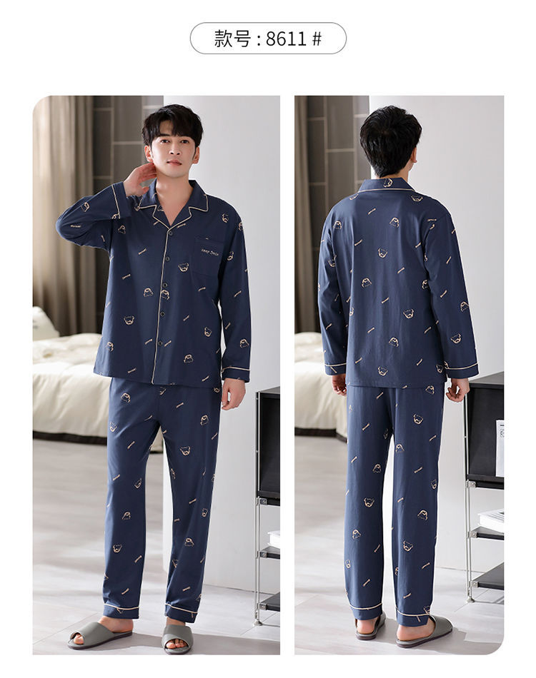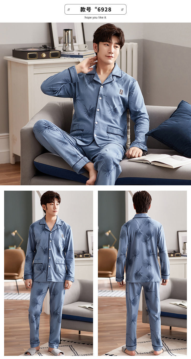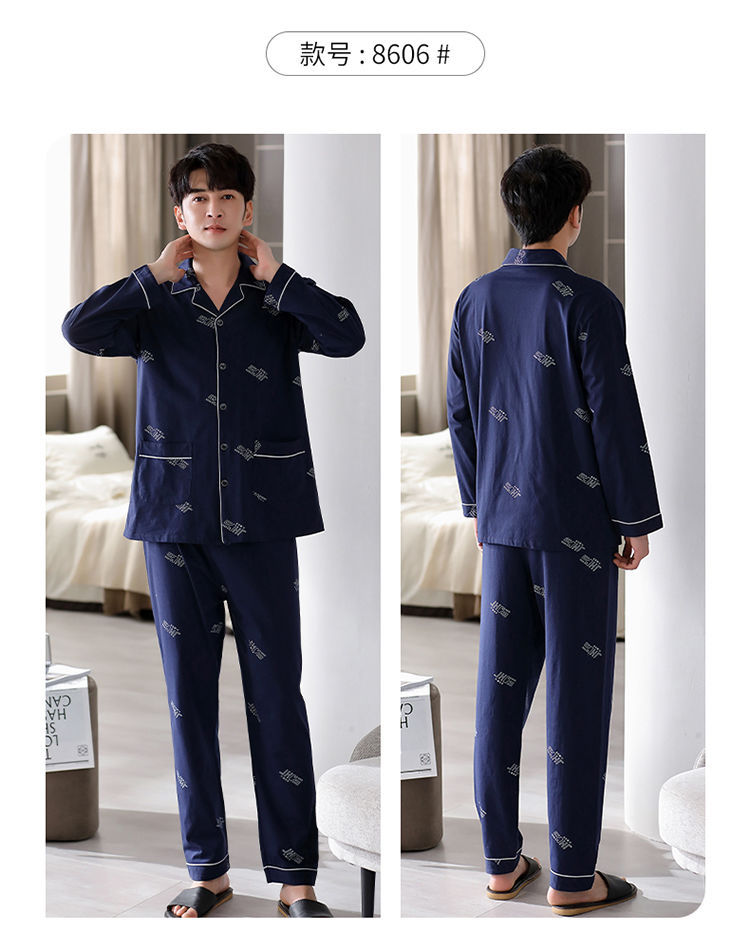 남자의 100% 면 잠옷 긴 소매 옷깃 카디건 면 세트 봄과 가을 플러스 사이즈 청소년 중년 및 노인 가정 의류스토어 가기