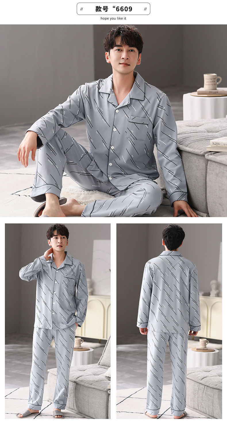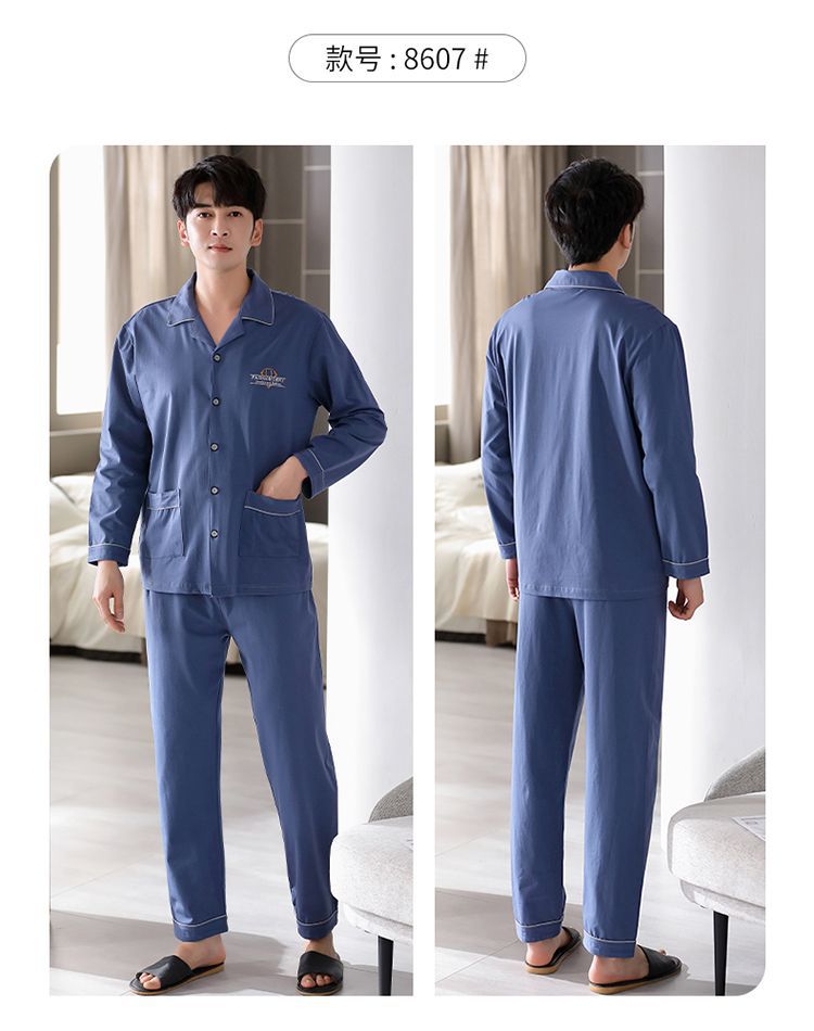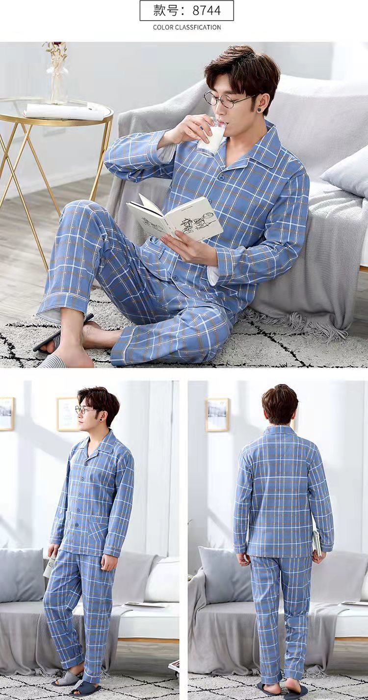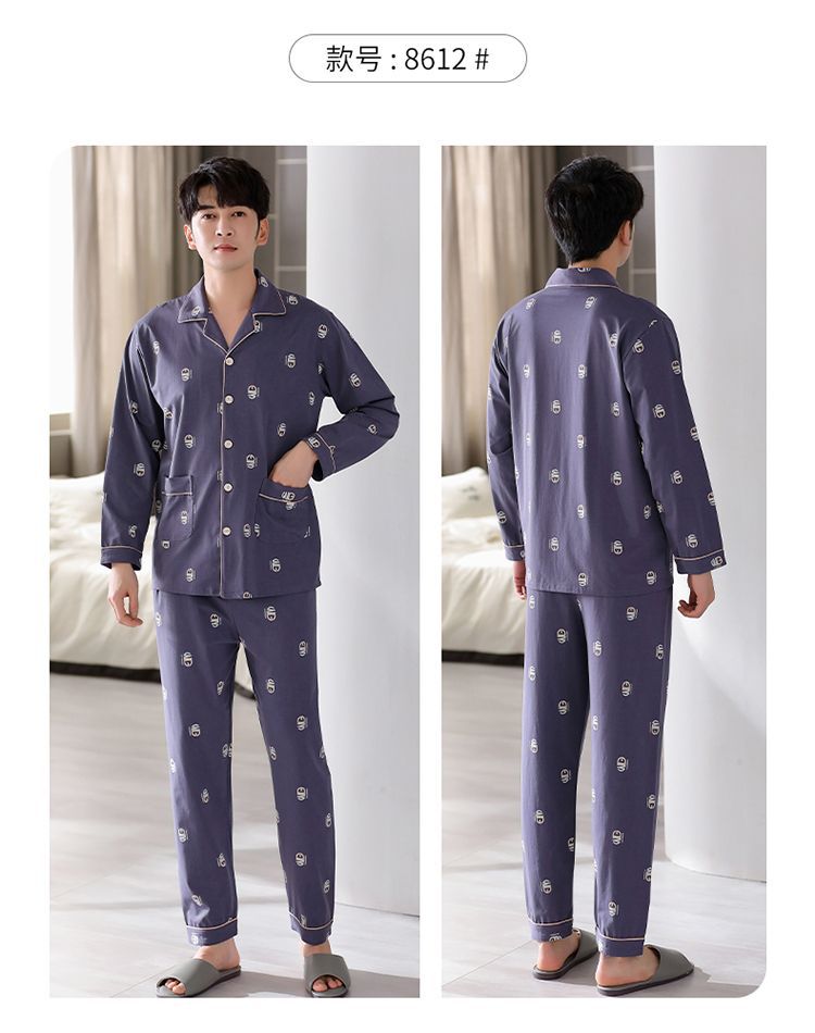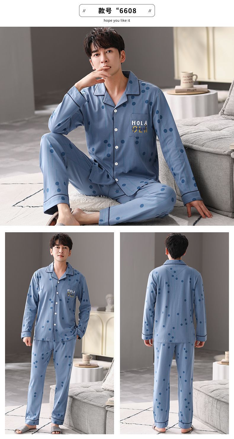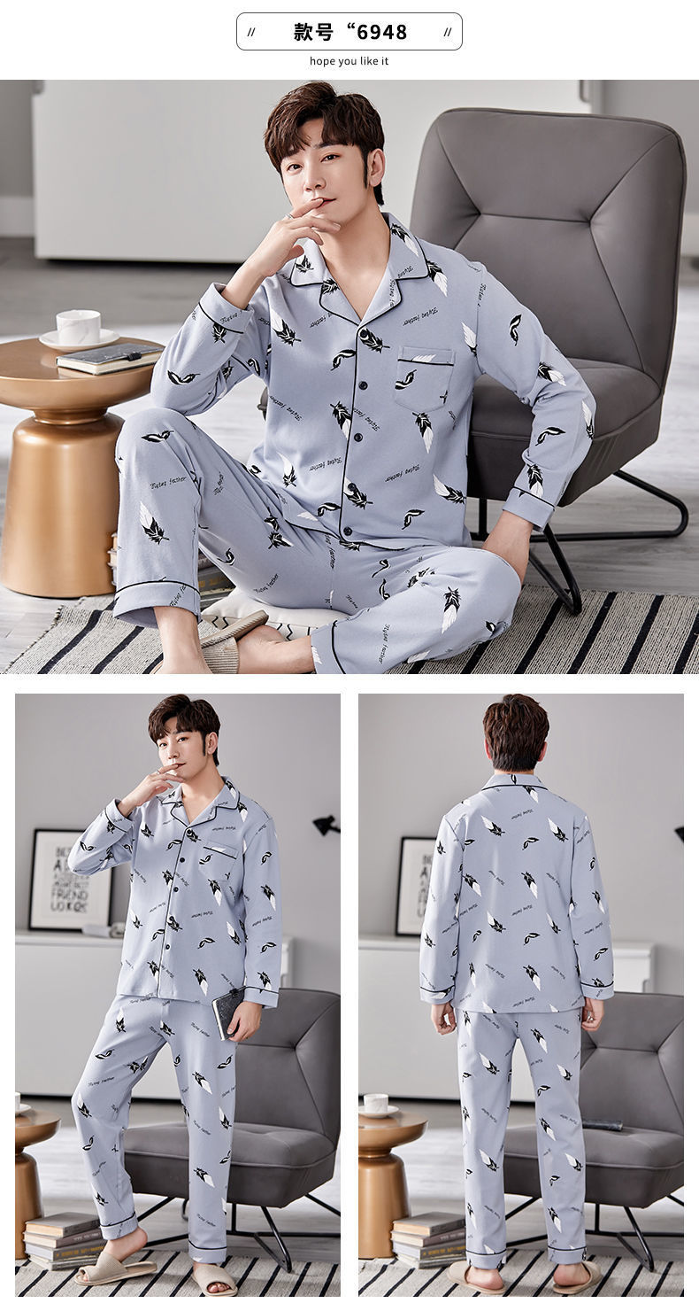 남자의 100% 면 잠옷 긴 소매 옷깃 카디건 면 세트 봄과 가을 플러스 사이즈 청소년 중년 및 노인 가정 의류스토어 가기