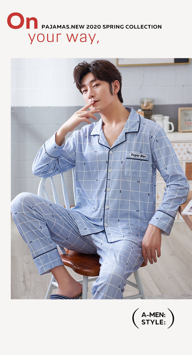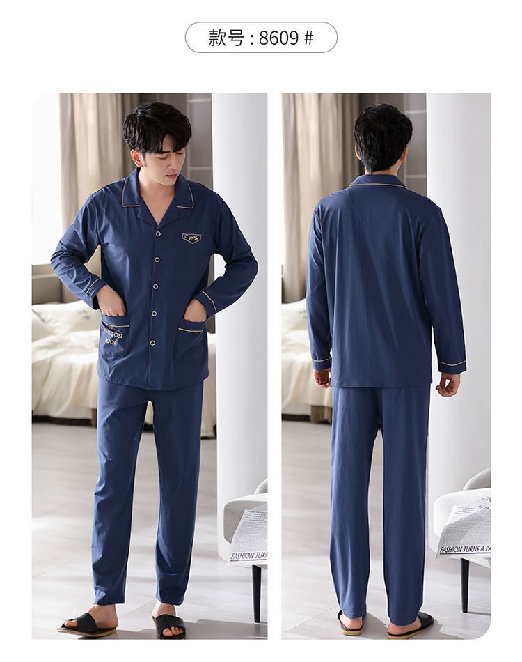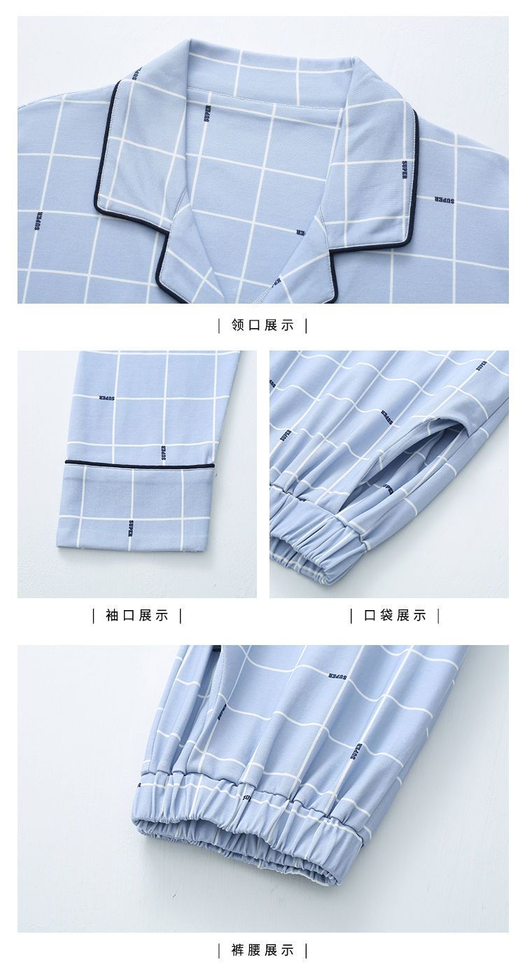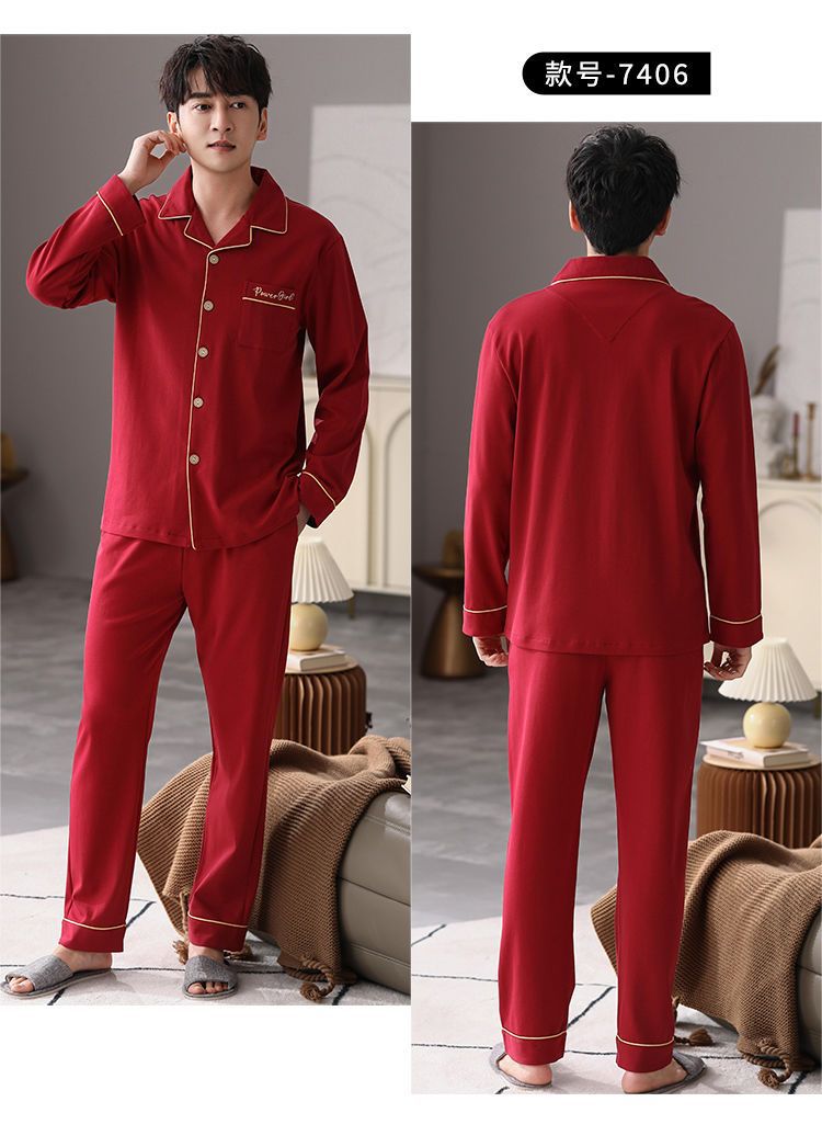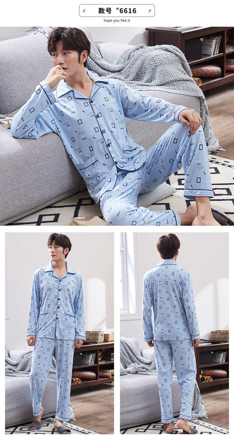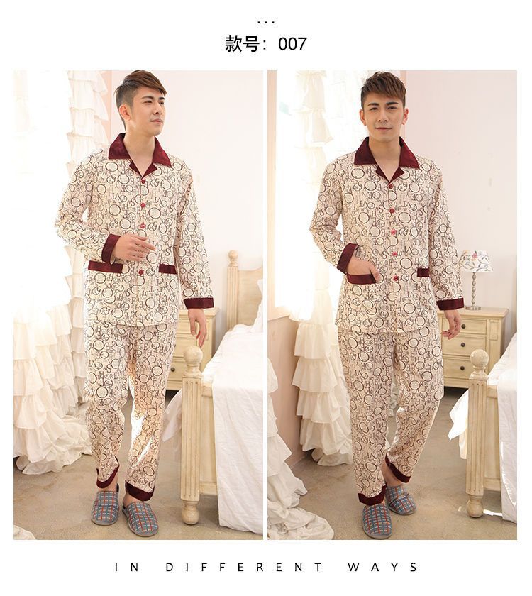 남자의 100% 면 잠옷 긴 소매 옷깃 카디건 면 세트 봄과 가을 플러스 사이즈 청소년 중년 및 노인 가정 의류스토어 가기