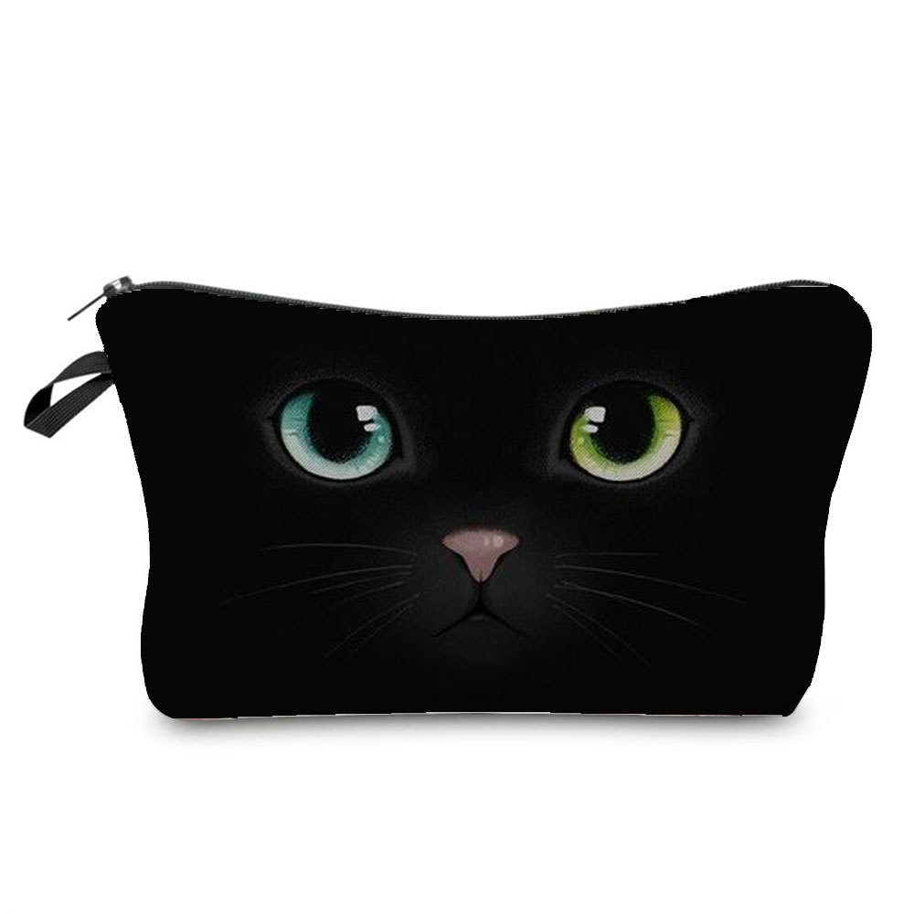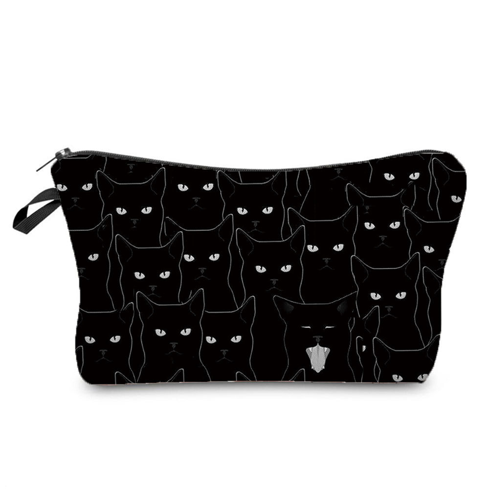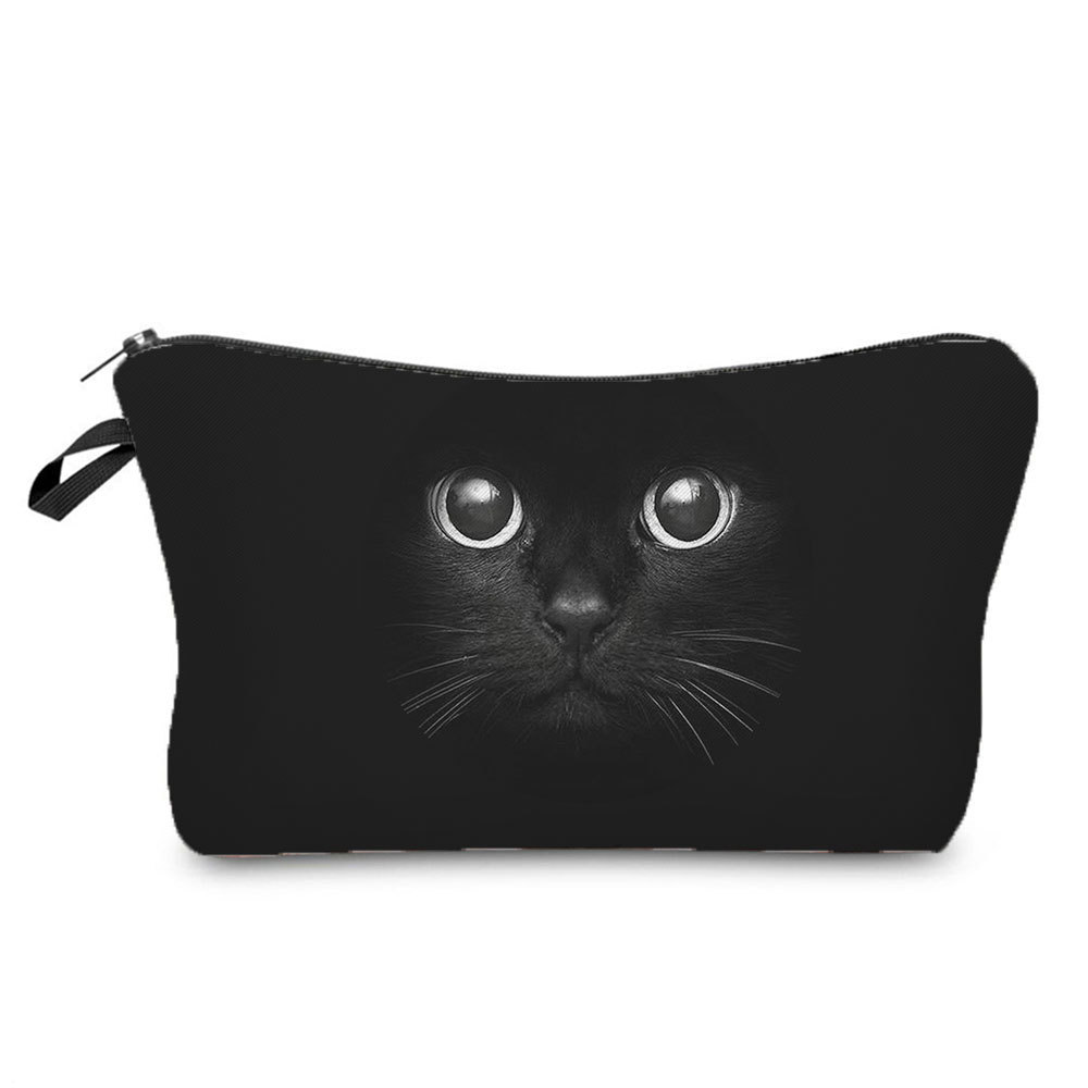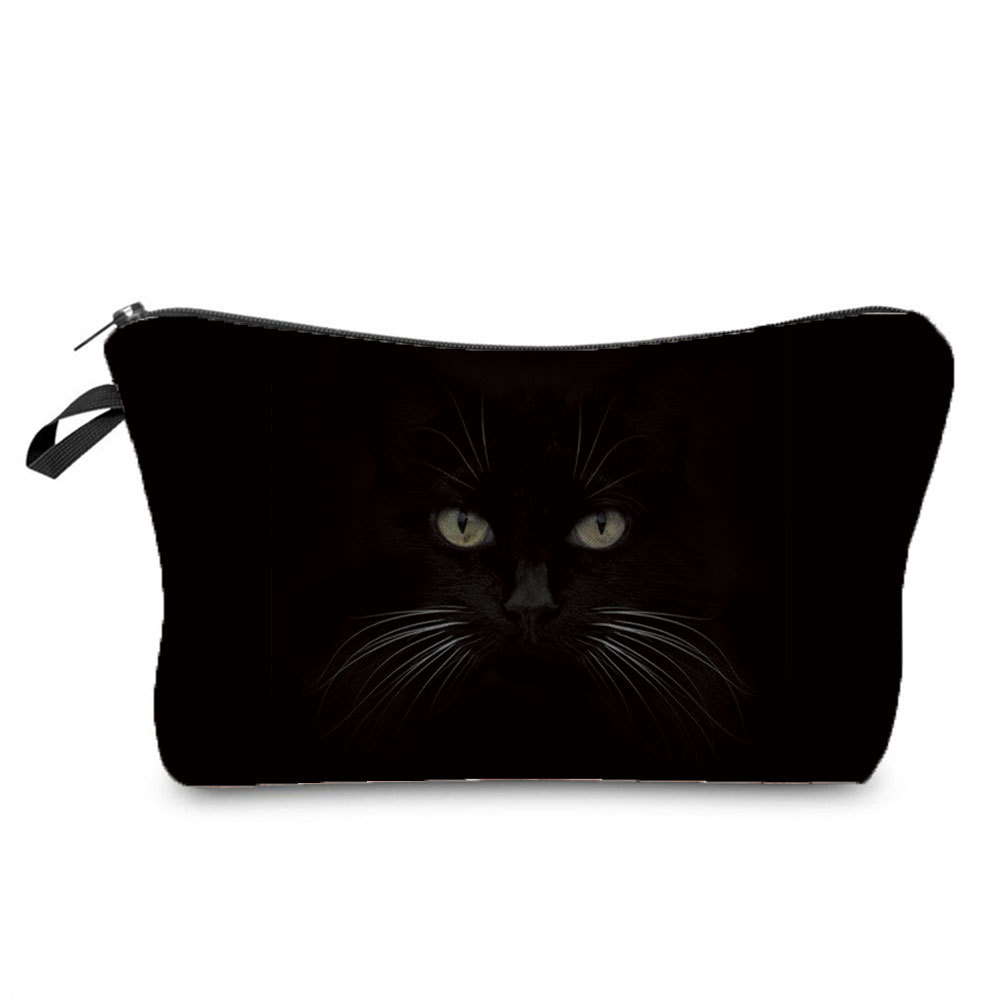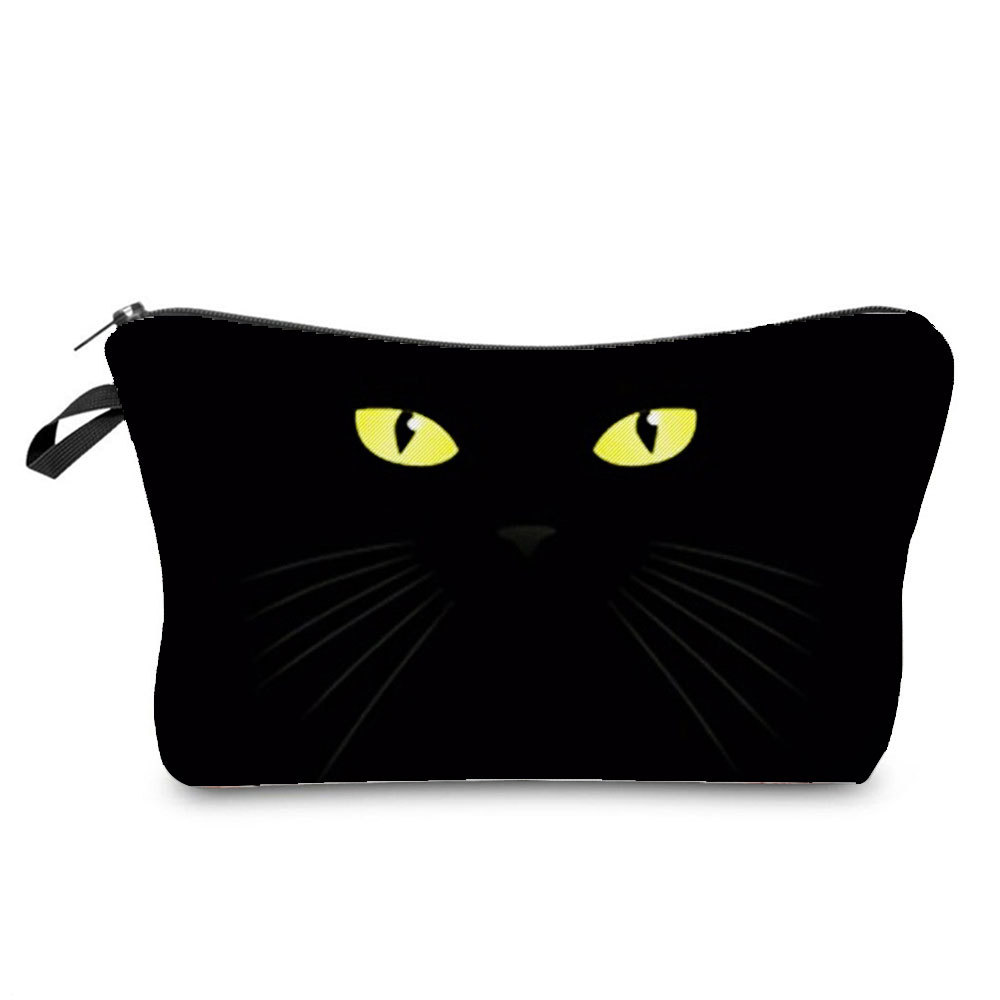 新款黑猫印花化妆包 简约男女洗漱包 旅行便携拉链收纳包可印logo