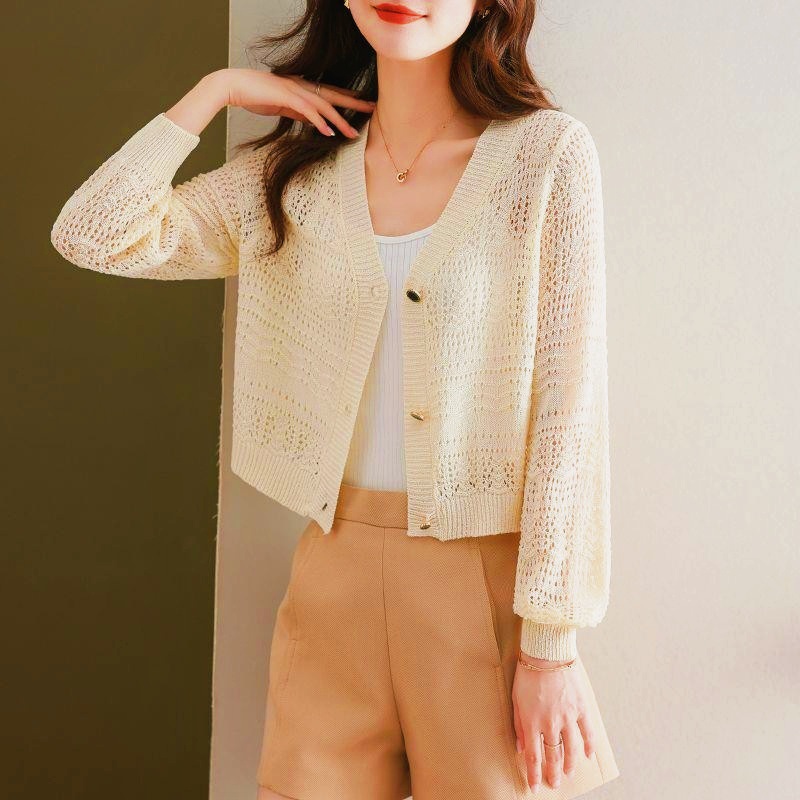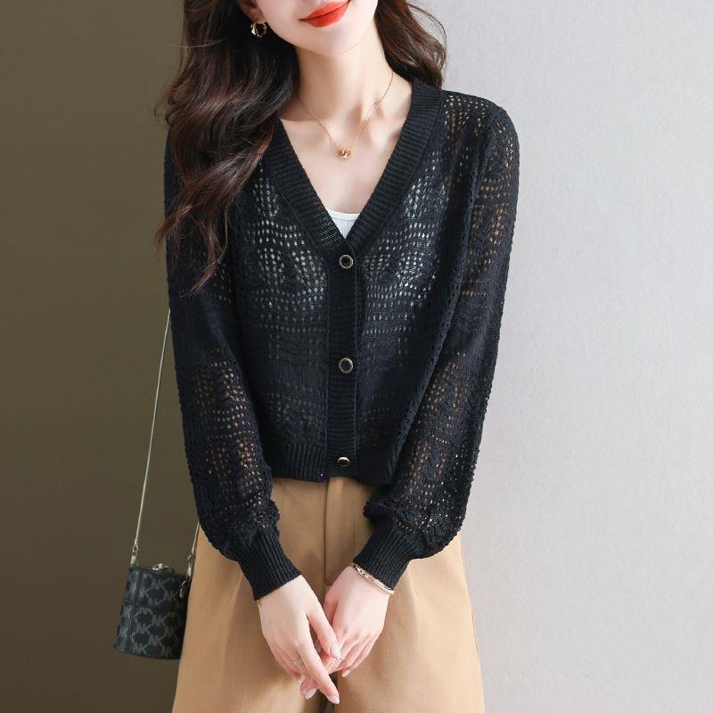 태양 보호 의류 여성의 겉옷 카디건 중공 패션 여름 새로운 겉옷 니트 스웨터 얇은 느슨한 슬리밍 탑