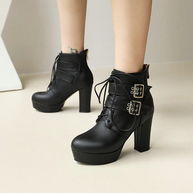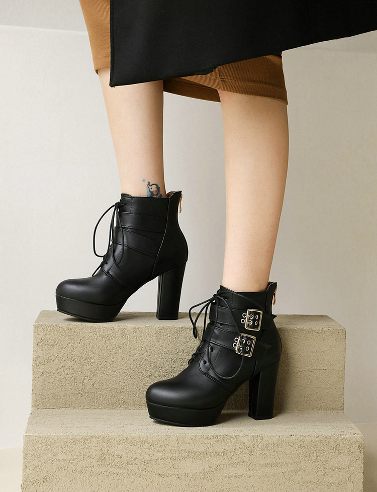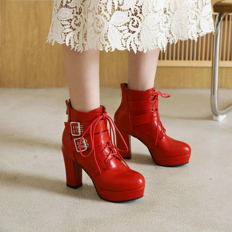 소원 짧은 부츠 가을과 겨울 하이힐 마틴 부츠 여성 부츠 두꺼운 굽 짧은 부츠 새로운 여성 신발 짧은 부츠 100 대외 무역