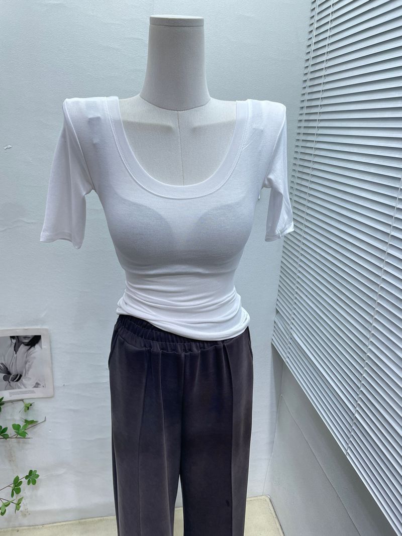 라지 라운드넥 탄성 반팔 티셔츠의 베이직 ~ 한국판 여성 기질 슬림 만능 티셔츠 하의 셔츠 탑 봄과 여름스토어 가기