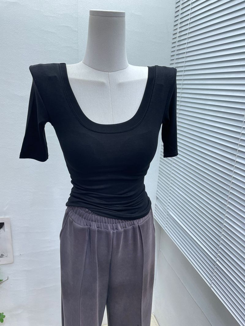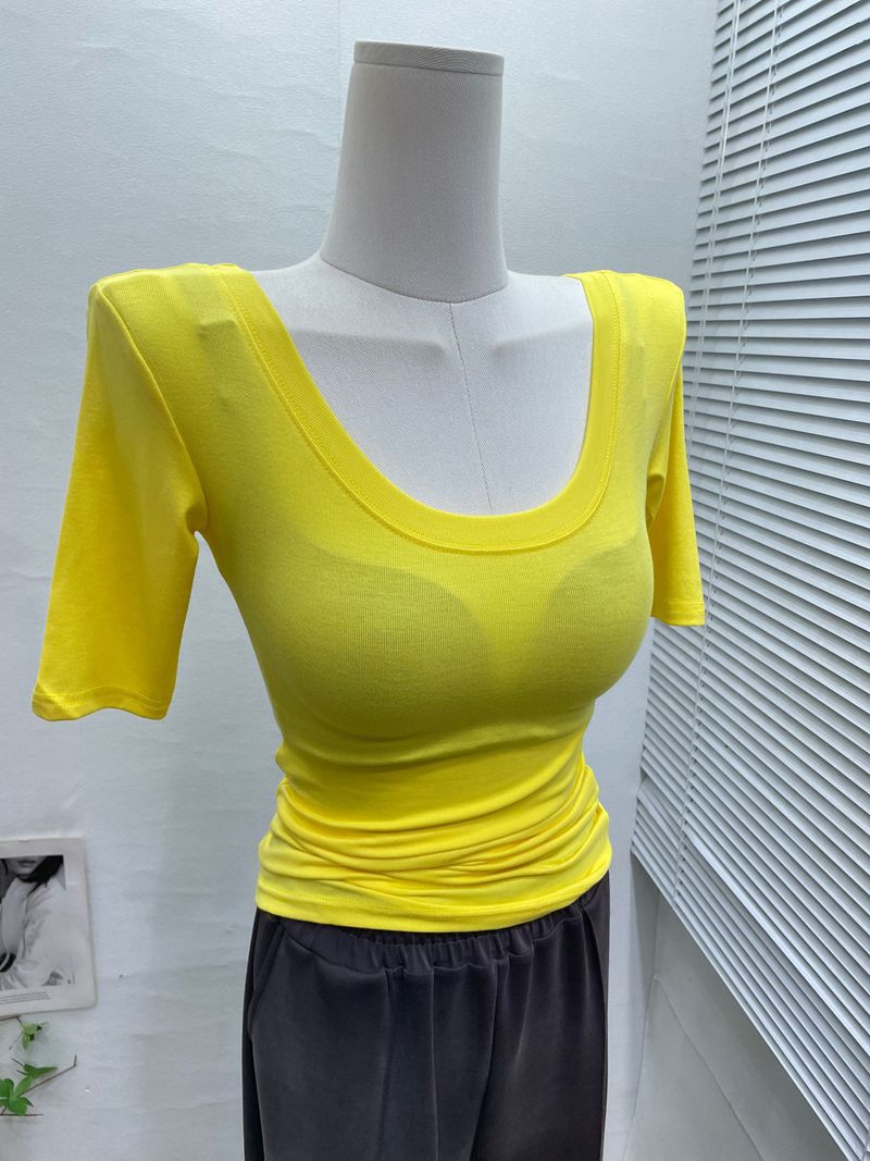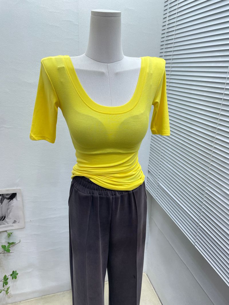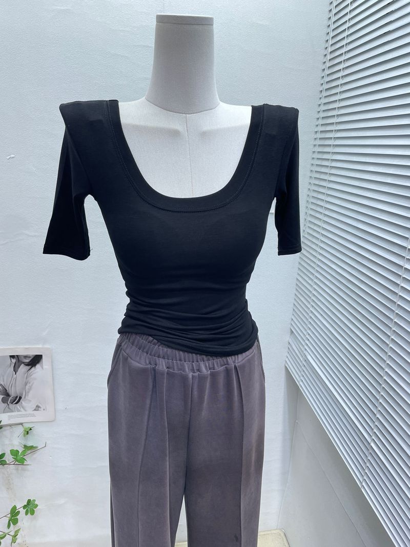 라지 라운드넥 탄성 반팔 티셔츠의 베이직 ~ 한국판 여성 기질 슬림 만능 티셔츠 하의 셔츠 탑 봄과 여름