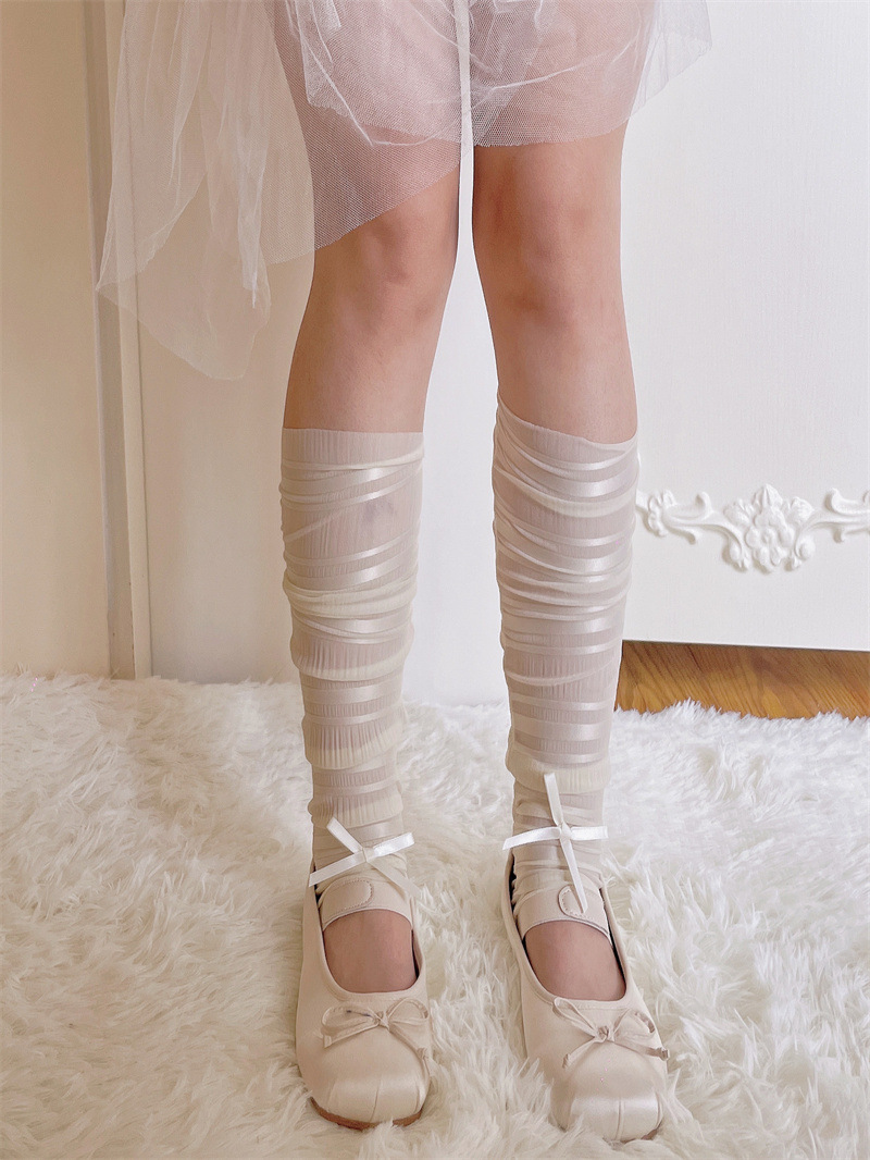 발레 스타일 보우 아이스 실크 발 스탬프 양말 여성용 여름 초박형 성형 중간 길이 자외선 차단제 로리타 스택 양말스토어 가기