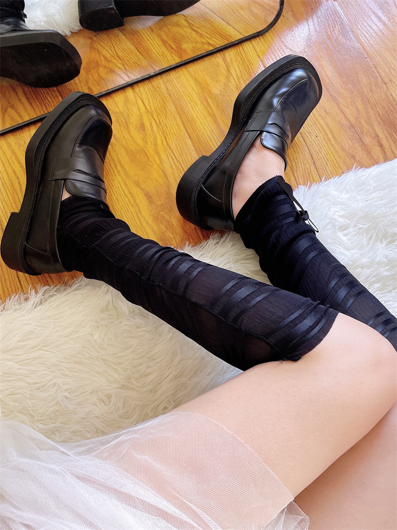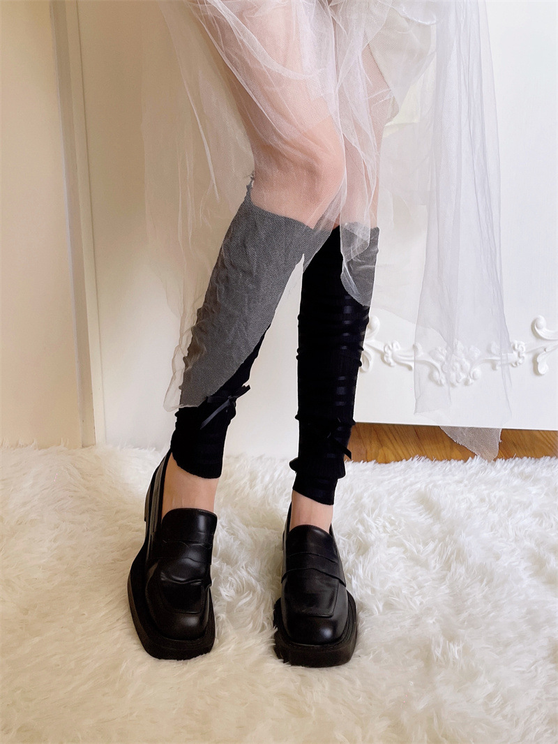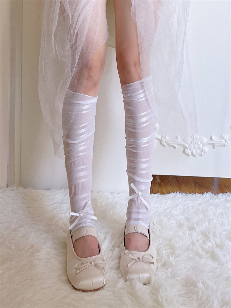 발레 스타일 보우 아이스 실크 발 스탬프 양말 여성용 여름 초박형 성형 중간 길이 자외선 차단제 로리타 스택 양말