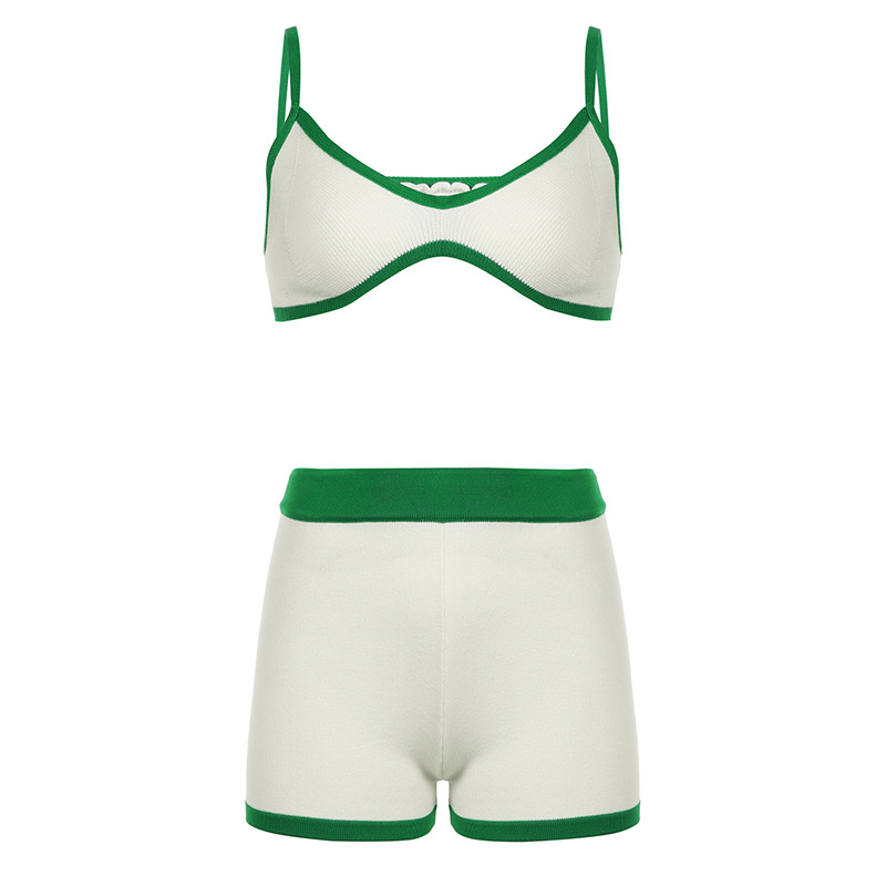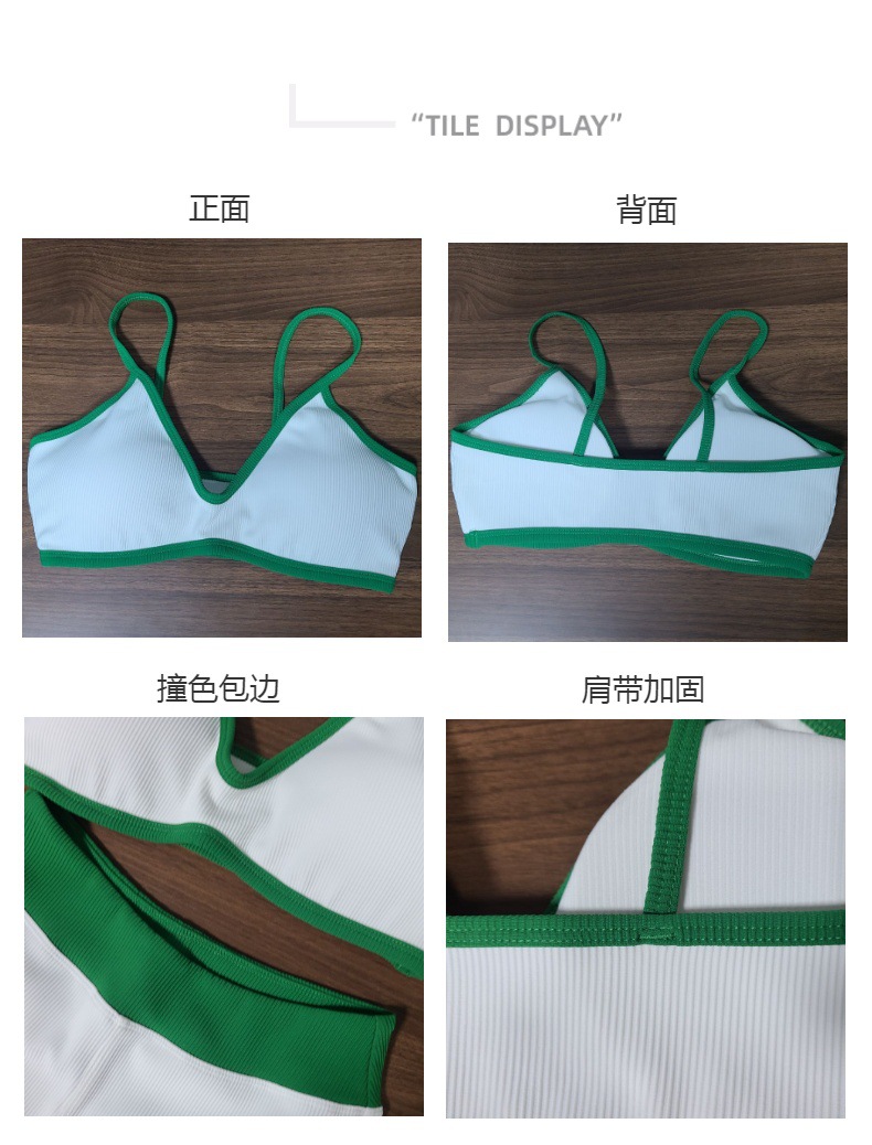 화이트와 그린 배색 얇은 끈 스포츠 탑 힙업 복부 조절 피트니스 반바지 요가 세트 여성용 타이트 고탄력스토어 가기