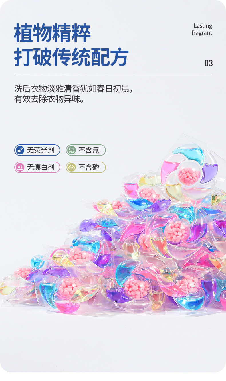 8g洗衣凝珠50颗盒装家庭装浓缩持久留香洗衣散珠批发厂家