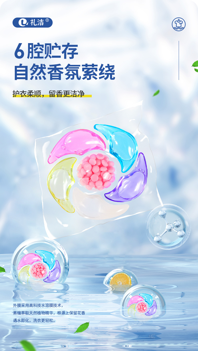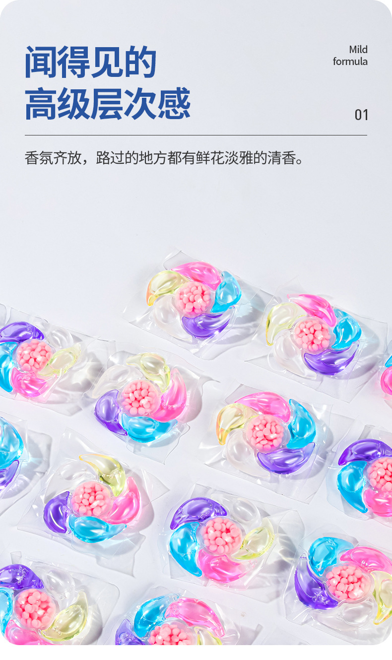 6 캐비티 세탁 비즈 루즈 비즈 고농도 오염 제거 비즈 부드러운 의류 향기 비즈 공장 도매 항균 농축