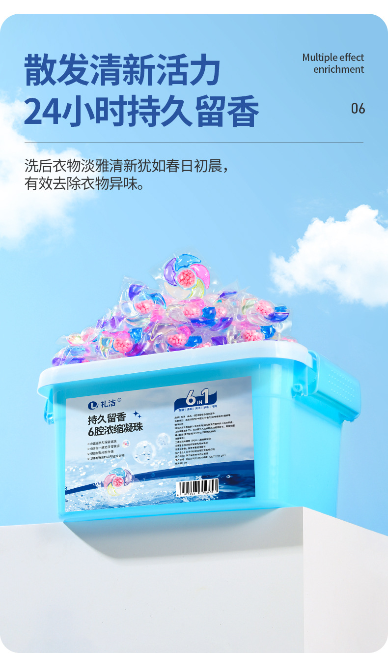 6 캐비티 세탁 비즈 루즈 비즈 고농도 오염 제거 비즈 부드러운 의류 향기 비즈 공장 도매 항균 농축스토어 가기