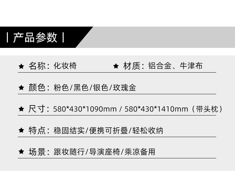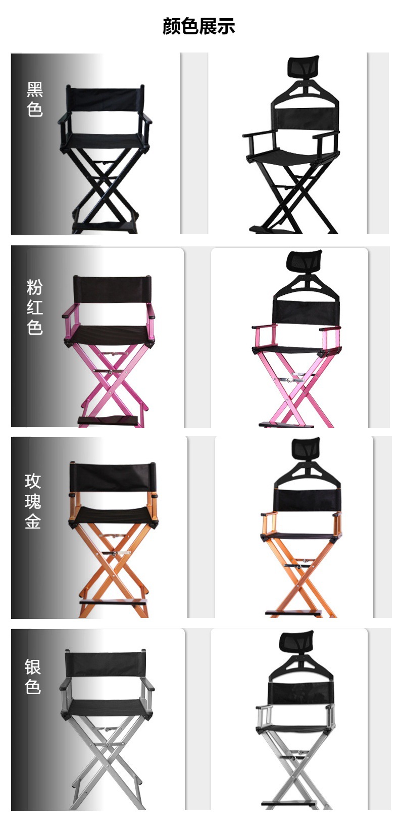 머리 받침대가 있는 전문 메이크업 의자, 인터넷 연예인 의자, 야외 접이식 감독 의자, 알루미늄 합금 사진 스튜디오 메이크업 아티스트 의자