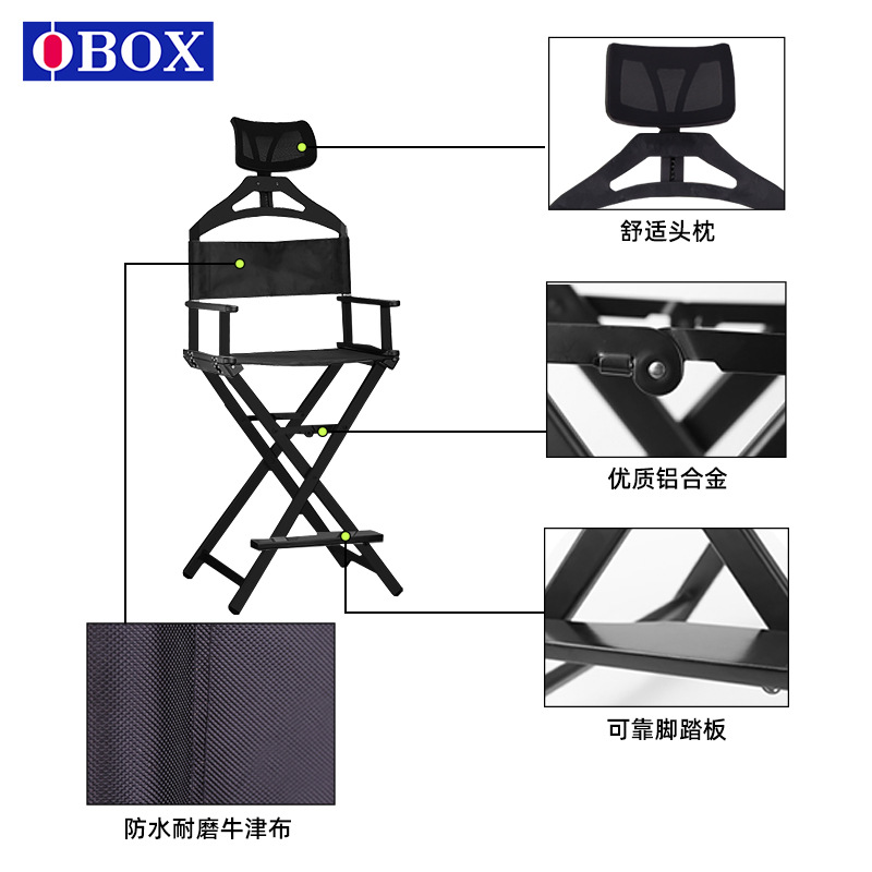 머리 받침대가 있는 전문 메이크업 의자, 인터넷 연예인 의자, 야외 접이식 감독 의자, 알루미늄 합금 사진 스튜디오 메이크업 아티스트 의자스토어 가기