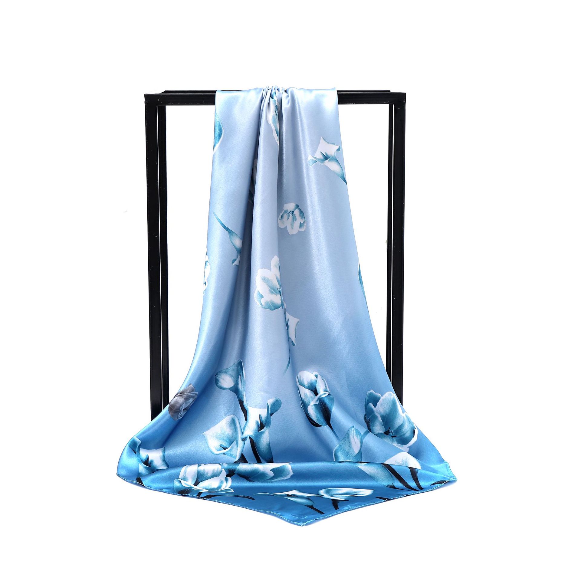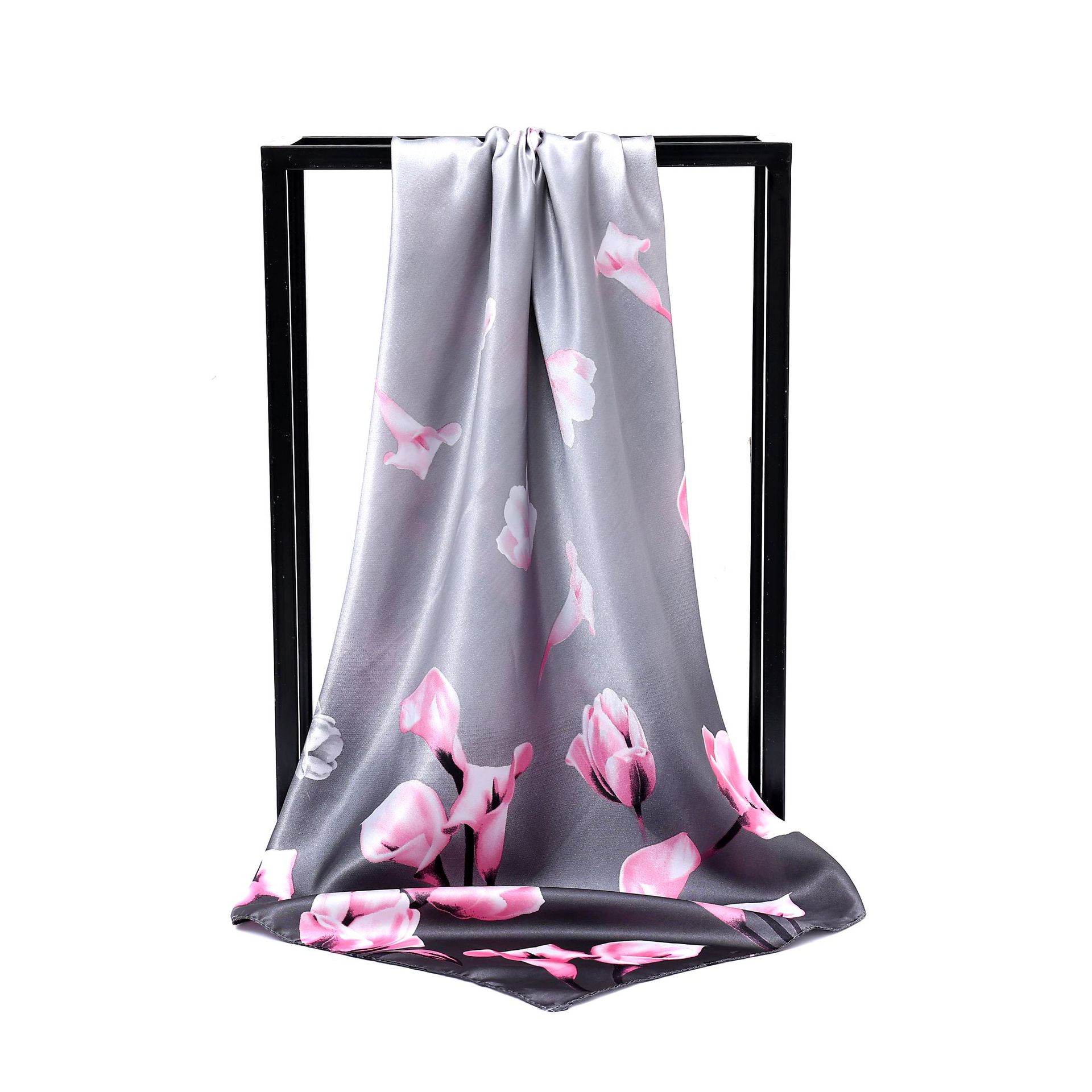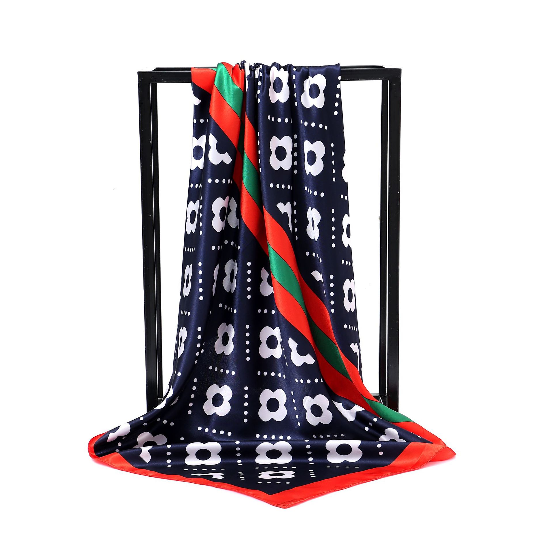 유럽과 미국 봄과 여름 신모조 새틴 90 새틴 인쇄 작은 꽃 넉넉한 스카프 도매 패션 여성 스카프스토어 가기