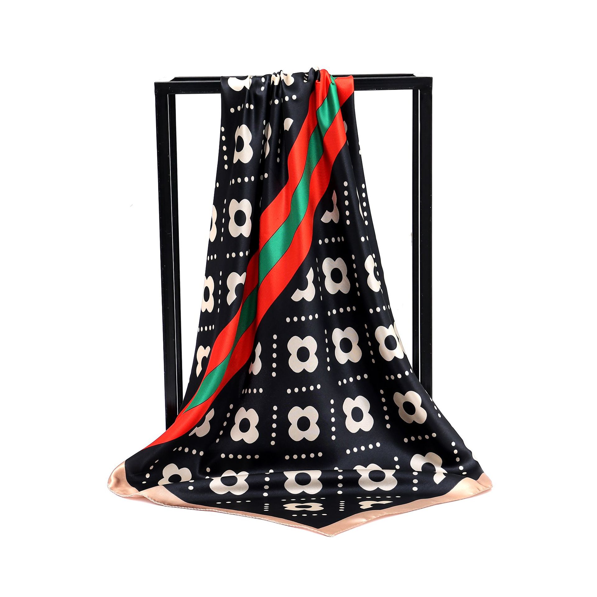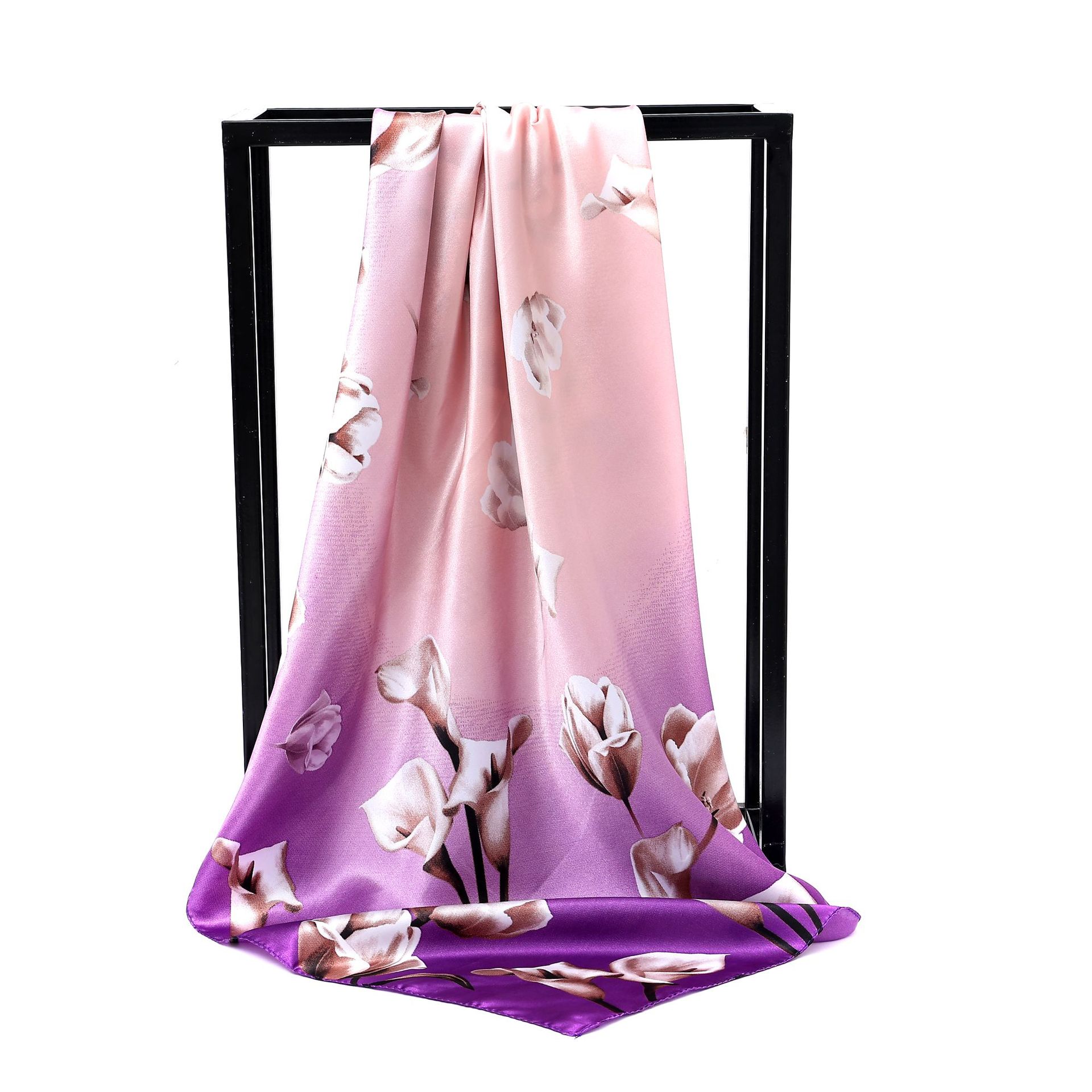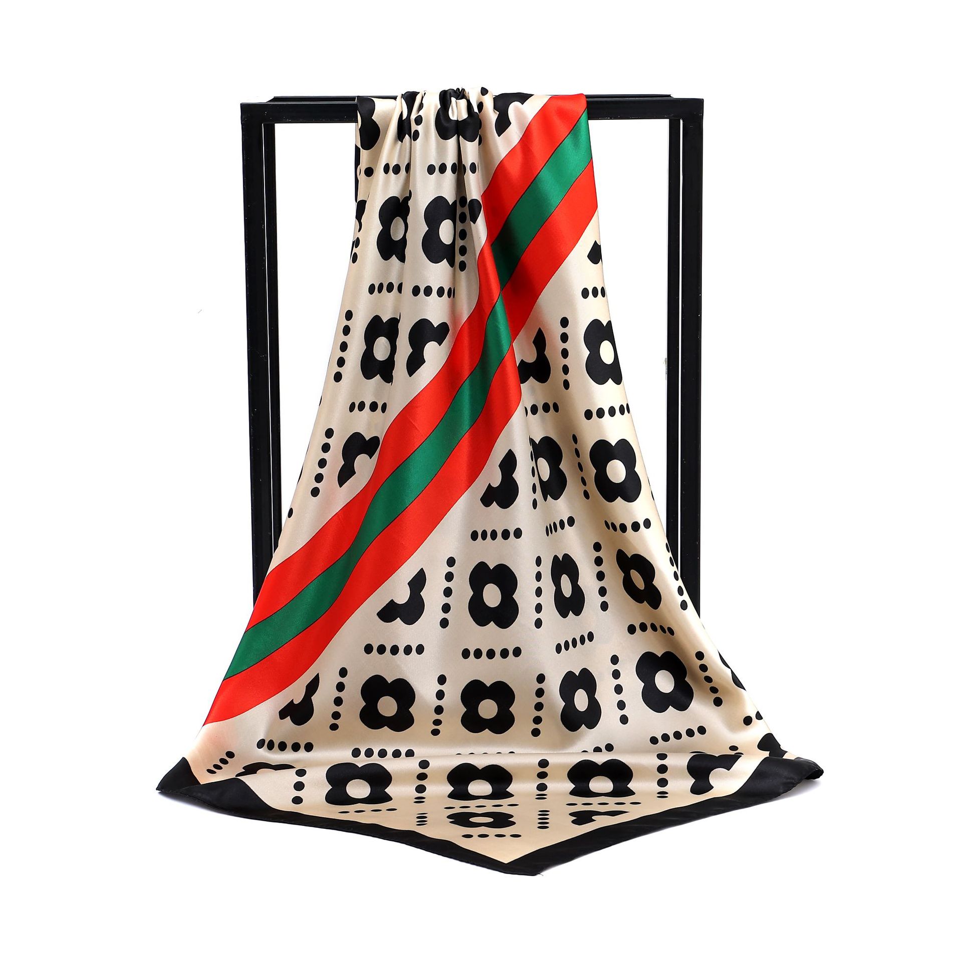 유럽과 미국 봄과 여름 신모조 새틴 90 새틴 인쇄 작은 꽃 넉넉한 스카프 도매 패션 여성 스카프스토어 가기